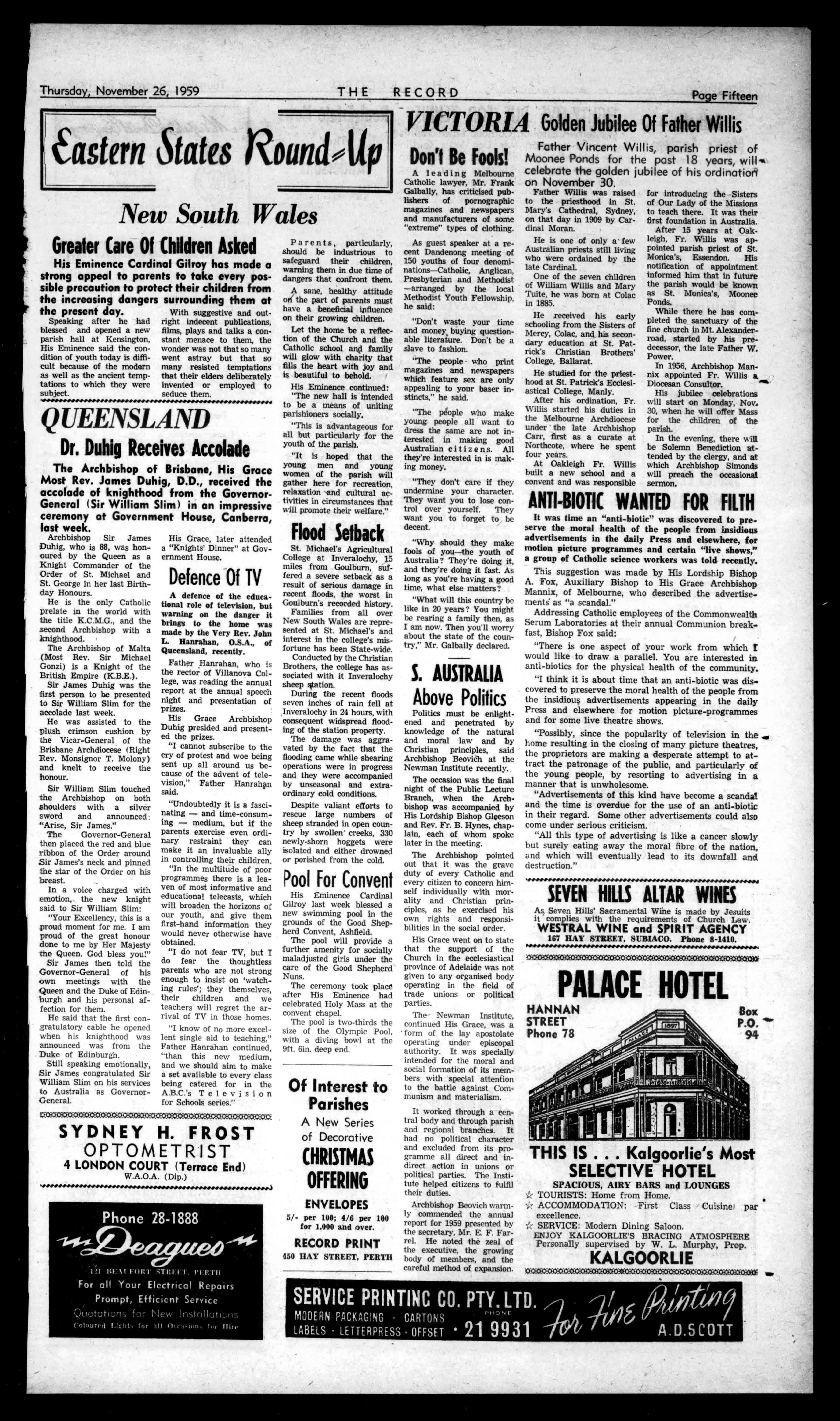 In1956,ArchbishopMannixappointedFr.Willisa AIL DiocesanConsultor. Hisjubileecelebrations willstartonMonday,Nov. 30,whenhewillofferMass forthechildrenofthe parish.