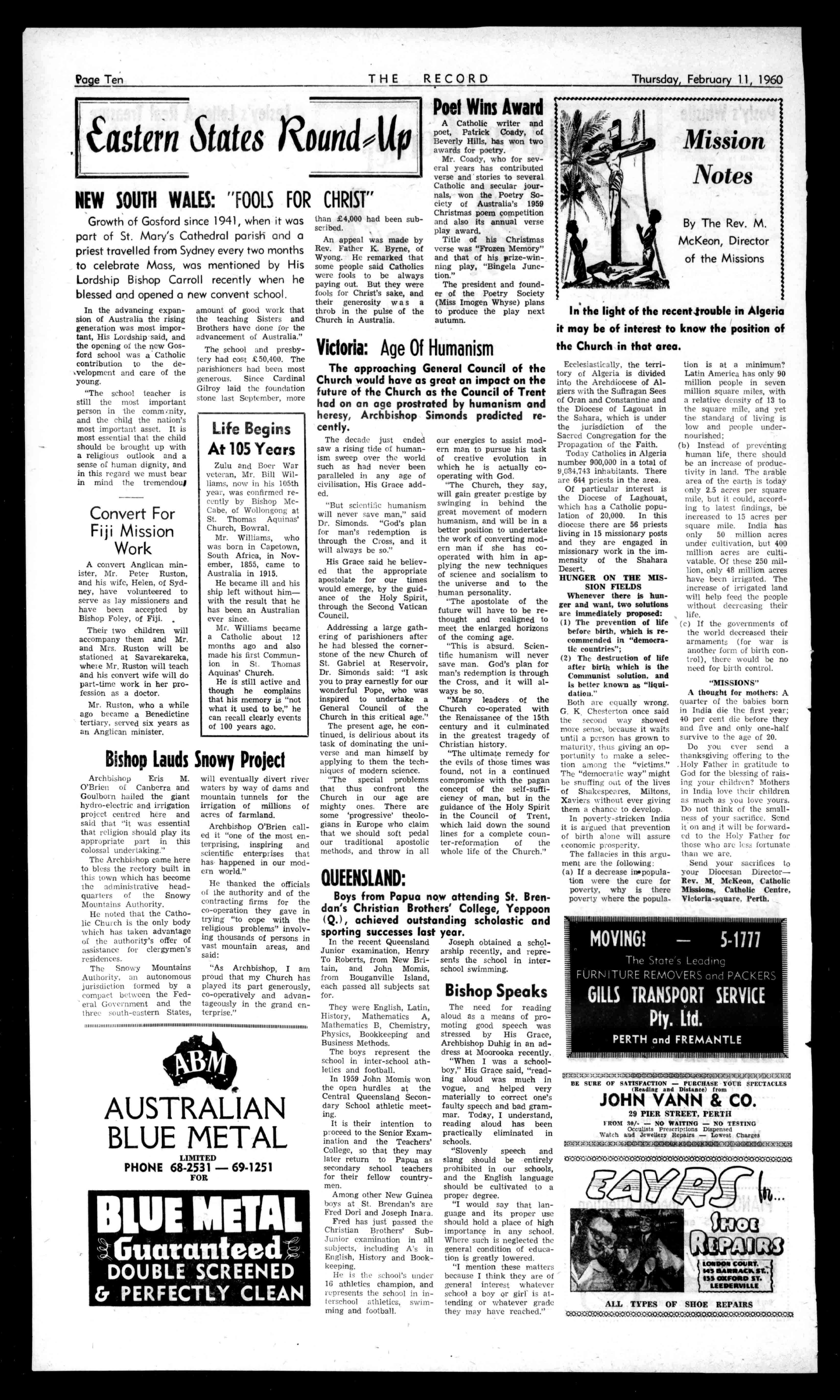 31, 4 ANDERSONS ESTATEAGENCY 42ST.GEORGE'STER. 21-4475. BoardWanted FULLBOARDrequiredby highlyrecommendedmale Asianstudent;singleroom, nearUni.Catholichome preferred.Reply71KimberleySt.,Leederville. Accommodation -AVAILABLENICEcomfortablehomefor twogirlsinMt.Hawthorn; closetotransport;full board.Box7500thisoffice. Thanksgiving THANKSGIVINGforfavoursthroughMotherMary oftheHeartofJesus. Professional PIANOS NewandReconditioned. TuningandReeling Phone:Specialists.21-45M. STANSPIELSPIANOS 1255HaySR.WestPerth 441411411.14.01.1.14,044141.1.1004.04 RON'SHAWTHORN MEATSTORE "PleasedtoMeatYouwith MeattoPleaseYou." SCARBOROUGHBEACH RD..MT.HAWTHORN Opp.CommonwealthBank PHONE::24-3477 tArapiaaggeiair,4,4, PractitionersinAll BranchesofDentistry 790-794HAYSTREET, PERTH ?beefs:21-1444,214237 Itserreacy:71-2001,114-111111. Principals:JceepbL.Rogan; AlfredL.RefineDip.SS. Coerced..CerPerkingCanSe*ewe,*byPlebe THERECORD,450HAYSTREET. BoxR1279,G.P.O.,PERTH.Telephone21-2837. SubscriptionRates: £1104peryear 152halfyear AllcorrespondenceshouldbeaddressedtoTheManager. Engagements,Births,Marriages,Deaths,InMemoriam, Accommodation,Wanted,ForSale,andallclassesof ClassifiedAdvertisements:4/-forthefirst10words, then1/6foreveryfivewordsorpartthereof, DisplayAdvertising:15/-persinglecolumninch,orby ContractRates.ApplyAdvertisingDepartment. PppppfpppppppPPPPOPP.PPdh11441 CONTACTB.A.BARNARDBldg.Co. ofPERTHandGERALDTON FreeQuotationsandAdvicegiveninyour BuildingProblems. WecanhelpfromtheDesigningtotheFinancing ofYourHome. BUILDERSOFBCONOIIICALHOMES