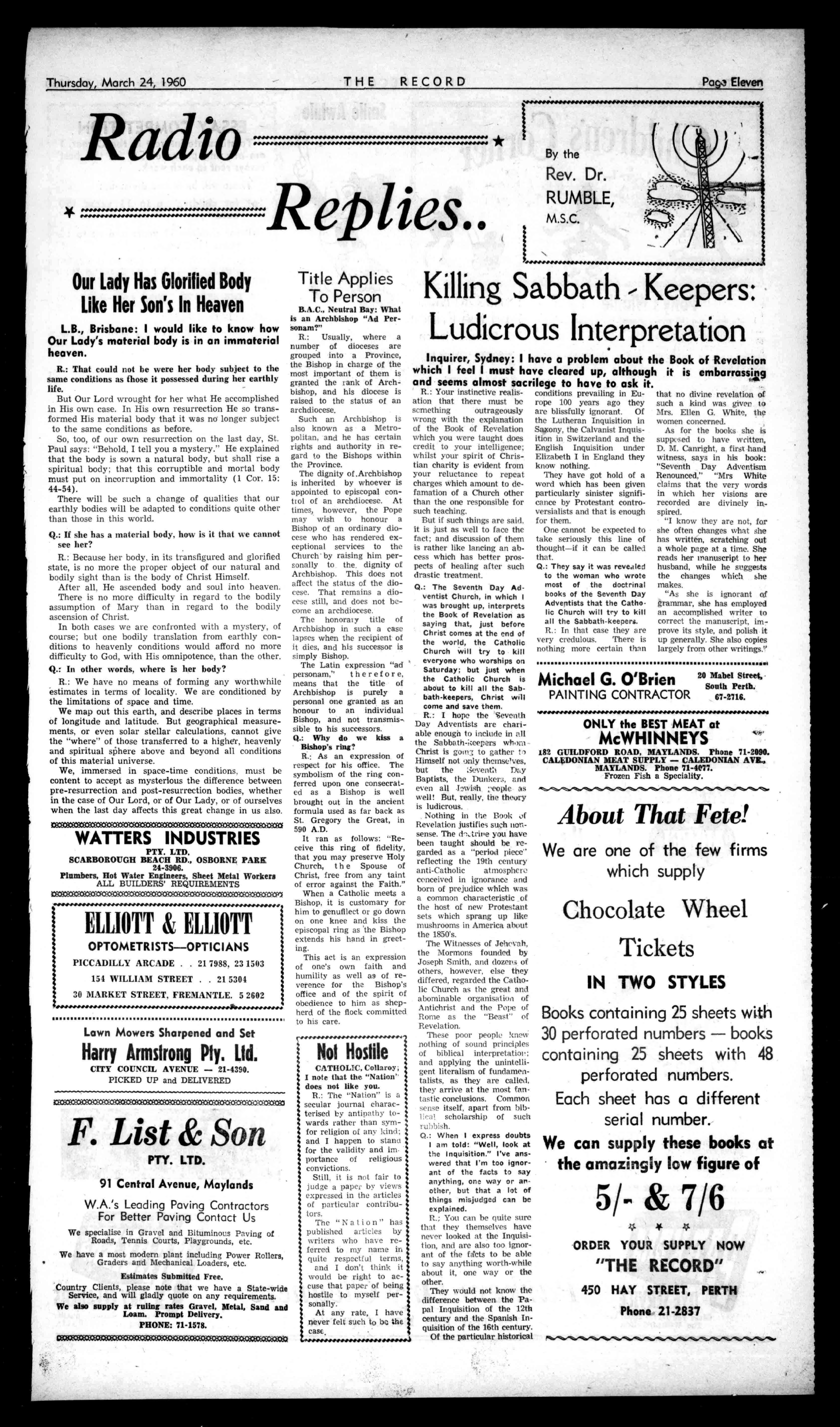 PractitionersinAll BranchesofDentistry 790-794HAYSTREET, PERTH Thanes:21-7484,21-7537 Emergency:71-2601,86-1639, Principals:JosephL.Rogers; AlfredL.Roger.,Dip.D.S. C lestCarParkingCaaBs Trangedby THERECORD,450HAYSTREET. BoxR1279,G.P.O.,PERTH.Telephone21-2837. SubscriptionRates £1132peryear 167halfyear AllcorrespondenceshouldbeaddressedtoTheManager. Engagements,Births,Marriages,Deaths,InMemoriam, Accommodation,Wanted,ForSale,andallclassesof ClassifiedAdvertisements:4/-forthefirst10words, then1/6foreveryfivewordsorpartthereof. DisplayAdvertising:15/-persinglecolumninch,orby ContractRates.ApplyAdvertisingDepartment. CLASSIFIEDADVERTISEMENTS