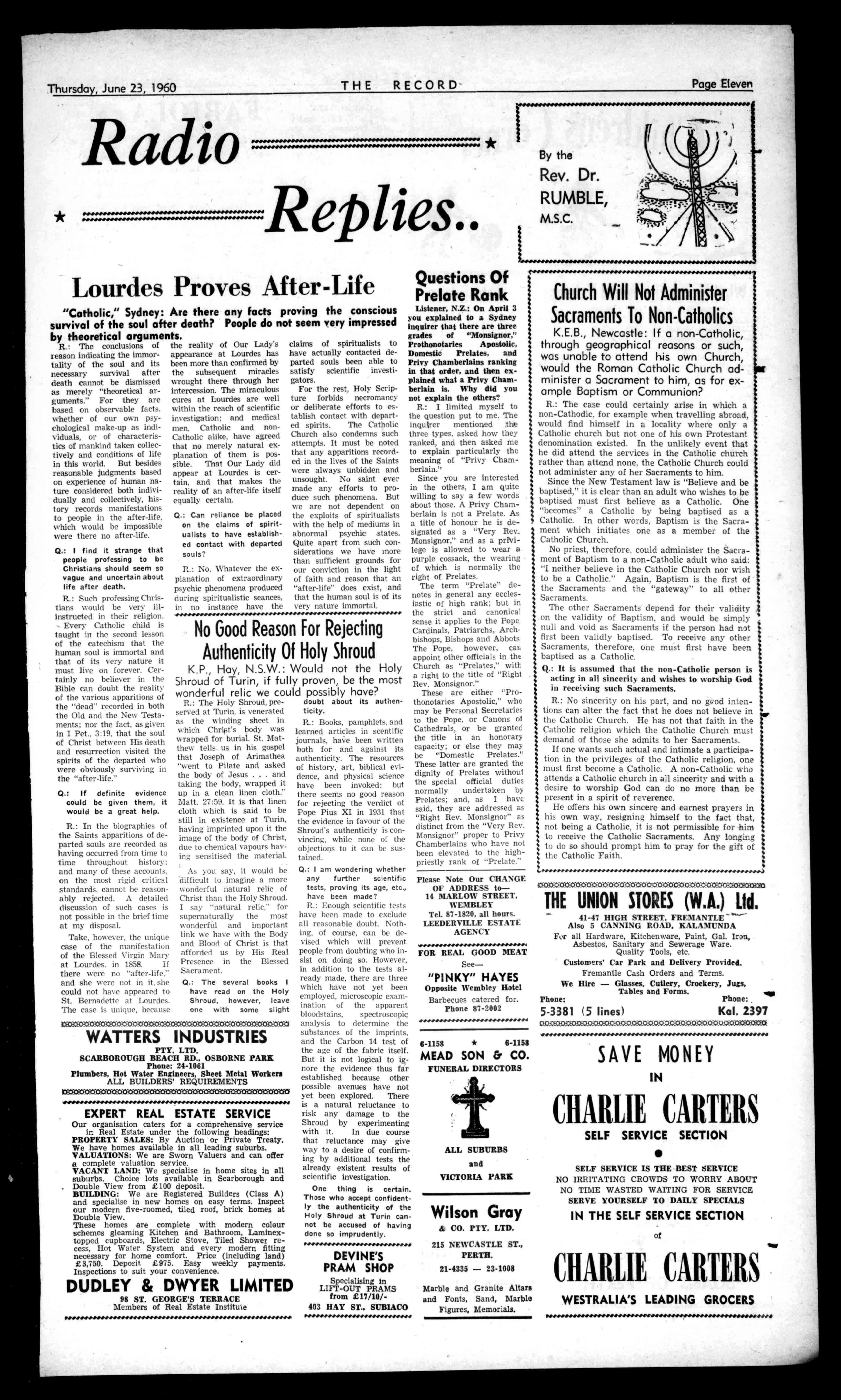 PractitionersinAll BranchesofDentistry 790-794HAYSTREET. PERTH Phone.:51-7484,11-7807 Emergency:71-2601,86-1639, Principals:JosephL.Roger,; AllredL.Rogers,Dip.D.B. ConvenientCarParkingCan iw YrangedbyPhone THERECORD,450HAYSTREET. BoxR1279,G.P.O.,PERTH.Telephone21-2837. SubscriptionRates 1132peryear 167halfyear AllcorrespondenceshouldbeaddressMtoTheManager. Engagements,Births,Marriages,Deaths,InMemoriam, Accommodation,Wanted,For'Sale,andallclassesof ClassifiedAdvertisements:4/-forthefirst10words, then1/6foreveryfivewordsorpartthereof. DisplayAdvertising:15/-persinglecolumninch,orby ContractRates.ApplyAdvertisingDepartment. CLASSIFIEDADVERTISEMENTS