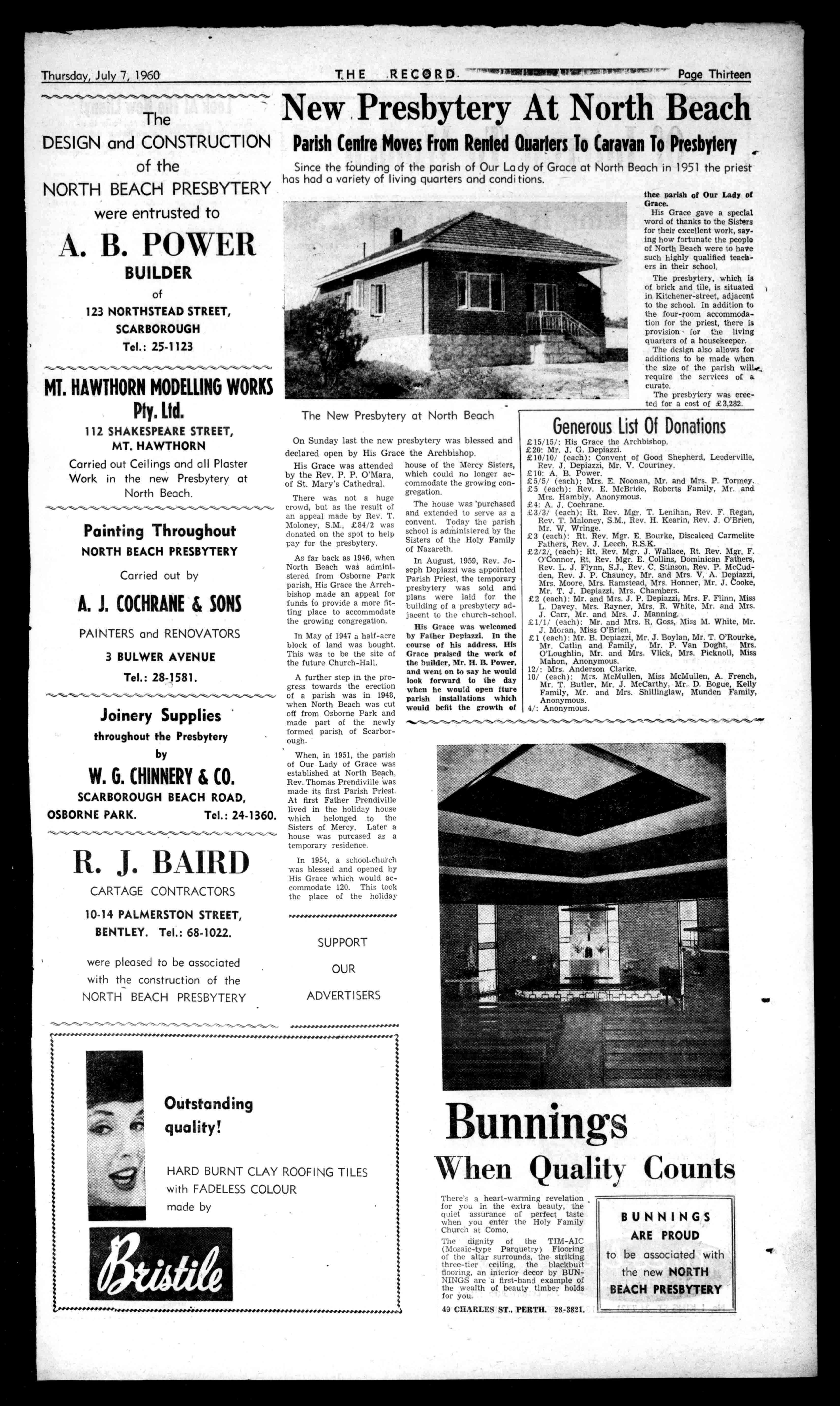 £150Deposit 4BrandNewcavityandtile Homestochoose,ideally situatedinattractivenew suburb,closetoallamenities,shops,bus,school,etc. Repaymentsonly£51101p.w.for'1years;£41101thereafter. PRICE:£3,600. THEGENERAL AGENCYCO. 29PADBURYBLDGS., FORRESTPLACE,PERTH (OppositeGPO.) Phone23-3021NOW! M+ 441". HASSELLS SAVEYOUL'sonallmakesof Stoves,Baths.Sinks,Cupboards. Tiles,Wonderheats.Errsides,all Building,Plumbingsupplies.We Importfromallpartsoftheworld andselldirecttoyou.Compare ourPrices-savingswillamaze you.Save£12ona1stQuality Bath:newWoodStoves, L16: StainlessWashTroughs from L10/10/,SteelCabinet..L6/15/ allColourTiles,in/yd.fOft.S.S. SinksandCupboards,£19,all othersibesfrom301n.to70.: tallBathHeaters,L5/51:Wheel Barrons,59/6.Stovesrelinedor tradedin. HASSELLS 553to561WELLINGTONST. 2-3917, osesesesereNewspeessevegege..............e PaperRaises£30,000forKimberley "TheCatholicWeekly's-appealfordonations fromitsreaderstosavetheKimblerleyMissionfor aboriginesinNorth-WestAustraliaclosedwiththe remarkabletotalof£28,000.Withdonationsstill cominginattherateofmorethan£1,000aweek, itisexpectedthatthefinalfigurewillbeinexcess of£30,000.