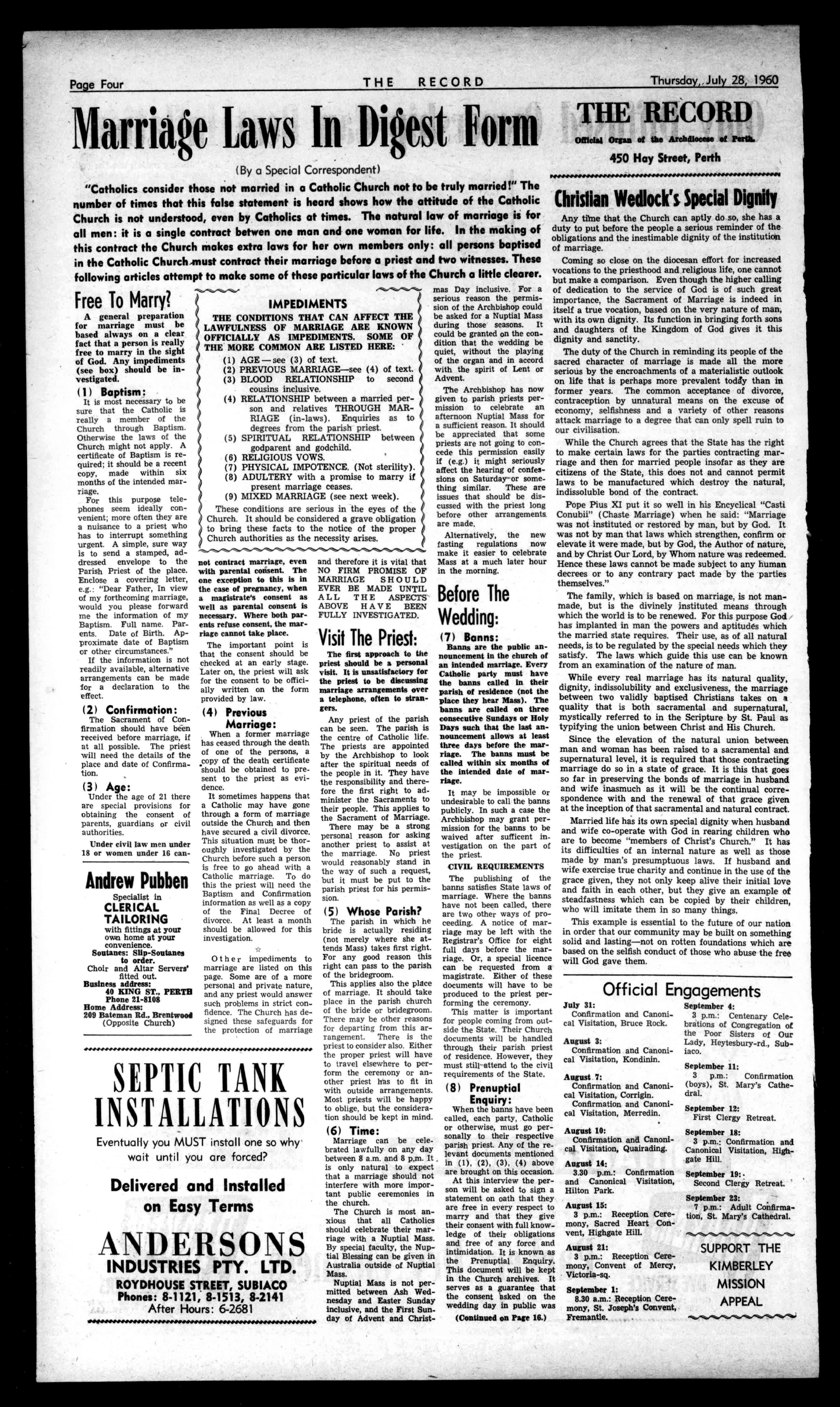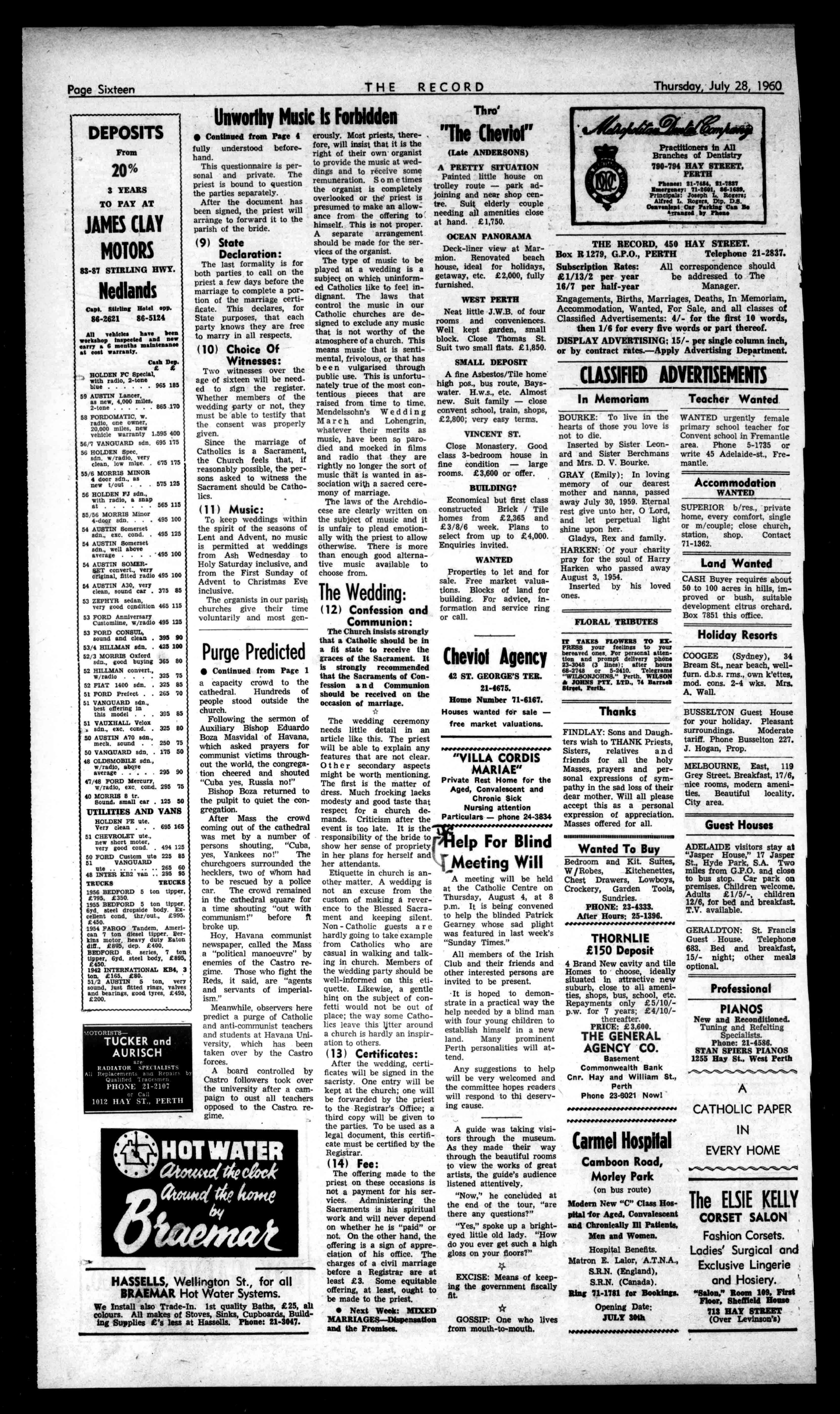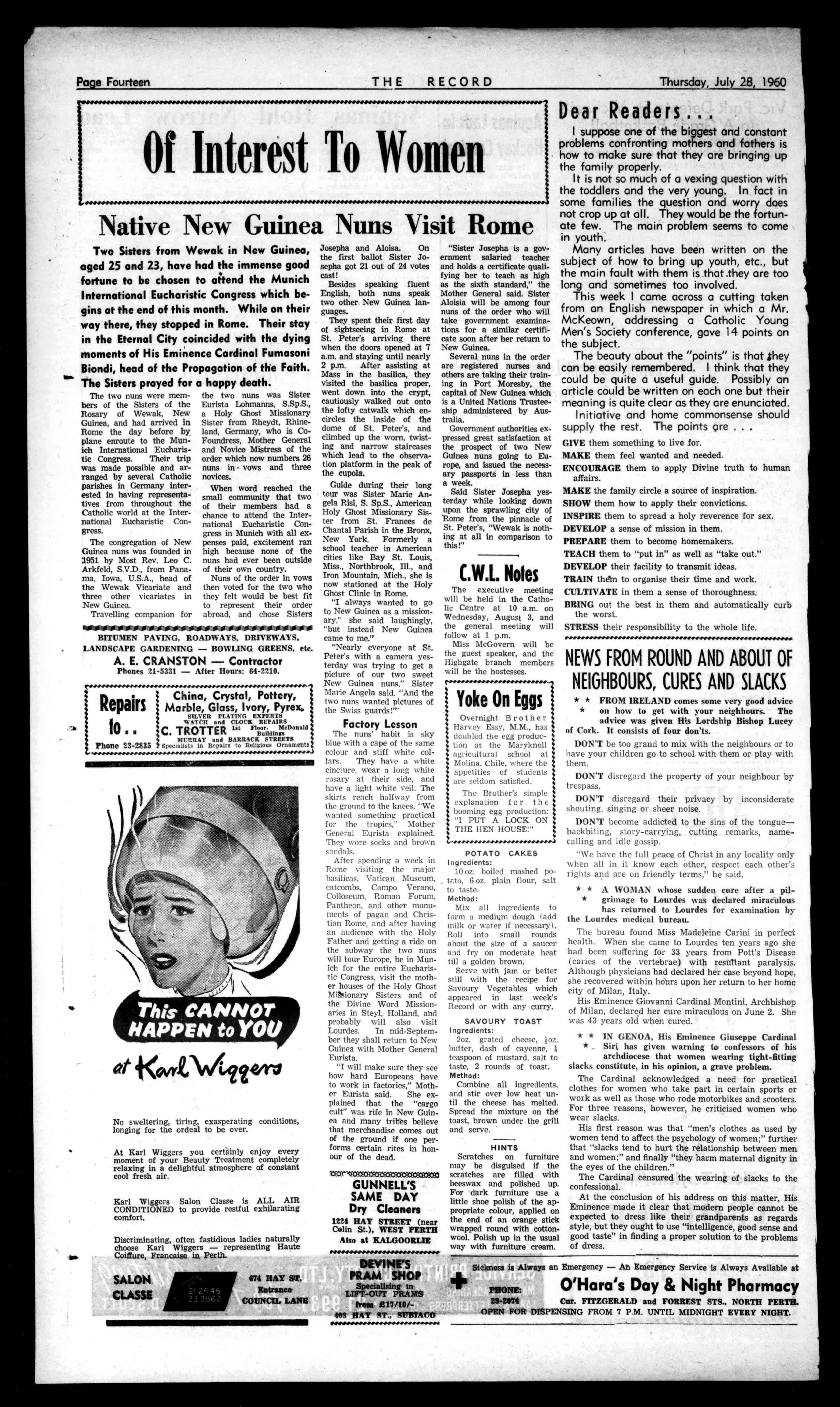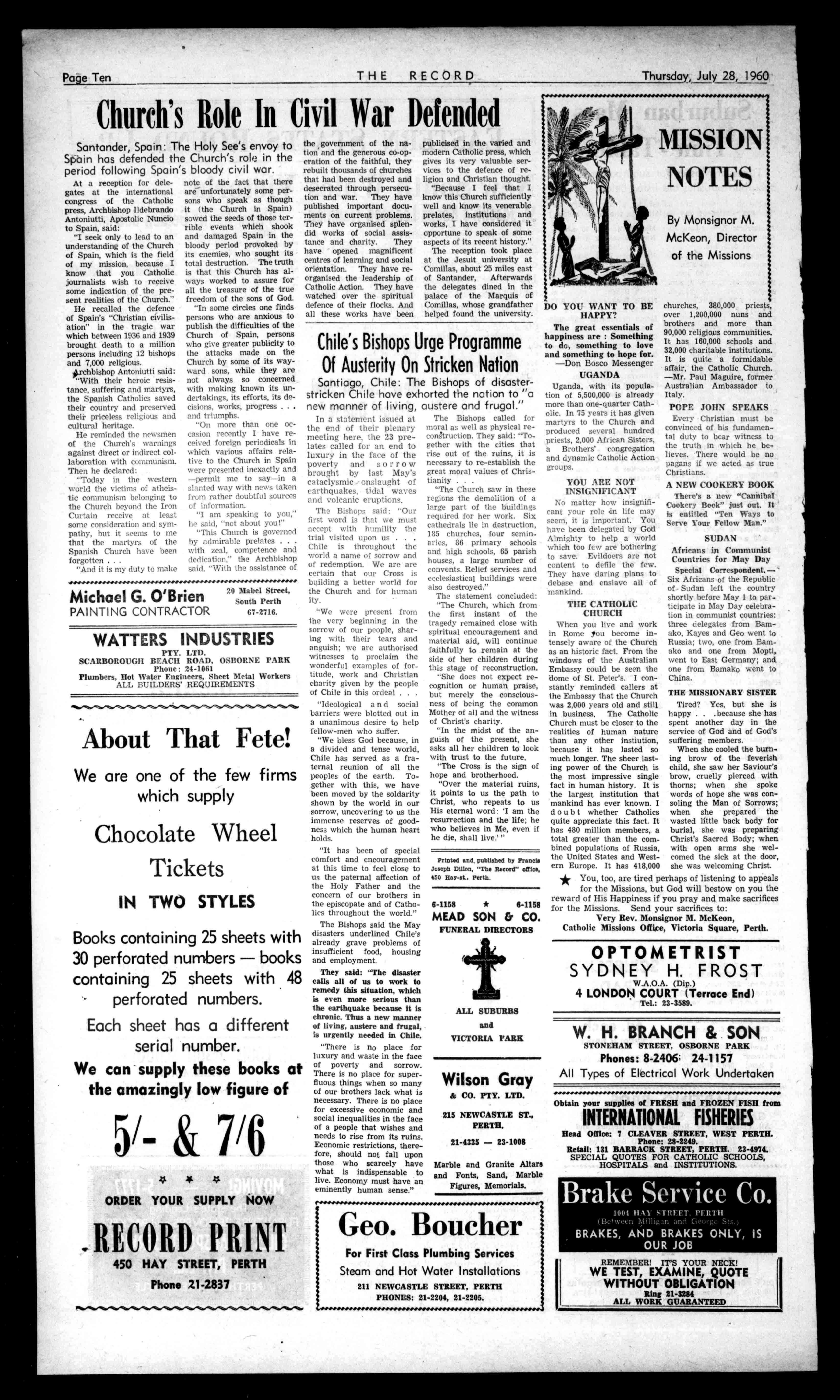 PractitionersinAll BranchesofDentistry 790-794HAYSTREET, PERTH ?bones:II-7414,91-79E7 Rinergearry:71-1601,II4-16719. Principals:JosephL.Rogers; AlfredL.Rogers,Dip.D.B. GlavenleatOar?artistCanKa rrauge4bylime THERECORD,450HAYSTREET. BoxR1279,G.P.O.,PERTH Telephone21-2837. SubscriptionRates: Allcorrespondenceshould £1/13/2peryear beaddressedtoThe 16/7perhalf-year Manager. Engagements,Births,Marriages,Deaths,InMemoriam, Accommodation,Wanted,ForSale,andallclassesof ClassifiedAdvertisements:4/-forthefirst10words, then1/6foreveryfivewordsorpartthereof. DISPLAYADVERTISING:15/-persinglecolumninch, orbycontractrates.-ApplyAdvertisingDepartment. CLASSIFIEDADVERTISEMENTS In