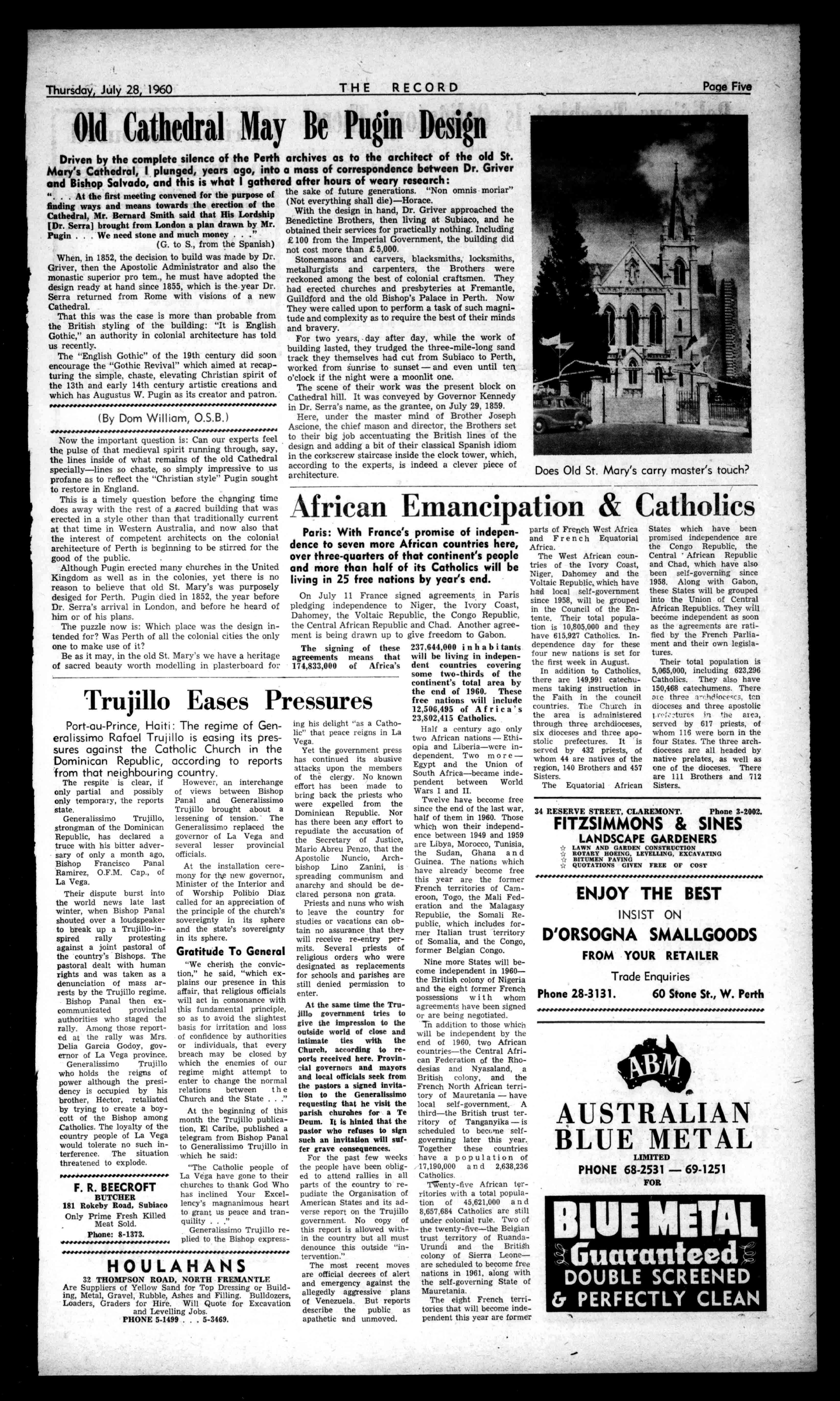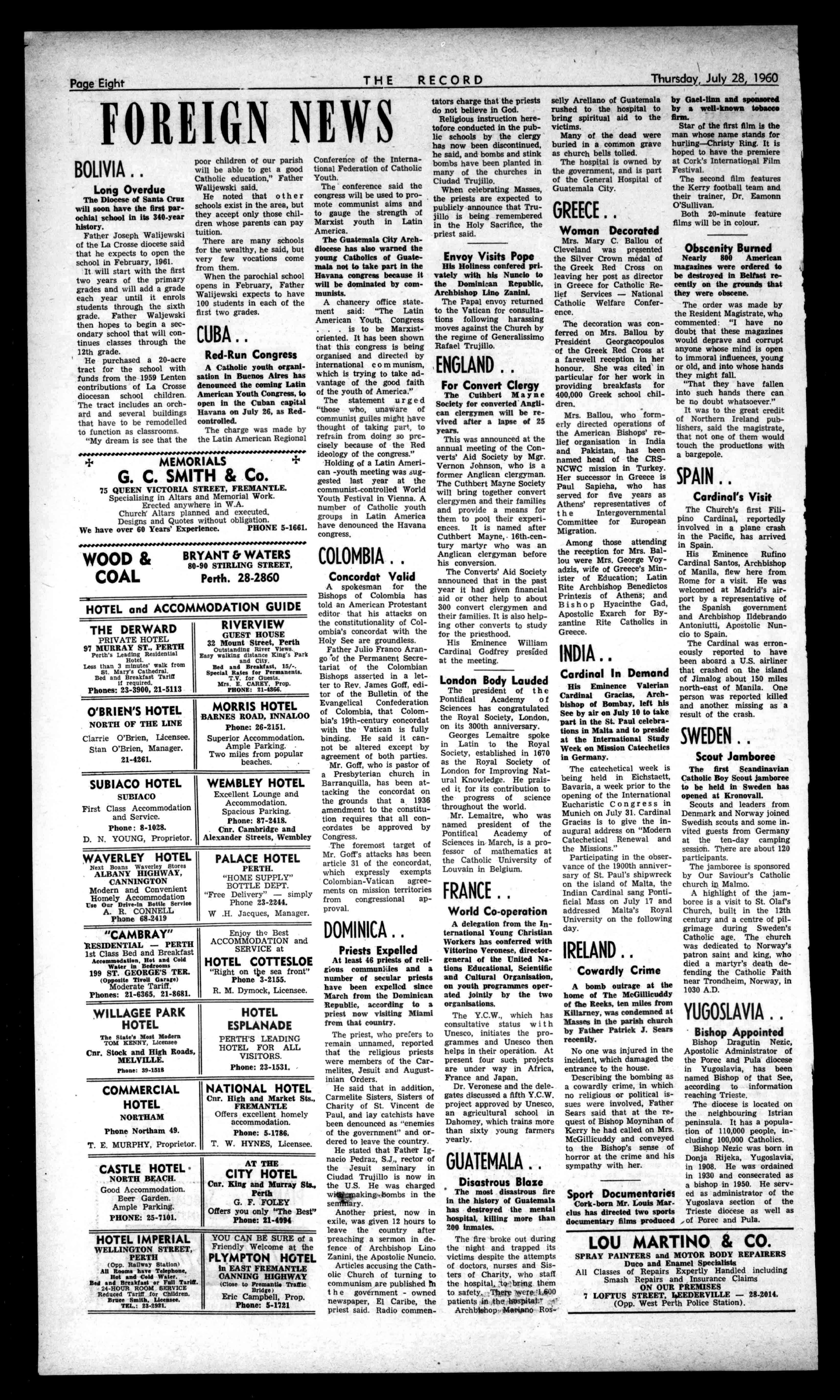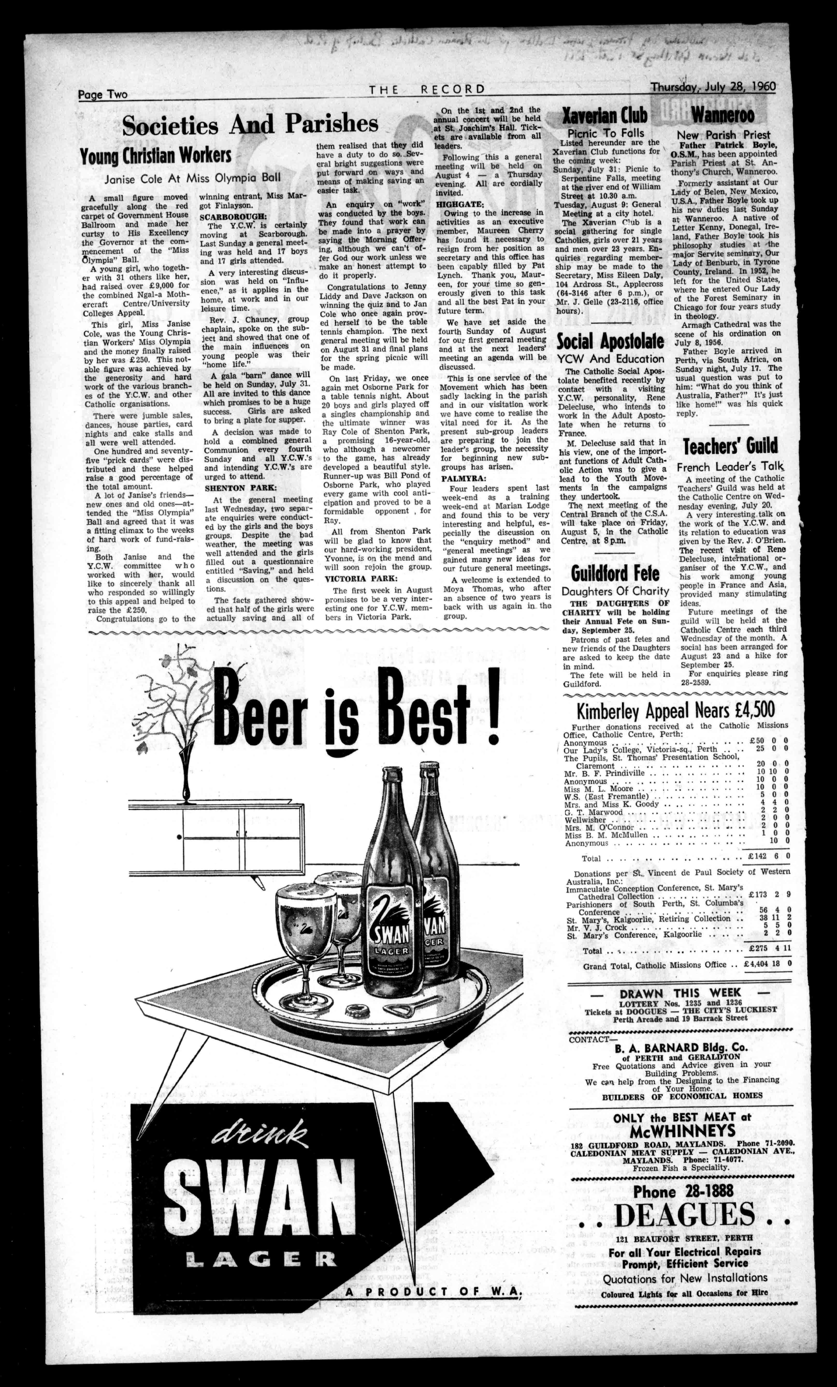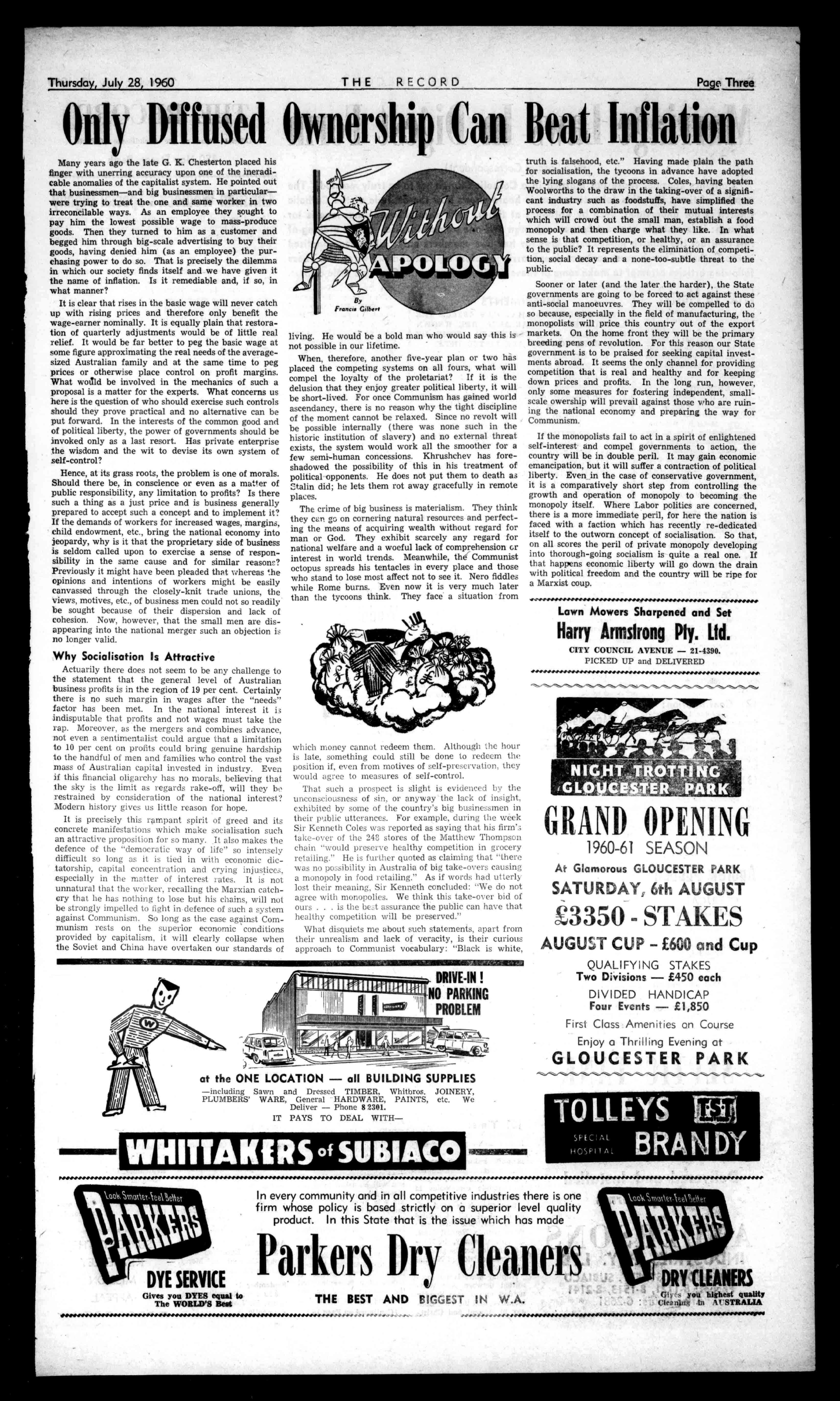 nay', 1.:;)(A AllCLIENTS, INDEMNIFIEDTO to.EXTENTof10000 RING 671825 Price6d. The1?ecot ,T No.2936 (RetisteredattheGP0Perth.for transmissionbypoolasaNewspaper) Perth,Thursday,July28,1960 NEWESTTRENDSIN MEN'S SUITS Seethefineststylesby thebestmakersat ?lyetia 602HAYSTREET TheTownHallisopposite.