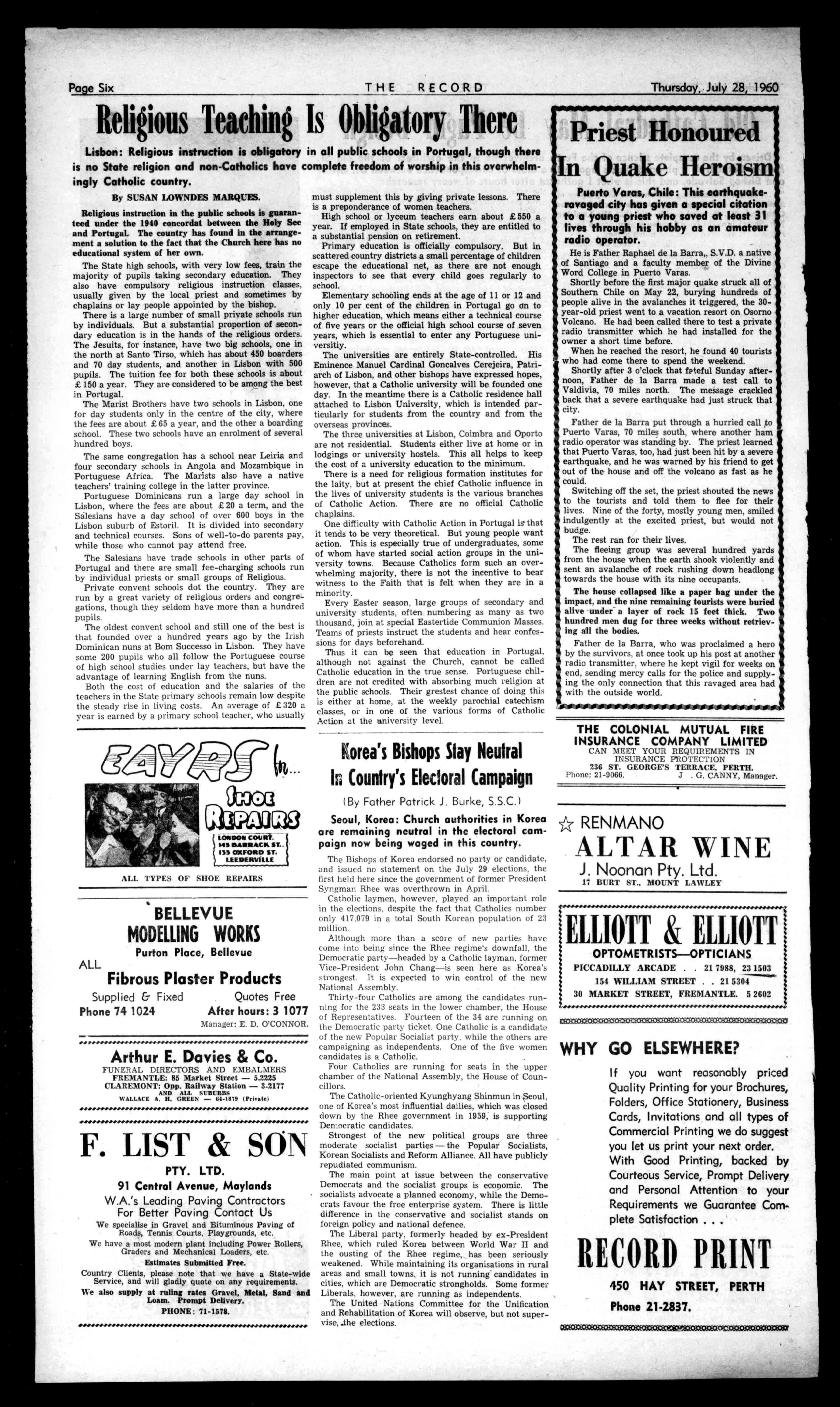 Professional PIANOS NewandReconditioned. TuningandRefelting Phone:Specialists.21-4586. STANSPIERSPIANOS 1255HaySt..WestPerth A CATHOLICPAPER IN EVERYHOME TheELSIEKELLY CORSETSALON FashionCorsets. Ladies'Surgicaland ExclusiveLingerie andHosiery. "Salon,"Room109.First Floor,SheffieldHouse 713HAYSTREET (OverLevinson's)