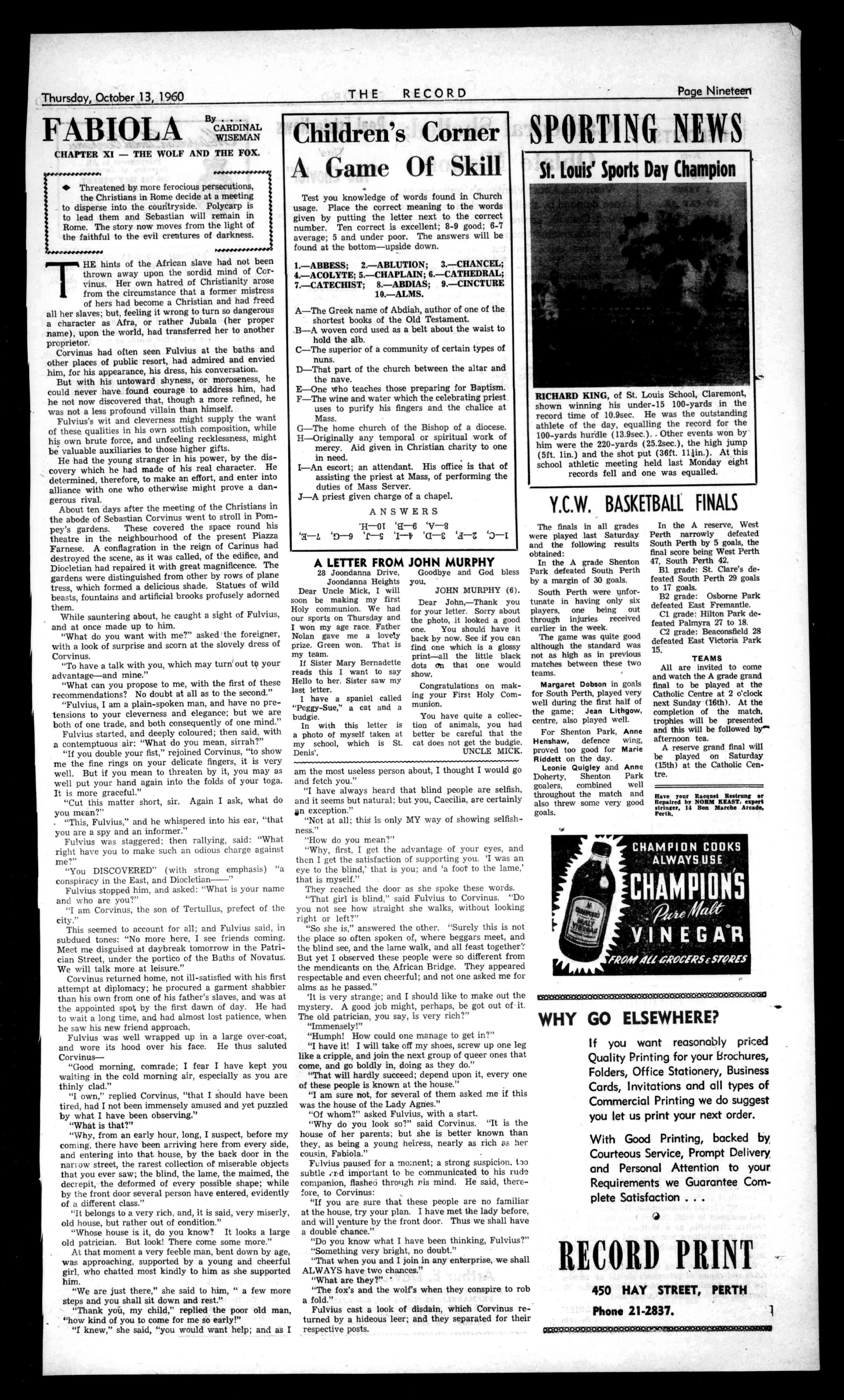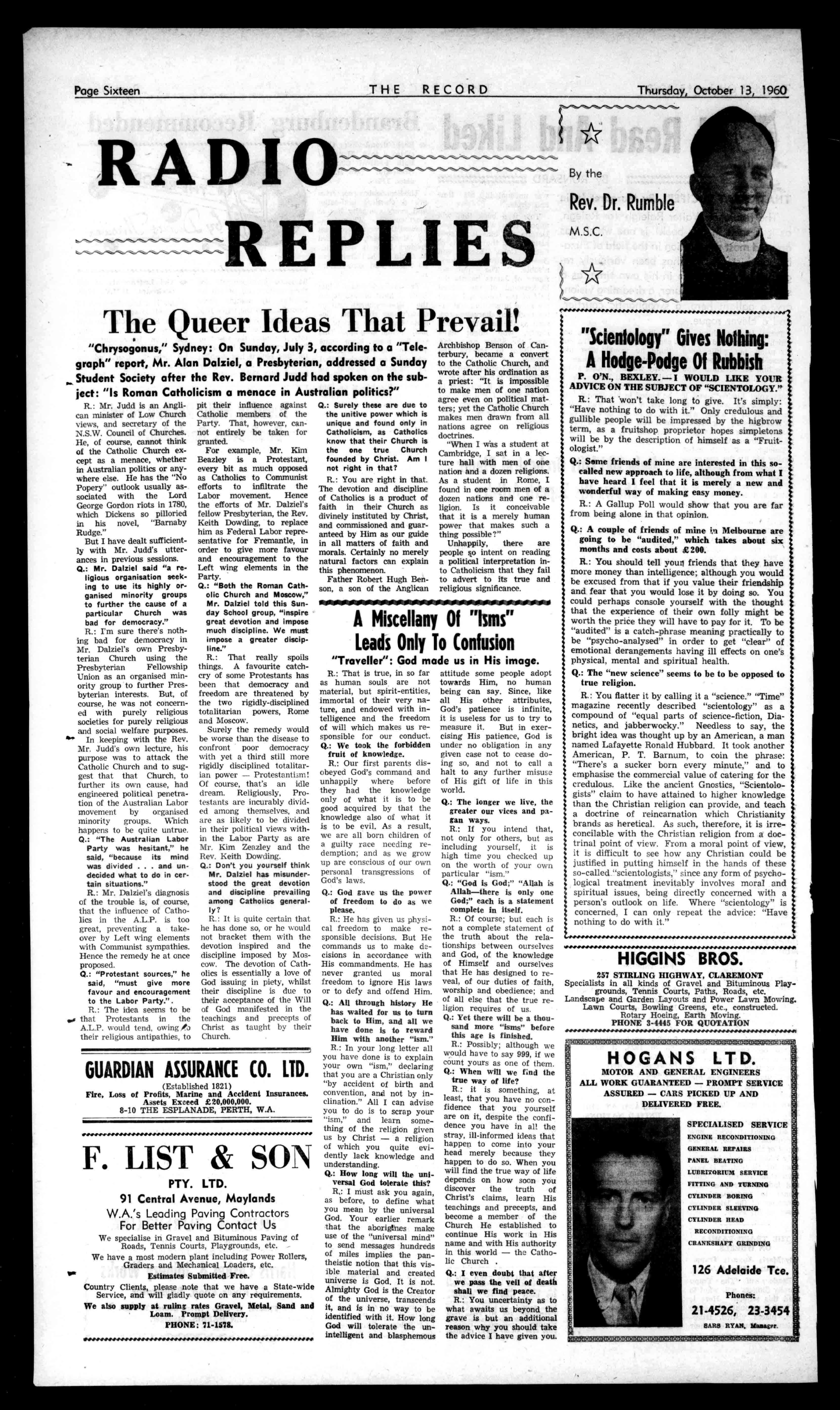 FultonSheen,Leader 2 FeatureNews 3 ForeignNews 4 KellerberrinWelcome 5 LivingWithChrist 6 VaticanNews 7 SocietiesandParishes14,11 OfInteresttoWomen18,15 RadioReplies 16,17, Children'sPage 18 Classified 26