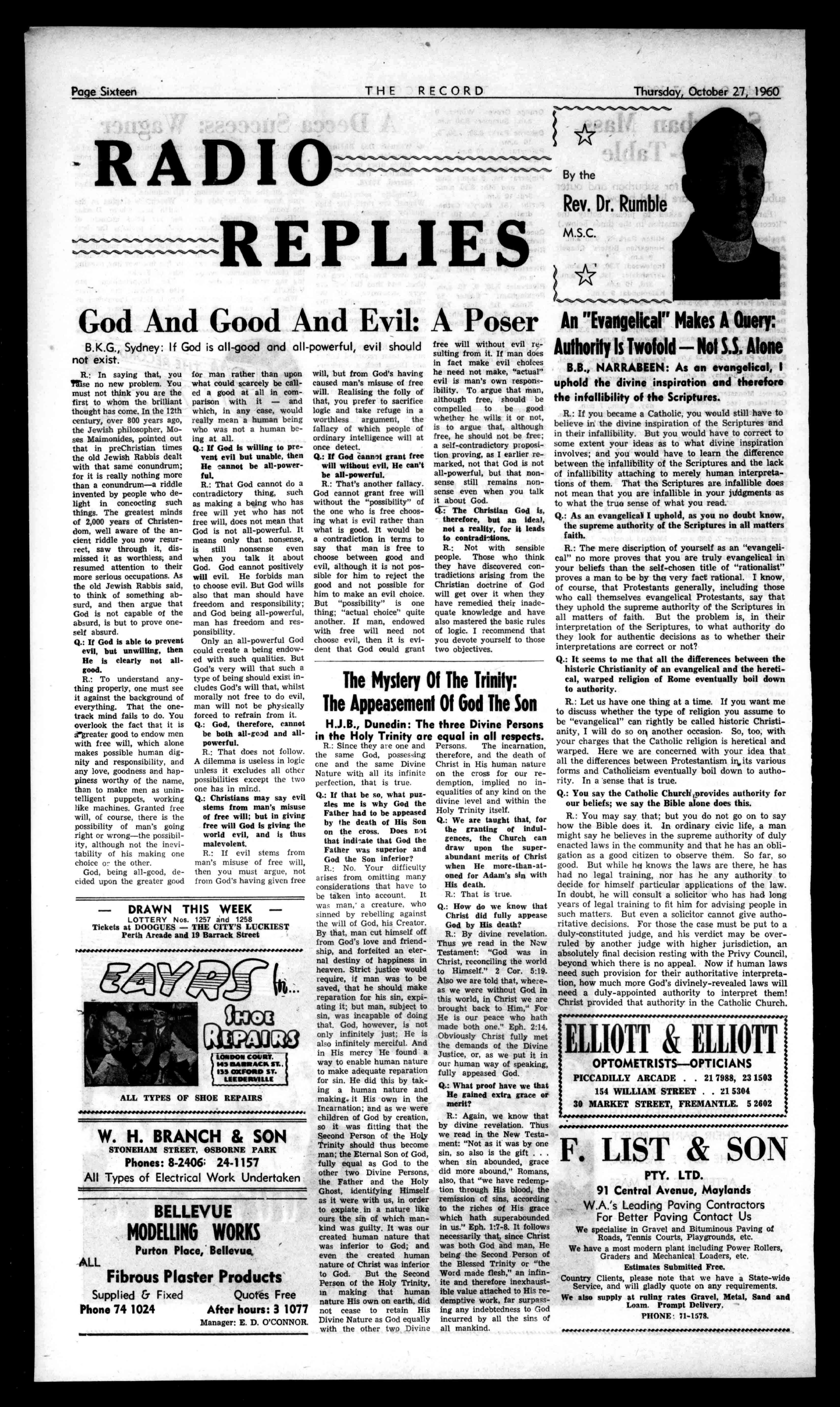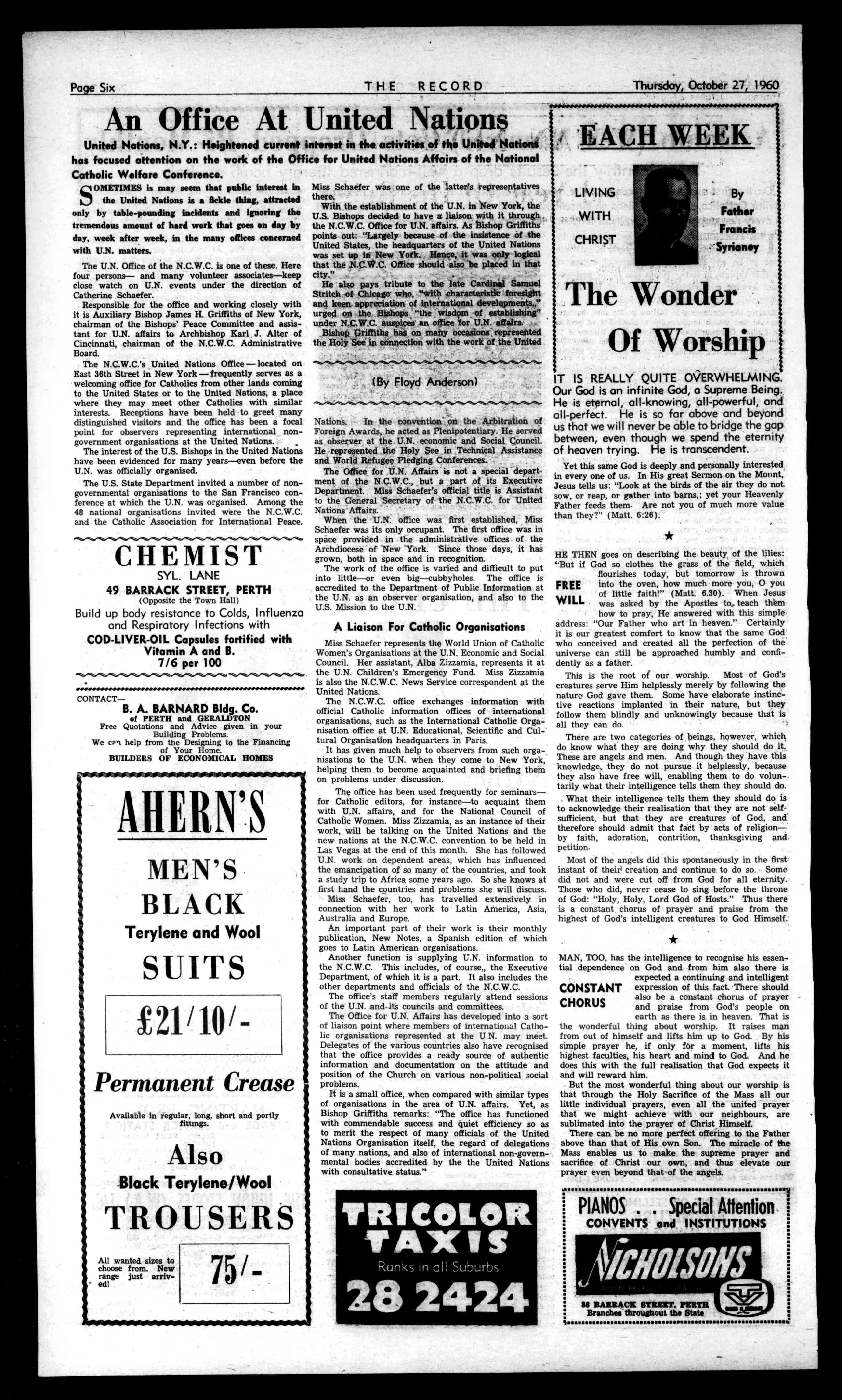 R1279,G.P.O.,PERTH Telephone21-2837. SubscriptionBates: Allcorrespondenceshould £2/5/6peryear beaddressedtoThe £112/9perhalf-year Manager. Engagements,Births,Marriages,Deaths,InMemoriam. Accommodation,Wanted,ForSale,andallclassesof ClassifiedAdvertisements:4/-forthefirstIIwords. then1/6foreveryfivewordsorpartthereof. DISPLAYADVERTISING:15/-persinglecolumnhark orbycontractrates.-ApplyAdvertisingDepartment CLASSIFIEDADVERTISEMENTS PianoWonted Deaths WOULDgenerousCatholic desirousofhelpingpriest startYouthClubin