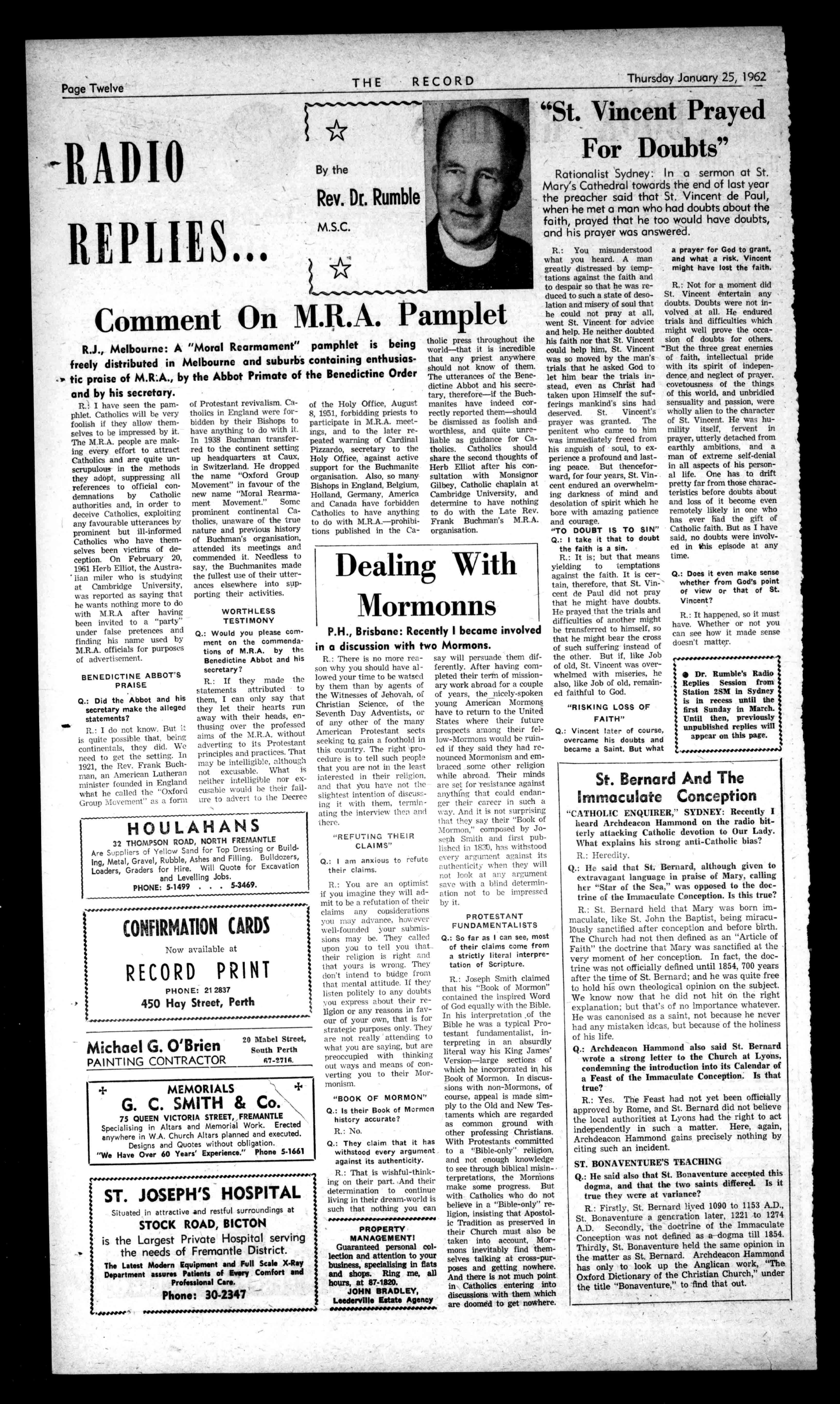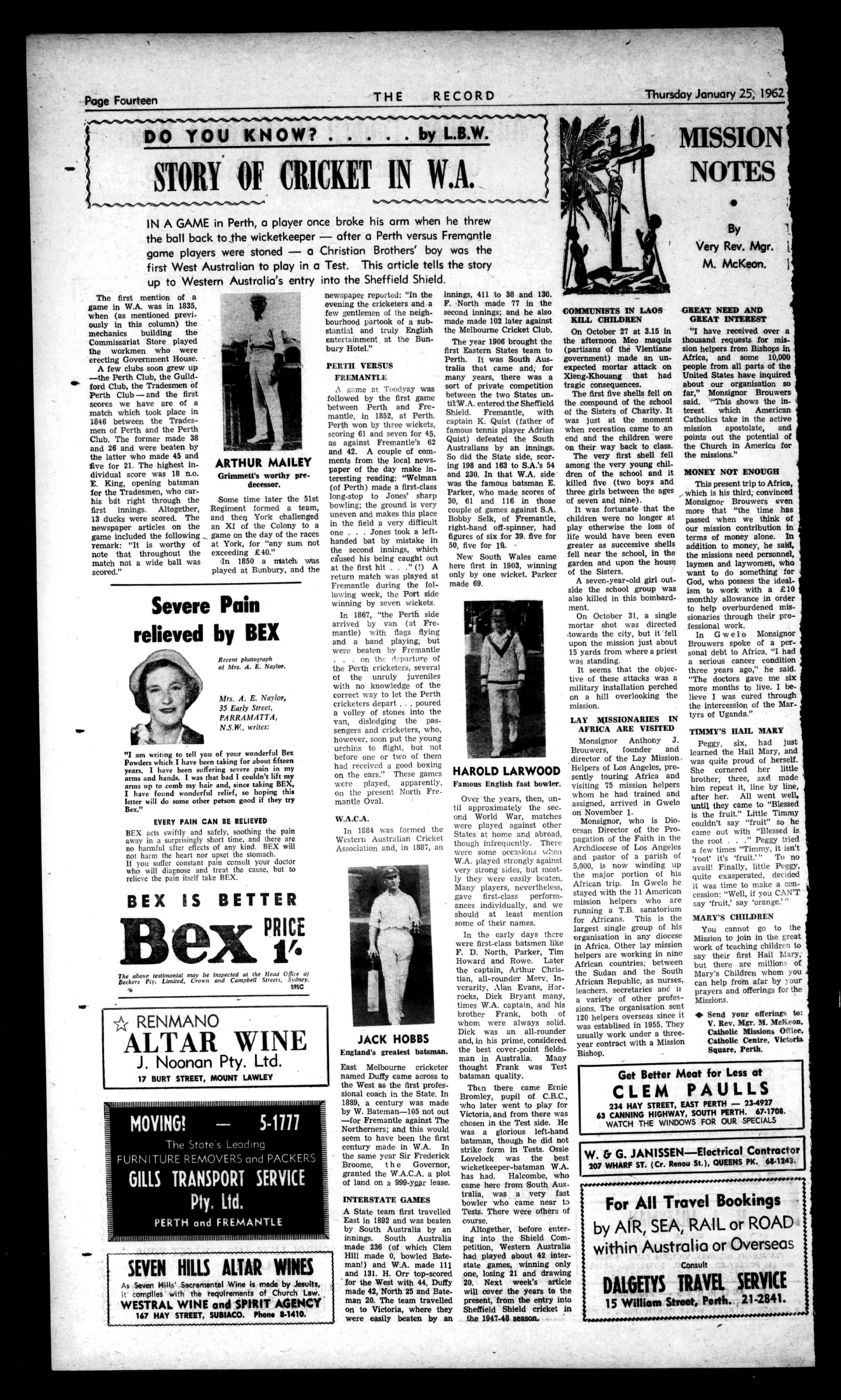 51,51,1:TUCKERand ,AURISCH are RADIATORSPECIALISTS AllReplacementsandRepairsbl Qualifier!Tradesmen. PHONE21.2T07 orCall 1017HAYST.;,PEli,T+4 SPECIALLYCATEREDFOR PARTIESandSOCIALS (AlsoonSundays). RESTAURANT 57LAKEST.,PERTH Telephone:23-1589 EUROPEAN CLUB SIGHTCLUBAND PractitionersInAll BranchesofDentistry 790-794HAYSTREET, PERTH Phones:11-7484,51-7837 Emergency:71-1601,86-1630. Principals:JosephL.Rogers; AlfredL.Roger.,Dip.Dig ConvenientCarParkingCanSi ArrangedbyPhase THERECORD,450HAYSTREET. BoxR1279,G.P.O.,PERTH. Telephone21-?837. SubscriptionRates: Allcorrespondenceshot!a £2/5/6peryear beaddressedtoThe £112/9perhalf-year Manager. Engagements,Births,Marriages,Deaths,InMemo/ism, Accommodation,Wanted,ForSale,andalldais,;of ClassifiedAdvertisements:4/-forthefirst10w'rds, then1/6foreveryfivewordsorpartthereof DISPLAYADVERTISING:15/-persinglecolumn orbycontractrates.-ApplyAdvertisingDeparti-ent. CLASSIFIEDADVERTISEMENTS BoardWanted