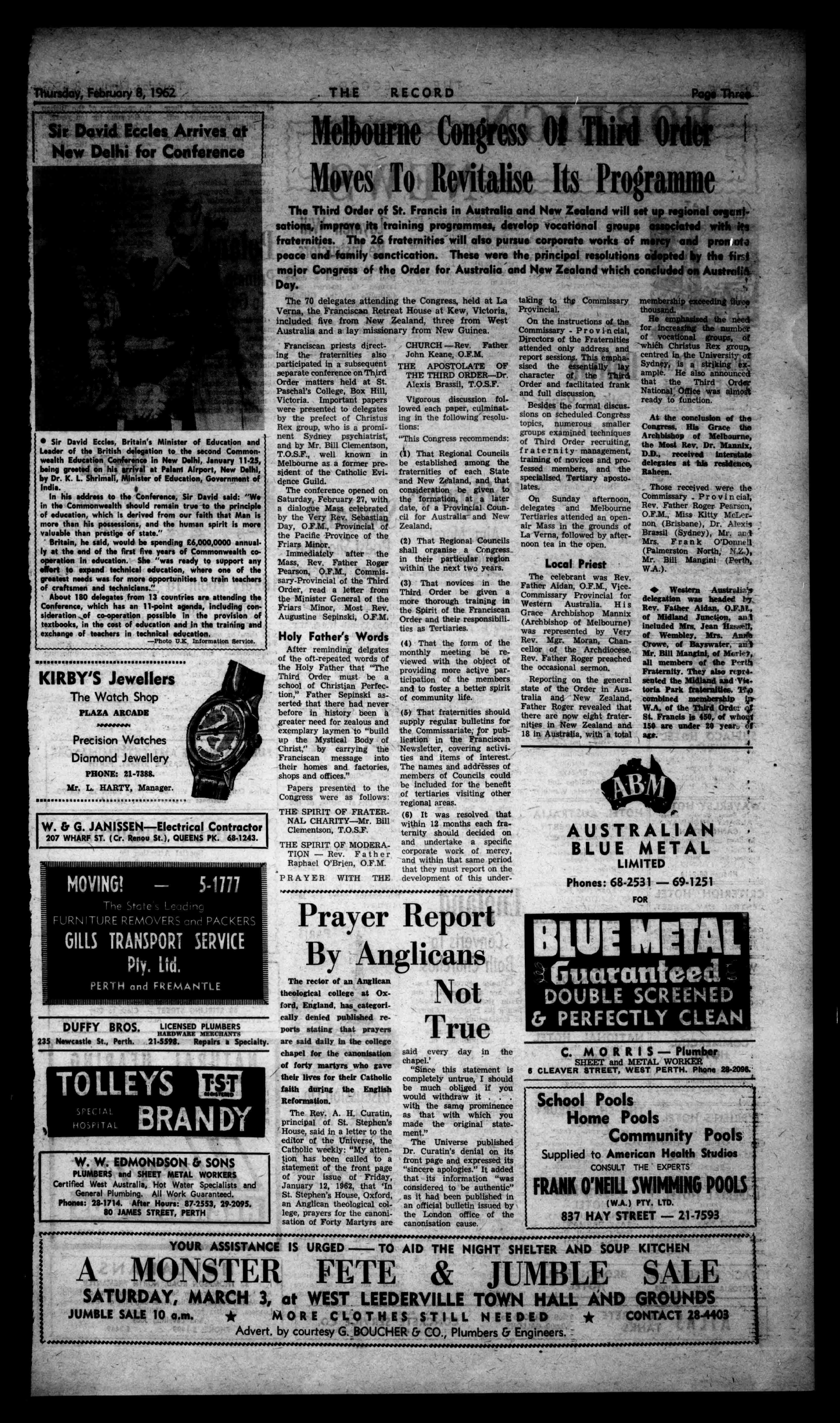 ADELAIDE,S.A.71-7556, BedandBreakfastTariff: Motel:85/,20/-. Goes*House:25/,12/6, EUROPEANNIGHTCLUBRESTAURANT FULLYAIR-CONDITIONED DancingandEntertainmentNightly 27LAKESTREET,PERTH-23-1589 PRIVATEROOMFORPARTIES-WESPECIALISEIN"MEALS TOTAKEAWAY,-RineandOrder. WEDDINGSandPARTIESONSUNDAYS. .,149tawaidert404, PractitionersInMI BranchesofDentistry 790-794HAYSTREET, PERTH Phone.t21-7444,11-78117 Entergeneys71-1101,1111-111311. Principals:JosephLRose.: AlfredL.Roden,Dip.DIE OonvealestCarParkingOM ArrangedbyPhase 1 THERECORD,450HAYSTREET. BoxR1279,G.P,O.,PERTH. Telephone214837. SubscriptionRates: Allcorrespondenceshould £2/5/6peryear beaddressedtoThe £112/9perhalf-year Manager. Engagements,Births,Marriages,Deaths,InMemoriam, Accommodation,Wanted,ForSale,andallclassesof ClassifiedAdvertisements:4/-forthefirstISwords, then1/6foreveryRvewordsorpartthereof. DISPLAYADVERTISING:15/-persinglecolumnInch, orbycontractrates.-ApplyAdvertisingDepartment. CLASSIFIEDADVERTISEMENTS Deaths
