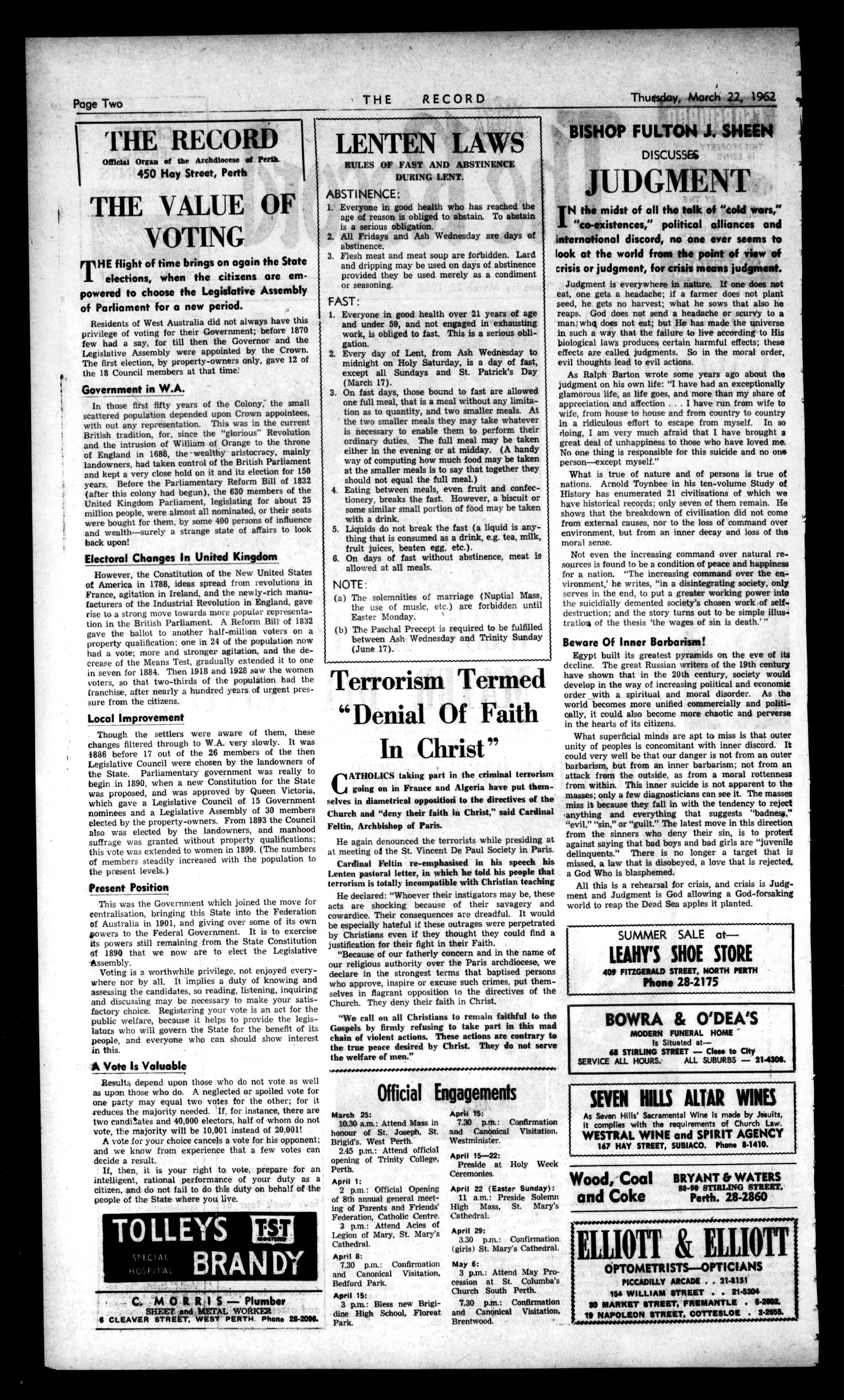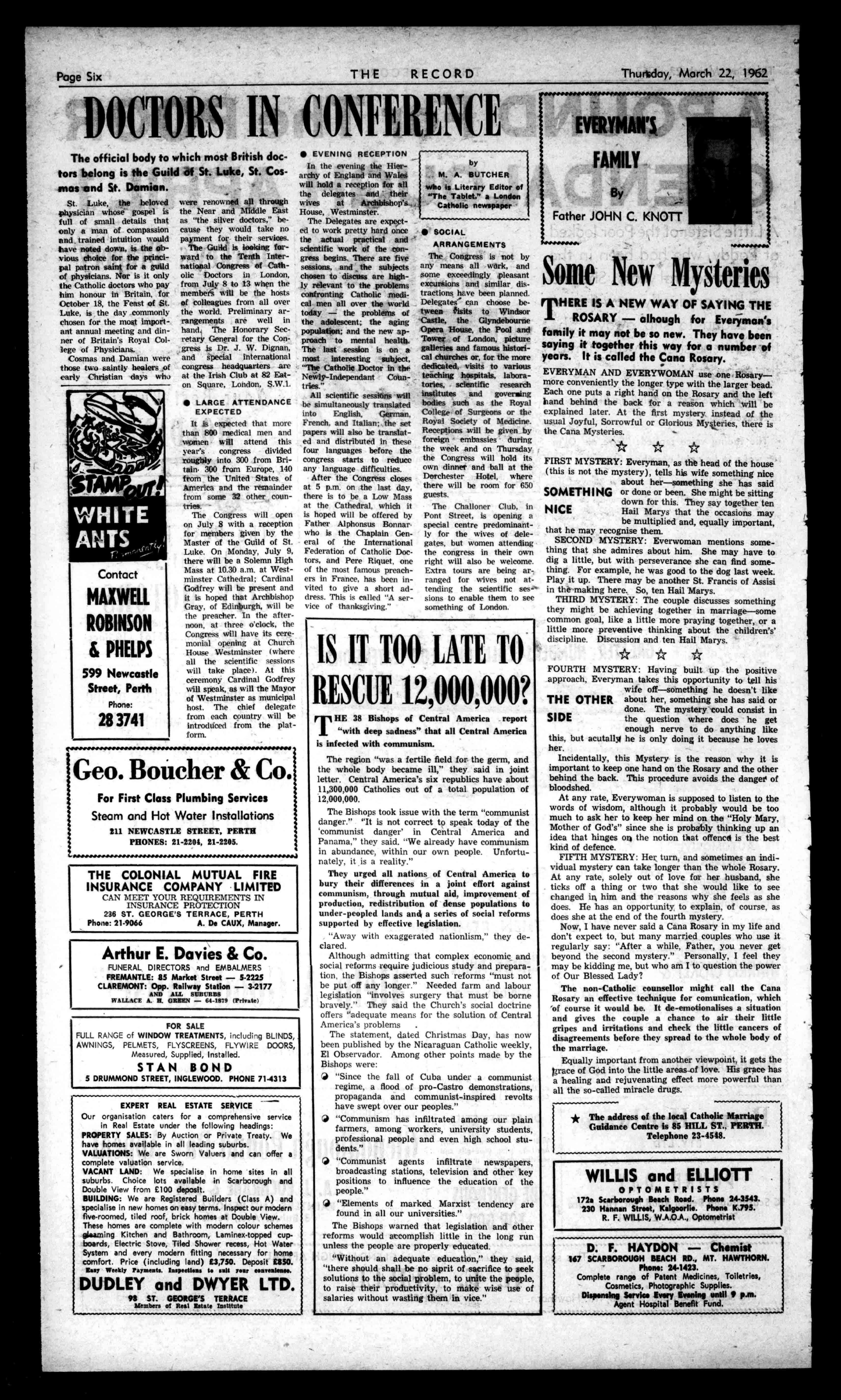 sli,kte, Qck v\L7144-4-OAA £50REIHRD TIESPROPERTY ISBEING SYTHE ir ANNANWATCHINGCo AltCLIENTS' INOIMMIEDTO TheEXTENT.441000 6825 The1?eco No.3023Perth,Thursday,March22,1962. ":,t:21;°: Lee, Price9d. PILKINGTON'SINTRODUCE -CREDIT SERVICE ACCOUNTS Seethebigintroductoryoffer! 0051ANACCOUNTNOW 602HAYSTREET TheTownHallIsopposite PRESIDENT CALLSFOR GREATER NUMBERSAND INTEREST "THEPOTENTIALOFTHECATHOLICWOMEN'S LEAGUEINTHISGROWINGSTATEISENORMOUS," SAIDMRS.R.JOLLEY,STATEPRESIDENTOFTHE LEAGUERECENTLY.
