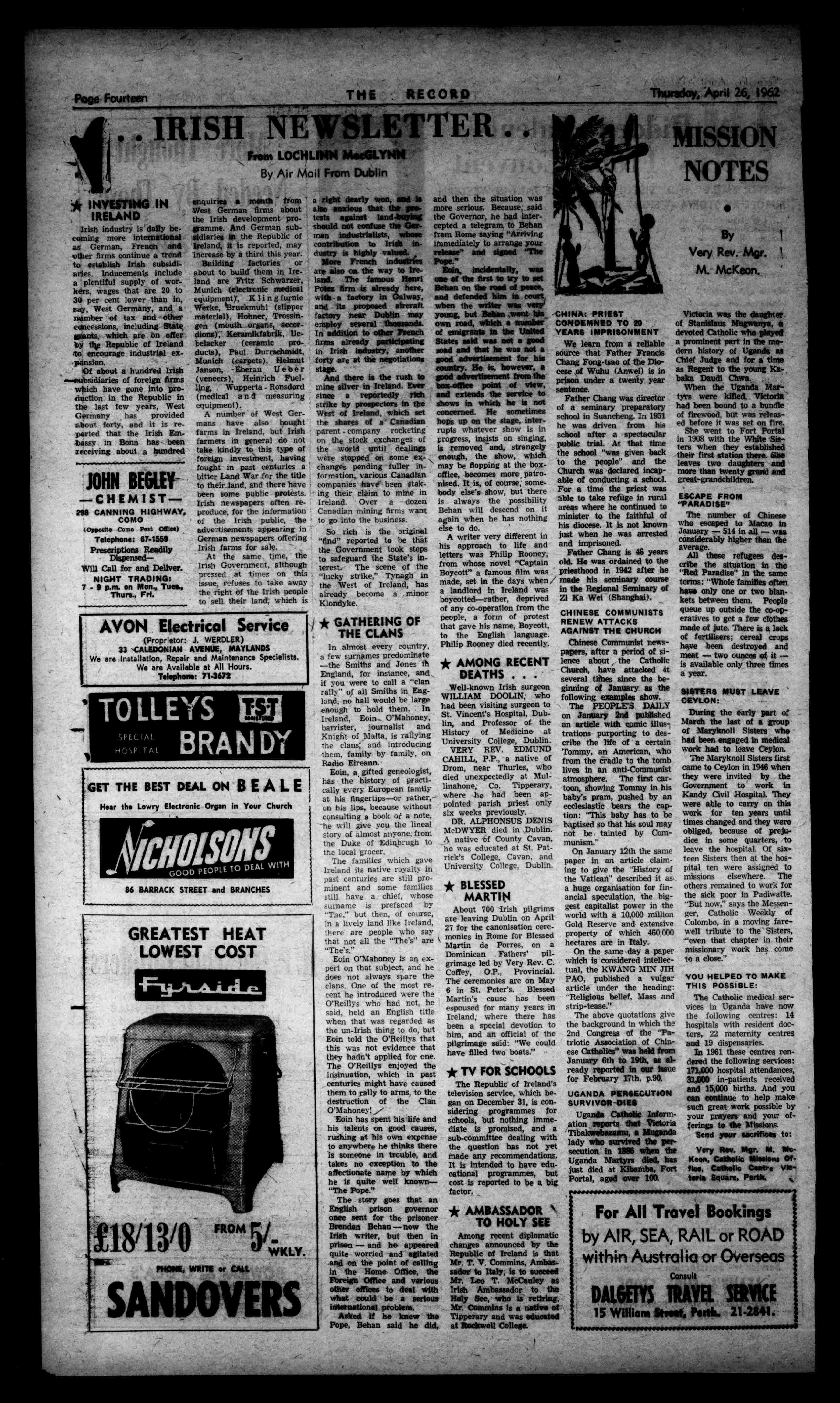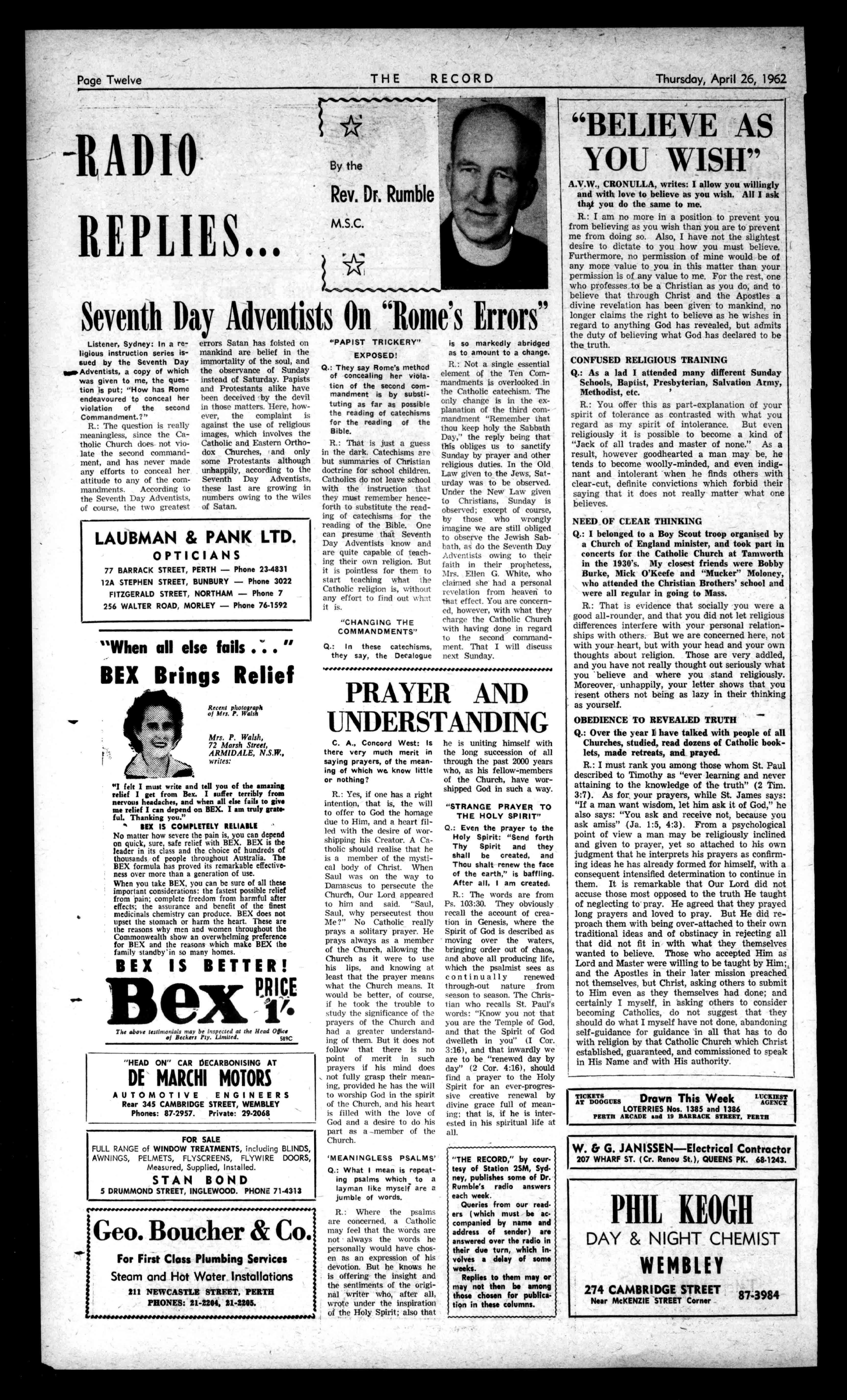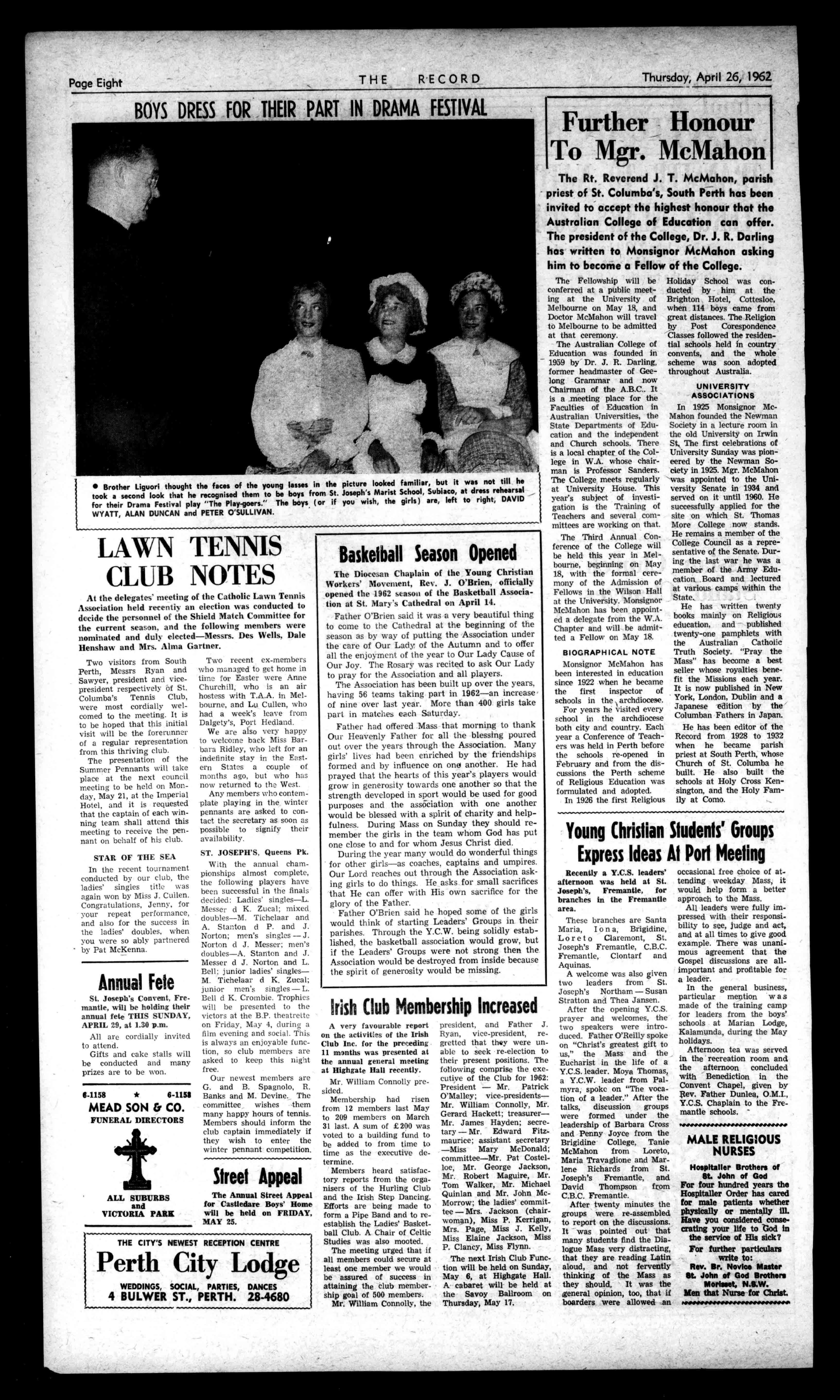 PractitionersInAll BranchesofDentistry 790.794HAYSTREET, PERTH Phones:21-7454,11-7517 Emergency:71-1601,116-14110. Principals:JosephL.Roger.; AlfredL.Rogers,Dip.D.B. CearanientCarParkingCsais Arrangedbyrho.. THERECORD,450HAYSTREET. BoxR1279,G.P.O.,PERTH. Telephone21-2837. SubscriptionRates: Allcorrespondenceshould E2/5/6peryear beaddressedtoThe £1/2/9perhalf-year Manager. Engagements,Births,Marriages,Deaths,InMemoriam, Accommodation,Wanted,ForSale,andallclassesof ClassifiedAdvertisements:4/-forthefirst10words, then1/6foreveryfivewordsorpartthereof. DISPLAYADVERTISING:15/-persinglecolumninch, orbycontractrates.-ApplyAdvertisingDepartment. CLASSIFIEDADVERTISEMENTS Deaths