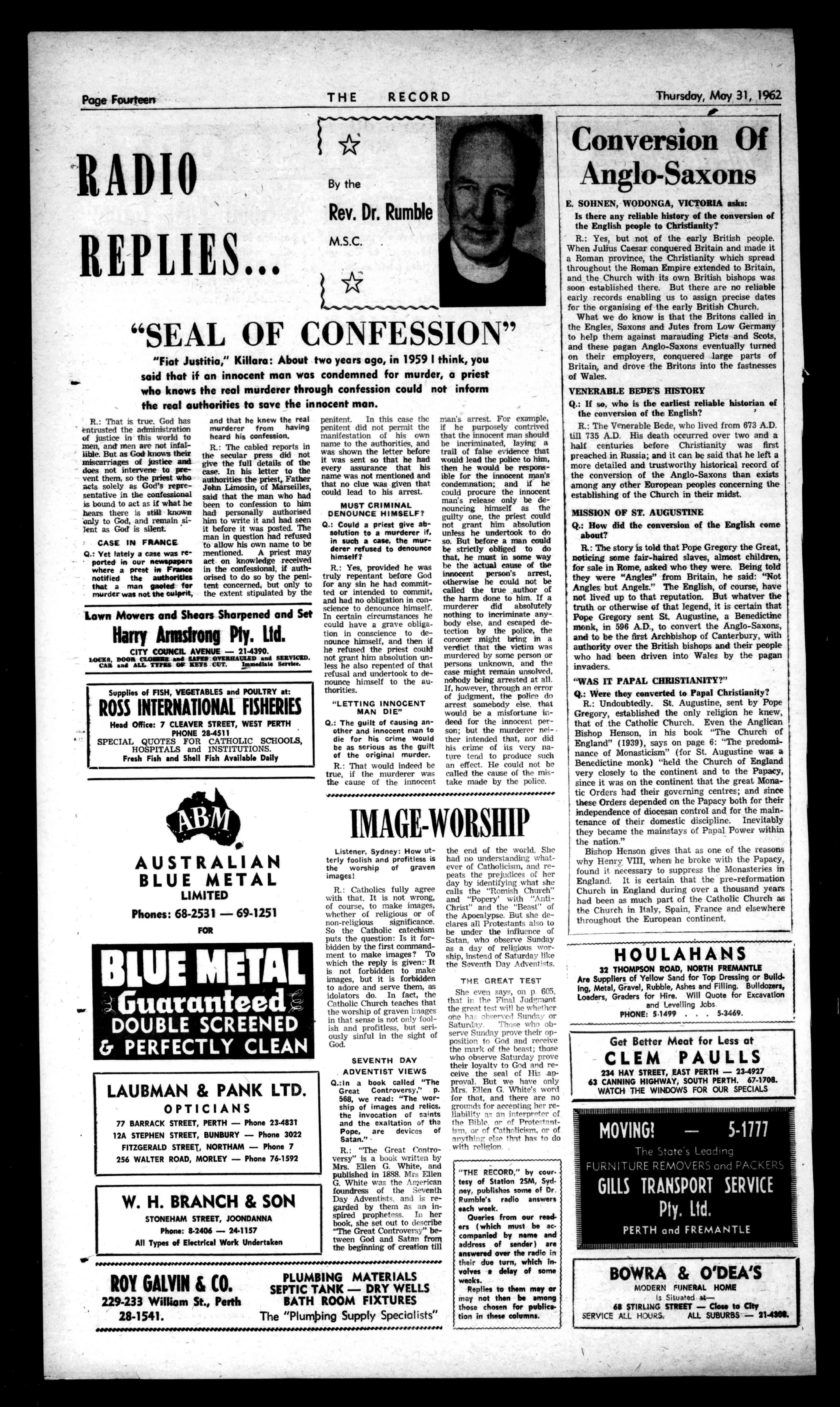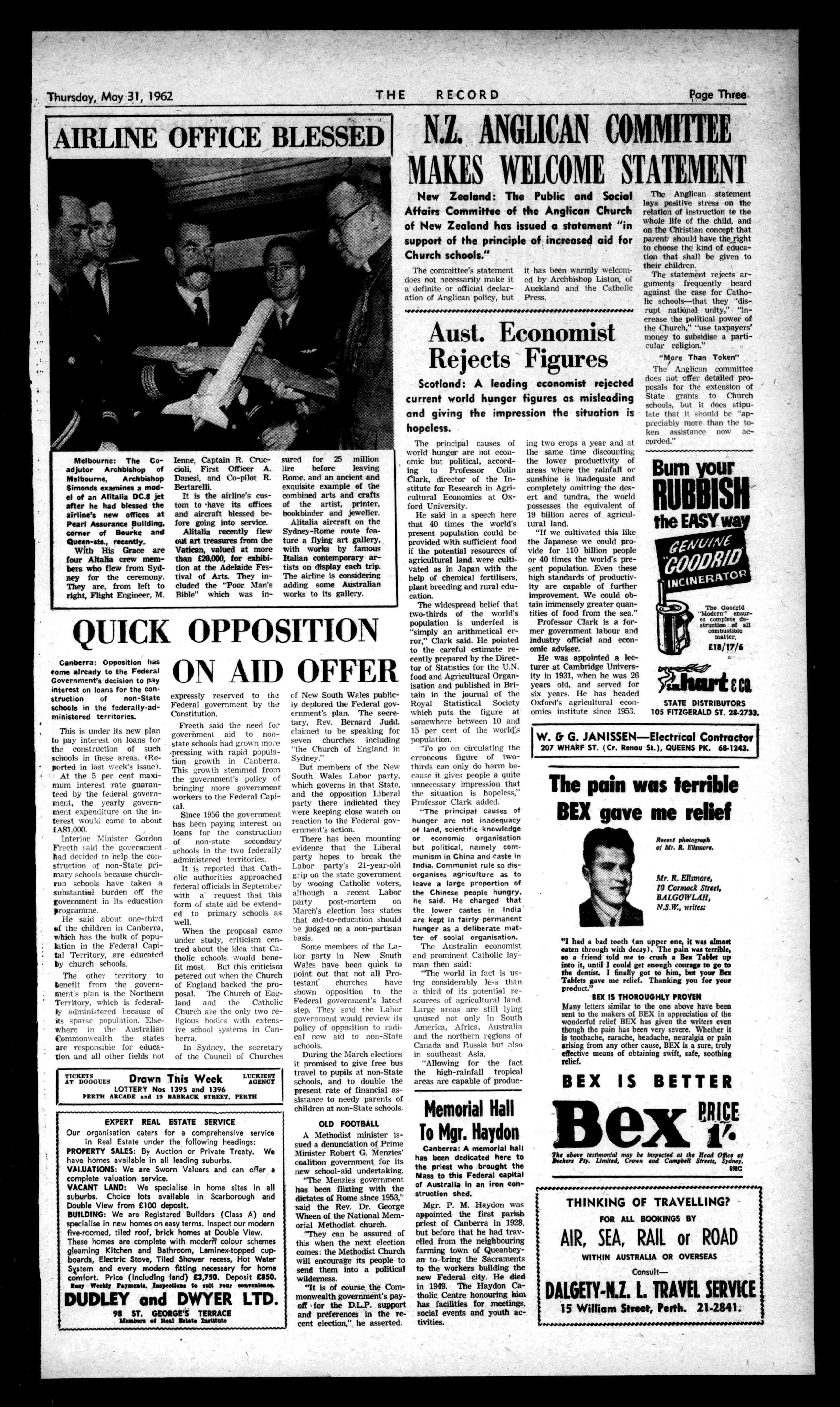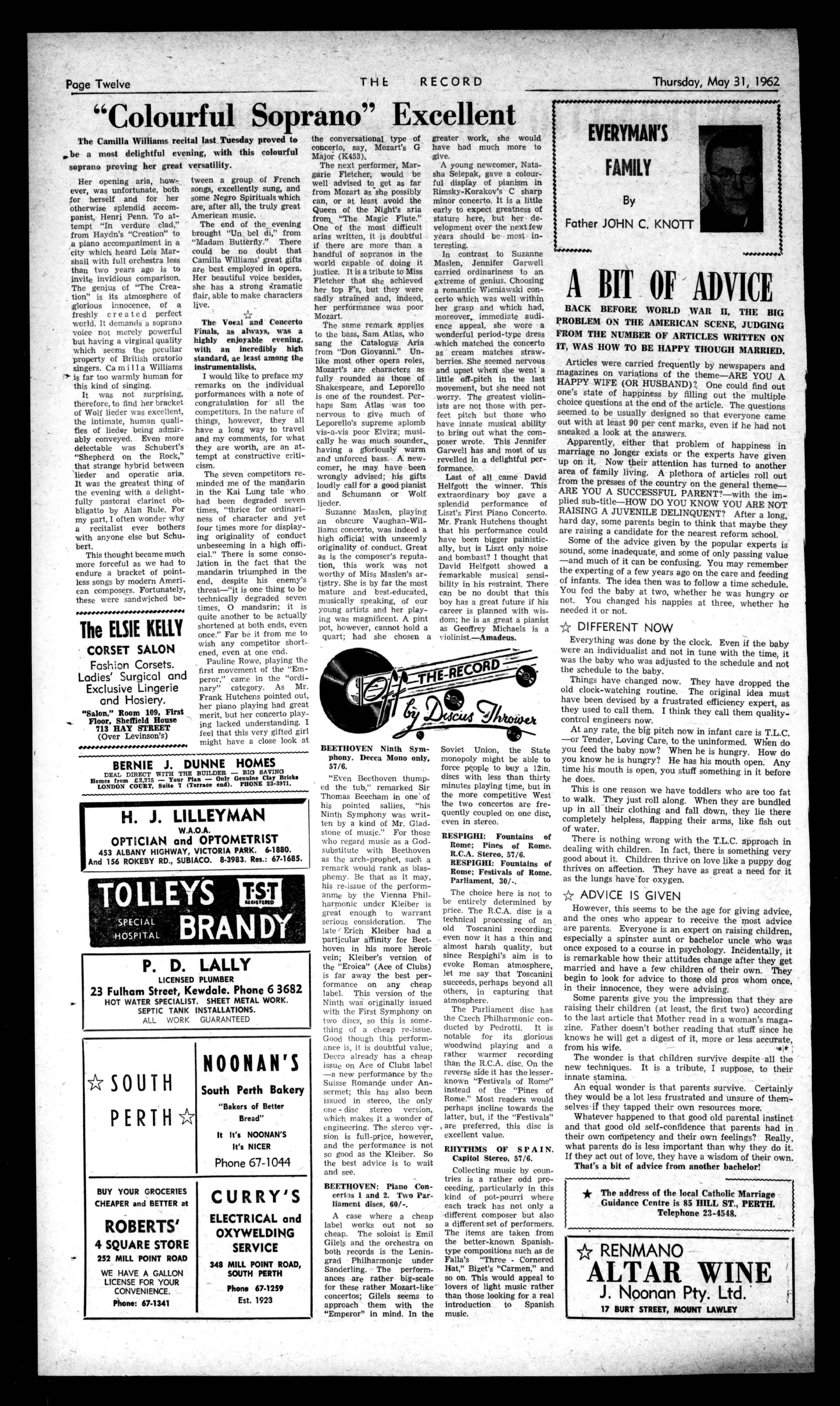 PractitionersinAll BranchesofDentistry 790-794HAYSTREET, PERTH Phones:21.7484,514887 Entergeney:714401,sii-tess. Principals:JosephL.Rogers; AlfredL.Rogers,Dip.DS. CeavenlentCarParkingCanBo Arranredby'bees THERECORD,450HAYSTREET. BoxR1279,G.P.O.,PERTH. Telephone21-2837. SubscriptionRates: Al-1correspondenceshould £2/5/6peryear beaddressedtoThe .E1/2/9perhalf-year Manager. Engagemerts,Births,Marriages,Deaths,InMemoriam, Accommodation,Wanted,ForSale,andallclassesof ClassifiedAdvertisements:4/-forthefirst