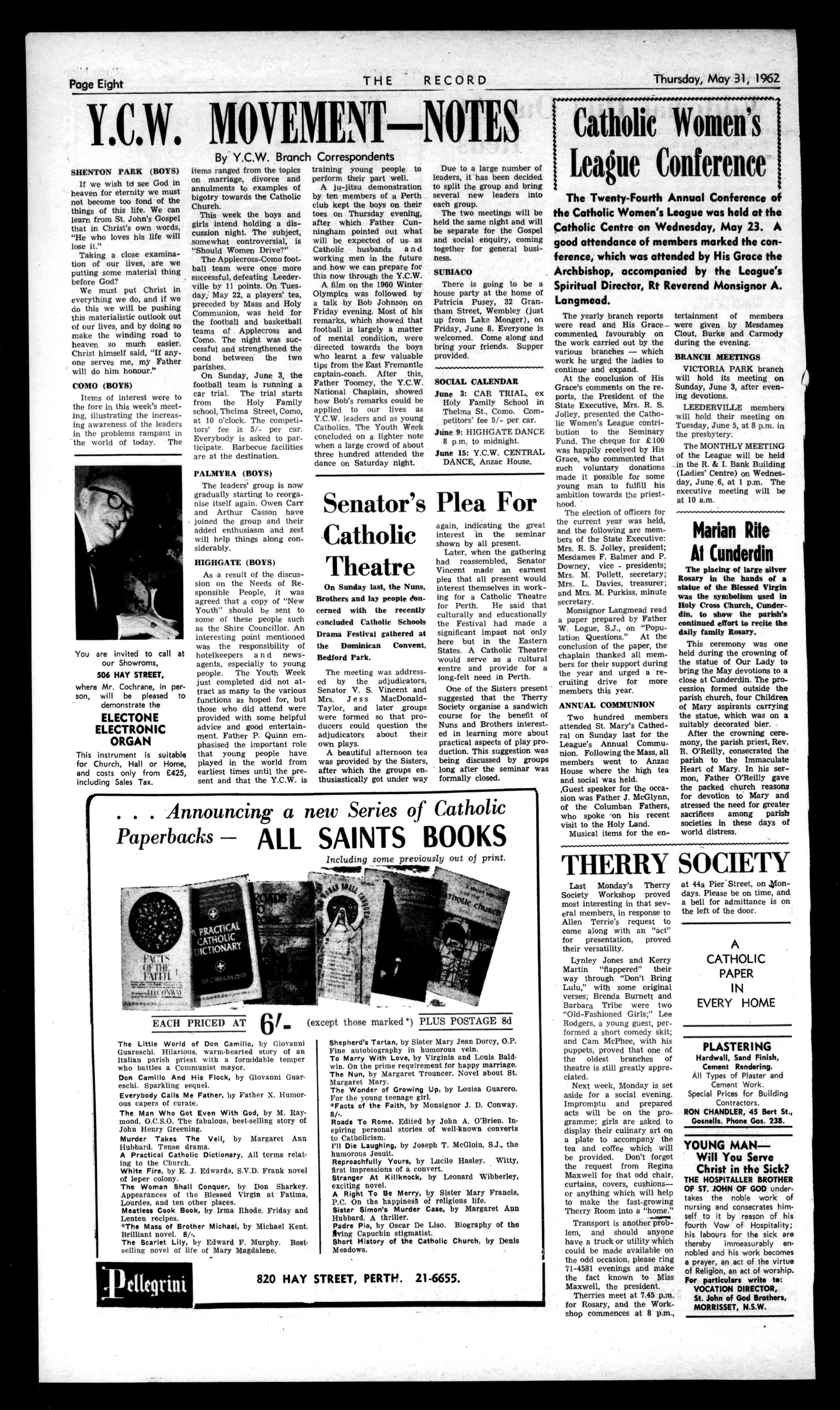 PogeSixteen THE RECORD Thursday,May31,1962
