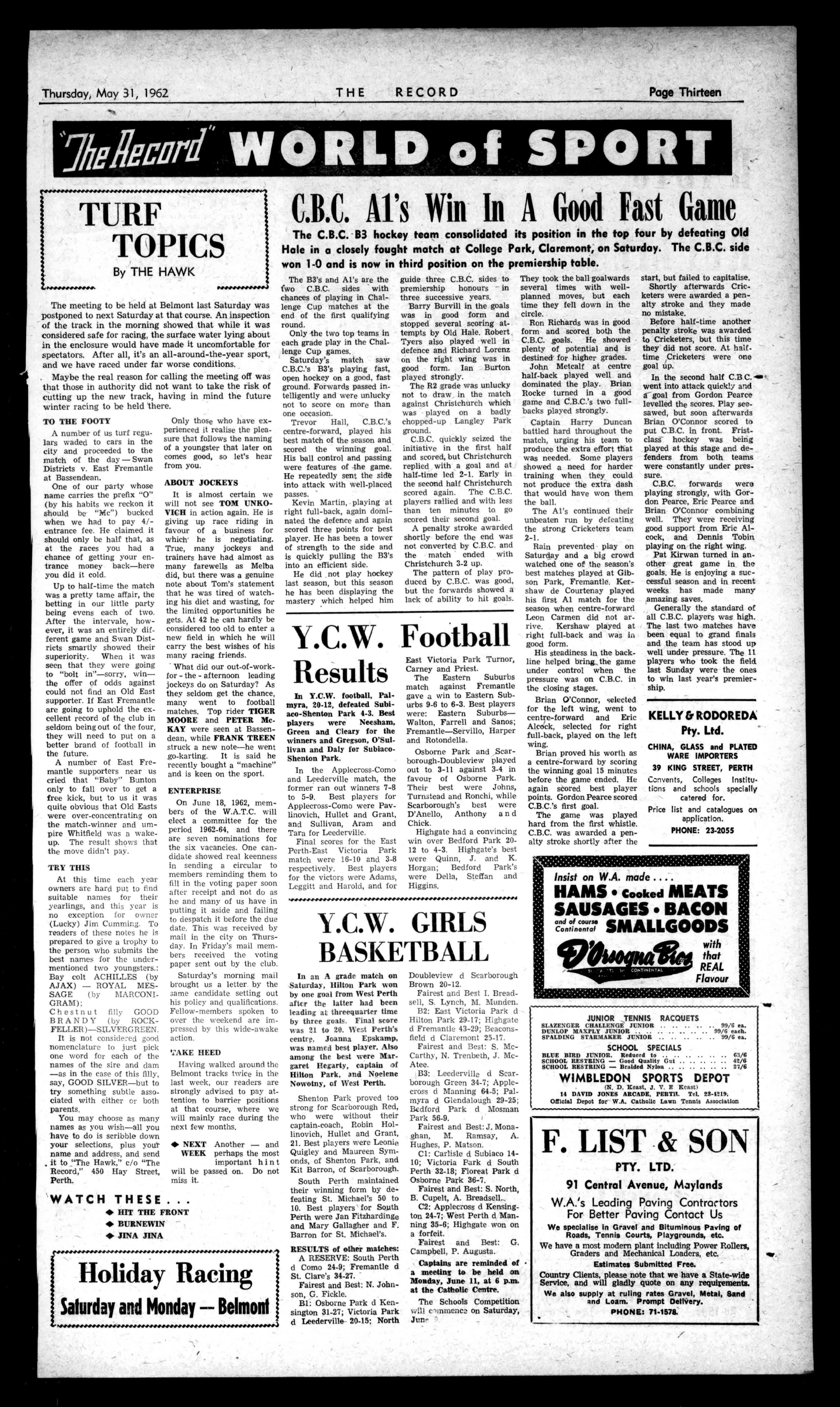 rm,4et4444\4 IQattailt ilketie g/gt44 It) THISPROPERTY ISBEING AllCLIENTS INDEMNIFIEDTO EMEXTENTof.1000 Te-'47 The:1?ecola INo.3033.Perth,Thursday,May31,1962transsteredattheO.P.O..Perth.for missionbypostwsaNewspaper.) Price9d. !Regi LATESTIANDSHORT CARCOATS WITHFURCOLLARS fromL616/SERVICEACCOUNTAT OpenaCREDIT 602HAYSTREET TheTownHallIsopposite