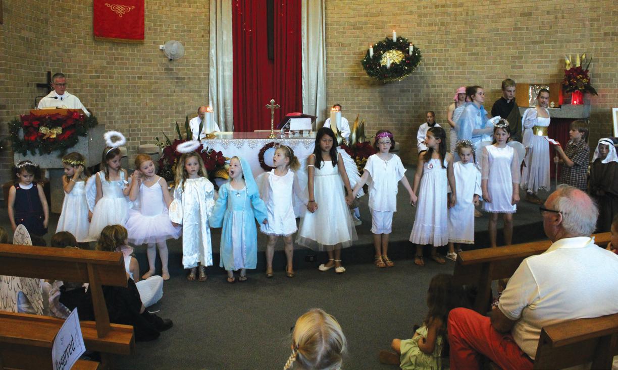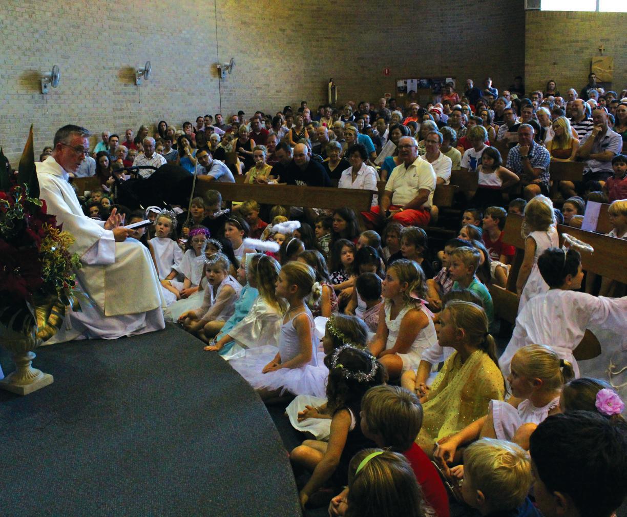 Plenty of children came forward to hear the Christmas story from Fr Don Kettle, parish priest of Holy Spirit Parish at City Beach, during the children’s Christmas Mass this year. More were on hand to perform for a delighted congregation.