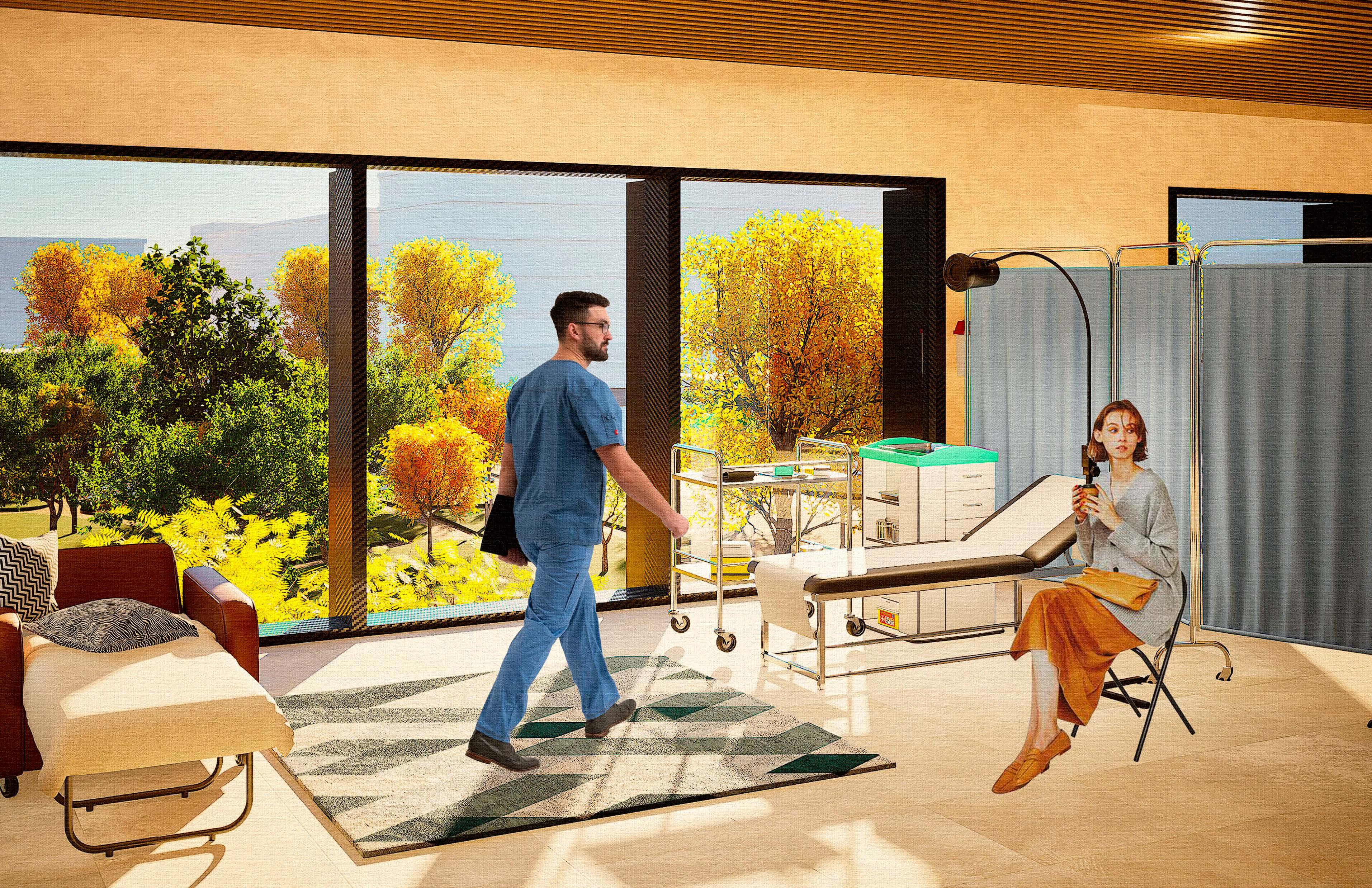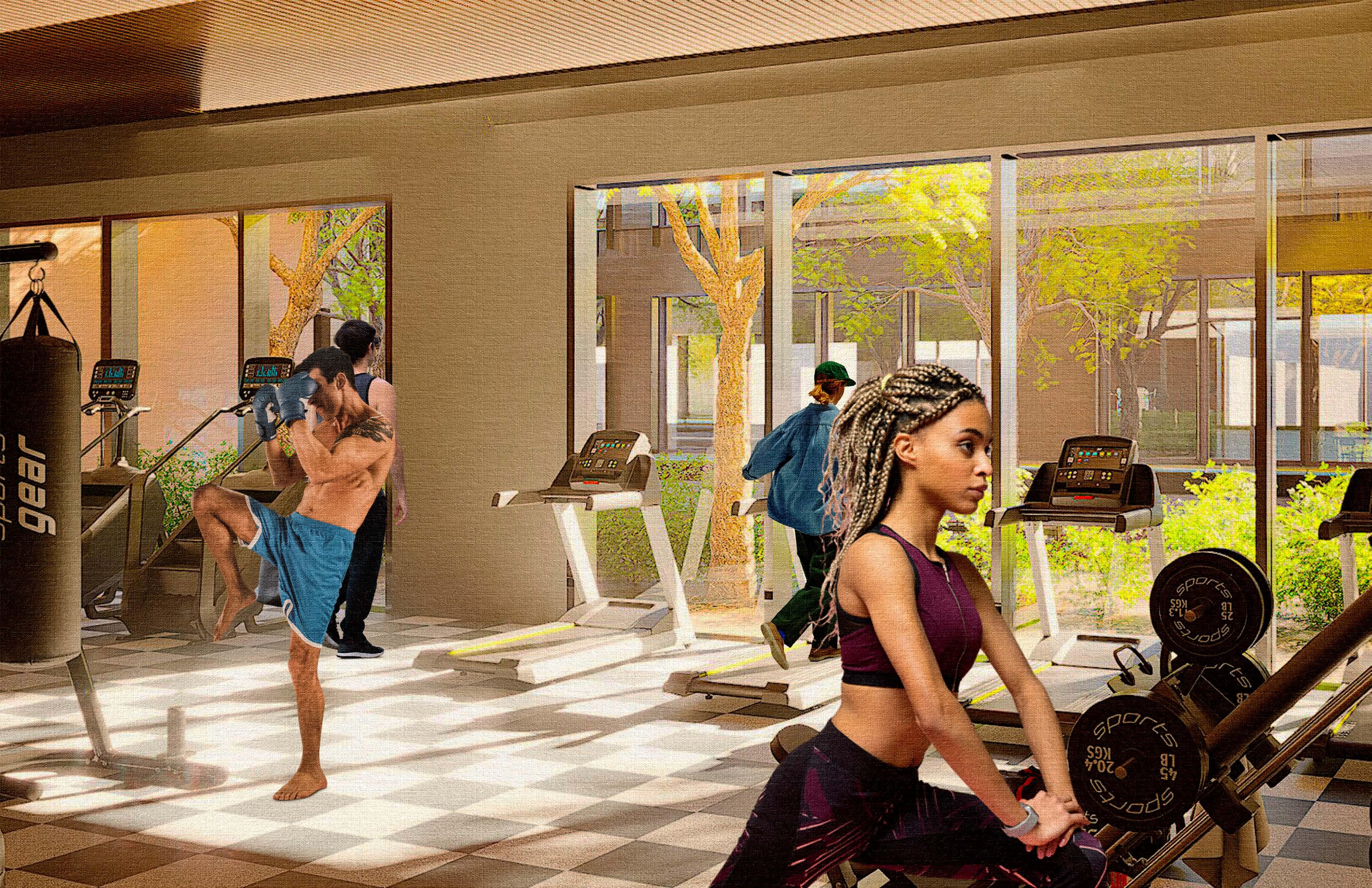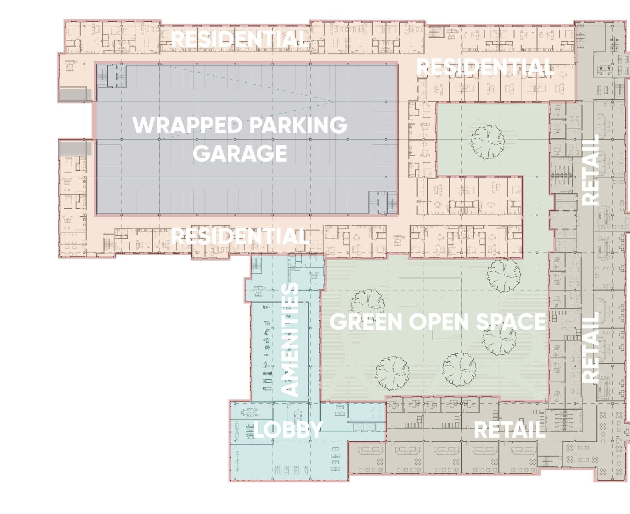 THIS PROJECT REIMAGINES THE WAY WE EXPERIENCE A CLINIC BY CREATING A VIBRANT, MIX-USED ENVIRONMENT THAT PROMOTES HEALTH, HAPPINESS , AND CONNECTION. LOCATED AT THE INTERSECTION OF BROADWAY AND MORLEY ST NEAR HOBBY AIRPORT, THIS BUILDINGS INTEGRATES A MODERN CLINIC WITH RESIDENTIAL AND RETAIL SPACES TO FOSTER A SENSE OF WELL BEING BEYOND MEDICAL CARE. BY DISSOLVING THE STIGMA OF TRADITIONAL HEALTHCARE VISITS, THIS PROJECT AIMS TO CREATE A WELCOMING DESTINATION WHERE PEOPLE ARE EXCITED TO ENGAGE WITH NATURE, EACH OTHER, AND HEALTHIER WAYS OF LIVING. THROUGH THOUGHTFULLY DESIGN PUBLIC SPACES, WELLNESS FOCUSED AMENITIES, AND SUSTAINABLE BUILDING, THE VISION IS TO CULTIVATE A RESILIENT, NET ZERO COMMUNITY BY 2050.