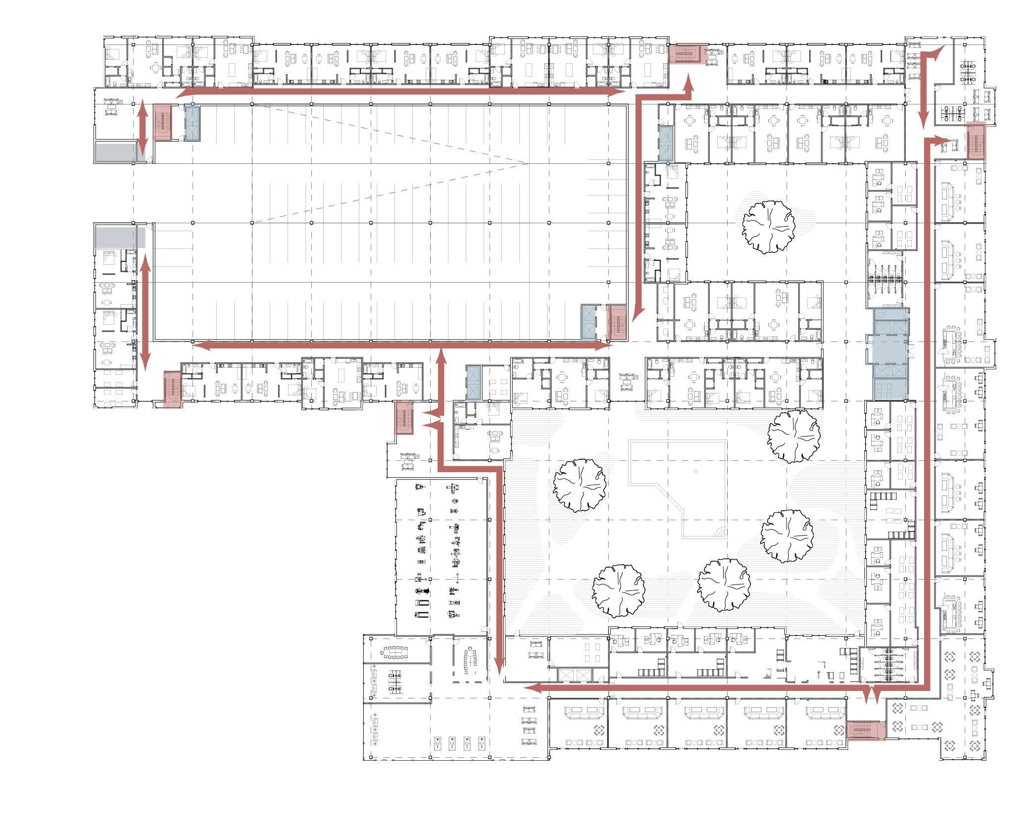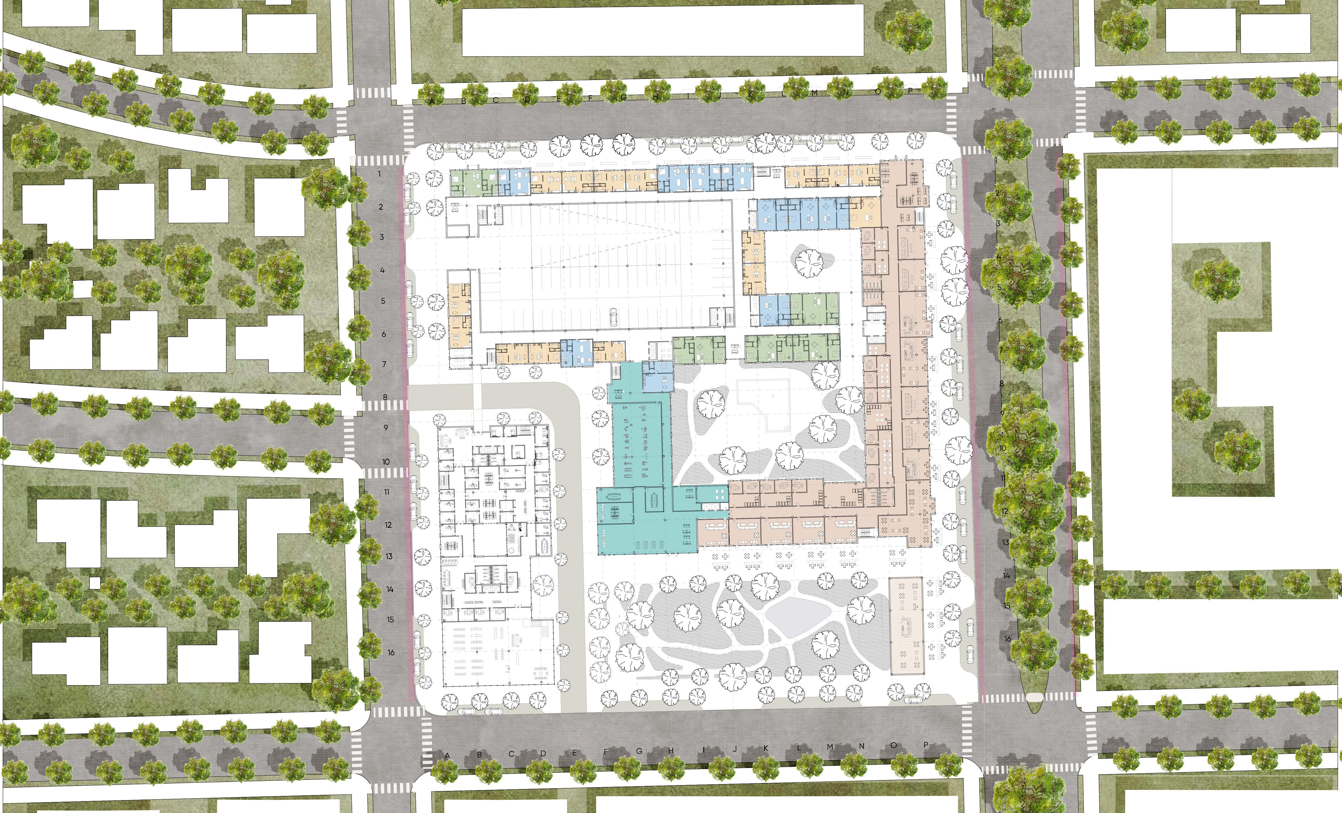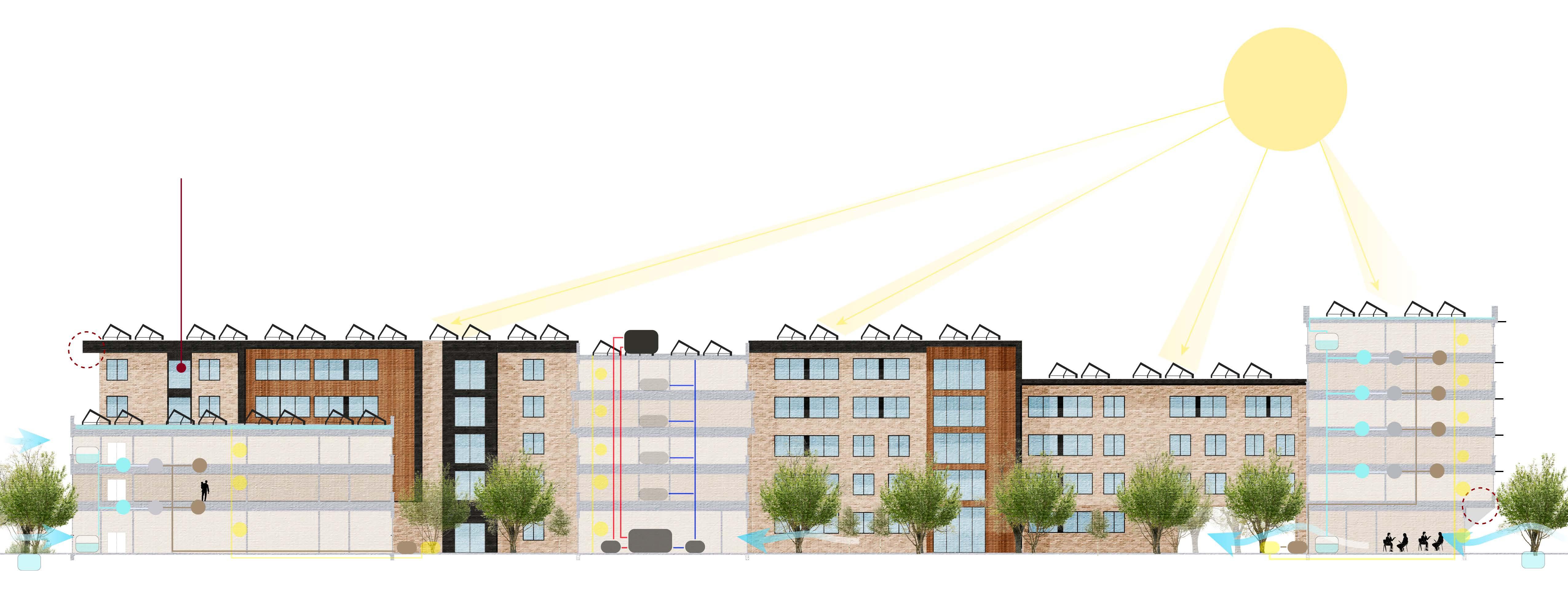 THIS PROJECT REIMAGINES THE WAY WE EXPERIENCE A CLINIC BY CREATING A VIBRANT, MIX-USED ENVIRONMENT THAT PROMOTES HEALTH, HAPPINESS , AND CONNECTION. LOCATED AT THE INTERSECTION OF BROADWAY AND MORLEY ST NEAR HOBBY AIRPORT, THIS BUILDINGS INTEGRATES A MODERN CLINIC WITH RESIDENTIAL AND RETAIL SPACES TO FOSTER A SENSE OF WELL BEING BEYOND MEDICAL CARE. BY DISSOLVING THE STIGMA OF TRADITIONAL HEALTHCARE VISITS, THIS PROJECT AIMS TO CREATE A WELCOMING DESTINATION WHERE PEOPLE ARE EXCITED TO ENGAGE WITH NATURE, EACH OTHER, AND HEALTHIER WAYS OF LIVING. THROUGH THOUGHTFULLY DESIGN PUBLIC SPACES, WELLNESS FOCUSED AMENITIES, AND SUSTAINABLE BUILDING, THE VISION IS TO CULTIVATE A RESILIENT, NET ZERO COMMUNITY BY 2050.
