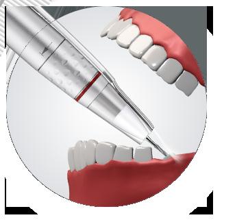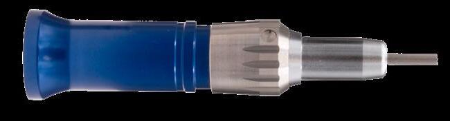 This contra-angle has an irrigation system which is internal to the instrument – a world first. So your grip is not impeded by the irrigation line. The jet of physiological liquid is projected onto the drill shaft itself,providing perfect cooling, particularly when using implant guides for insertions. The CA 20:1 has a miniature head and is the lightest on the market. In addition, its shafts and gears are machined in stainless steel with high resistance to saline solutions.