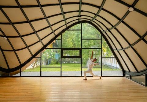 There is a sense of openness, with no clear demarcation of space or volume - every space seamlessly blending with each other and the gardens beyond. The warm glow of glare-free natural light creates a cheerful ambiance, and the sense of fun is accentuated by the use of color, with a natural breeze wafting through the various levels- all of this provides, in our opinion, an ideal platform for learning.