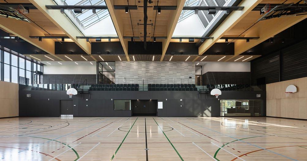 CONNECTED TO THE HIGH SCHOOL, THE NEW SPORTS COMPLEX EMPHASIZES WOOD AND LIGHT