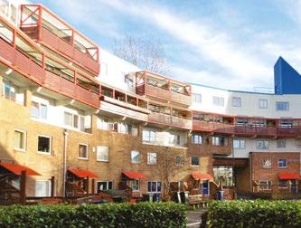 for a new building with significantly expanded facilities. The sensitive integration of the new building into the urban planning situation was a key factor in the success of the competition by Danish office 3XN. The architects designed a building that presents itself as a clearly structured, compact volume on the new neighbourhood square, while its undulating floor plan at the rear of the building enables flowing transitions to the green space around the bathing lake.
