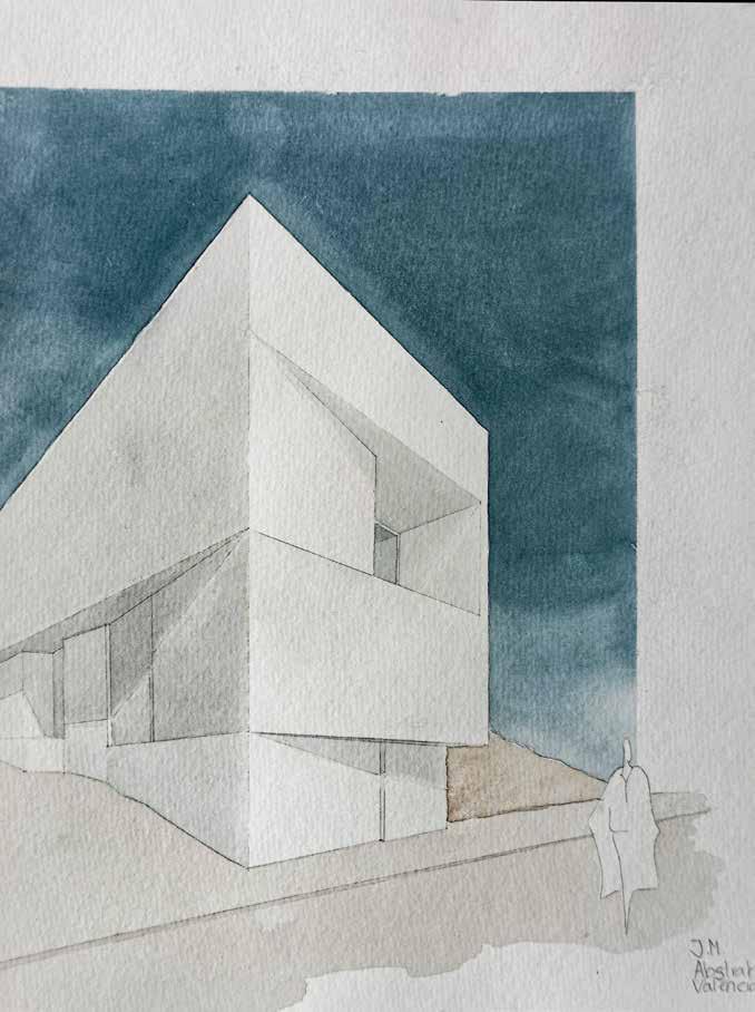 In einer Reihe von Professorenhäusern gibt es eines, das für zwei Professoren gedacht ist, die eng befreundet sind. Schon die Fassade zeigt eine klare Trennung im Baukörper, die zwei Nutzungseinheiten deutlich voneinander abgrenzt. Diese Trennung ist auch funktional wichtig. Es gibt Ebenen, die Transparenz und Kommunikation zwischen den beiden Professoren ermöglichen, sodass Leben und Arbeit offen und verbunden sind. Gleichzeitig gibt es auch die Möglichkeit, sich zurückzuziehen und Privatsphäre zu genießen.
