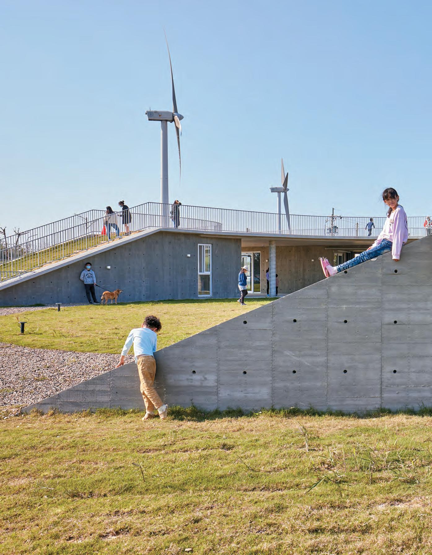 王:這個案子成功的地方就在於,屋頂是活動的;而屋頂下的使 用空間是靜態的。因為地面層看起來開闊、自然,但它的兩側其 實都被四米以上的高牆圍著,空間是被悶住的;而來到屋頂新的 平面時,才真正到了一個活潑的地方,兒童到屋頂上活動或停留, 也會使這個環境的關係尺度變得敏感。