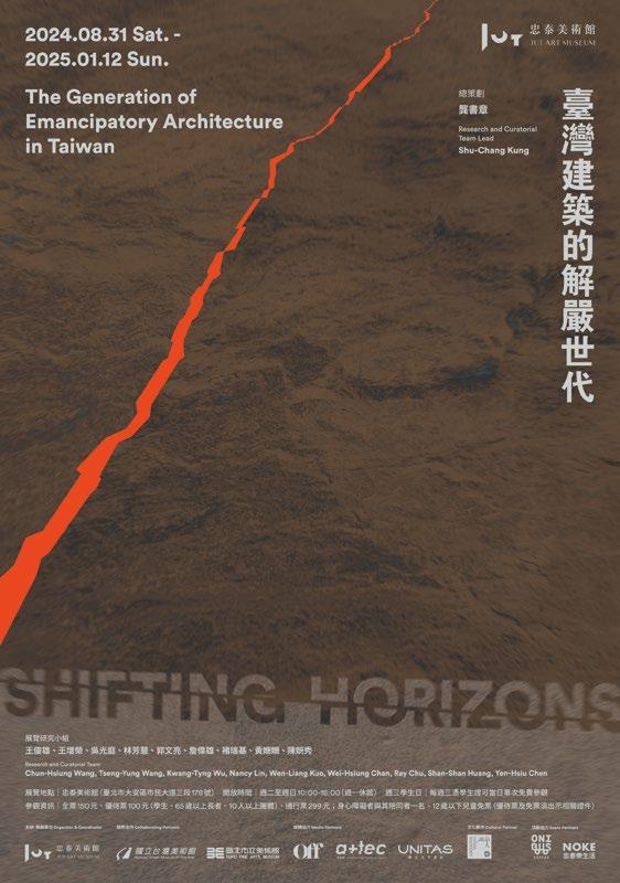 由忠泰美術館於2022年自主發起,籌 備兩年多的《臺灣建築的解嚴世代》 則將焦點從國際建築思潮轉回到臺灣 自身的建築歷史發展,透過持續性的 座談與研究行動,盤點與梳理臺灣建 築是如何受到解嚴影響而走到當代。