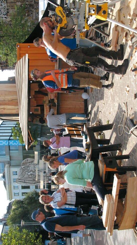 Exhibition Unit),用一輛普通車與掛 式小拖車就能運載的展覽,選用街邊 的一角、一個停車的位置來策展。他 們選用的主題是城市裡的綠洲,在日 復一日的路線因為突發的擺置,居民、 路人會開始留意都市環境,也可以參 與其中,共同搭建木造藝術,創造鄰 居搭訕的空間。曇花一現式的城市行