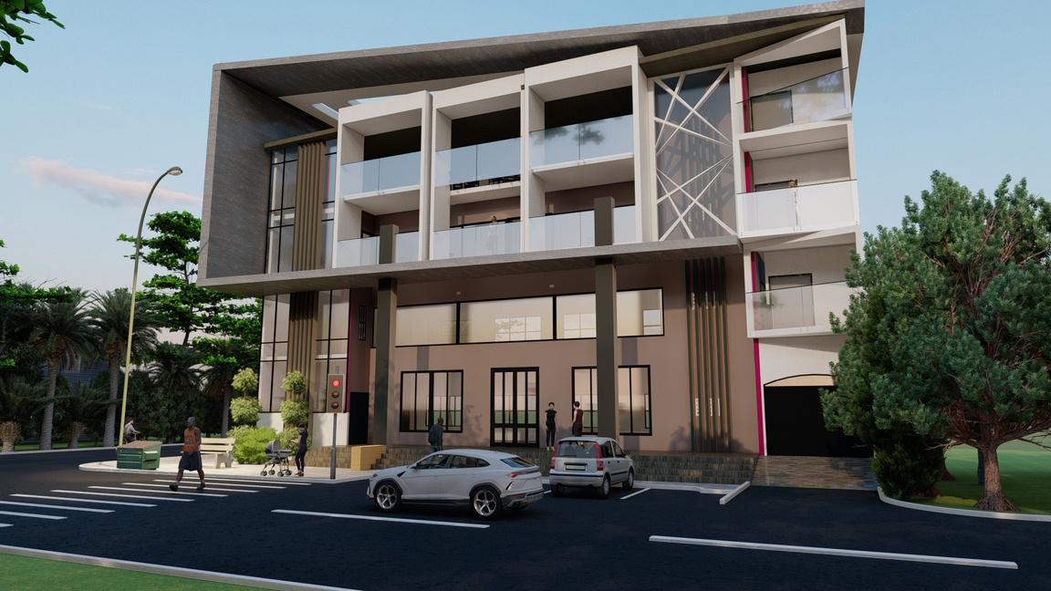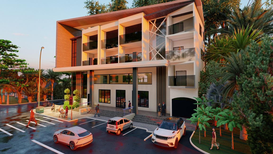La façade principale est conçue avec des baies vitrées pour établir des liens visuels avec l'environnement, offrant à la fois légèreté et complexité grâce à l'alternance de lignes droites et d'éléments ovales distinctifs pour briser la régularité. Des ouvertures plus larges et abondantes permettent des vues spectaculaires, favorisant la lumière naturelle et l ensoleillement. L'ensemble du projet est marqué par un rythme représenté par des éléments solides.
