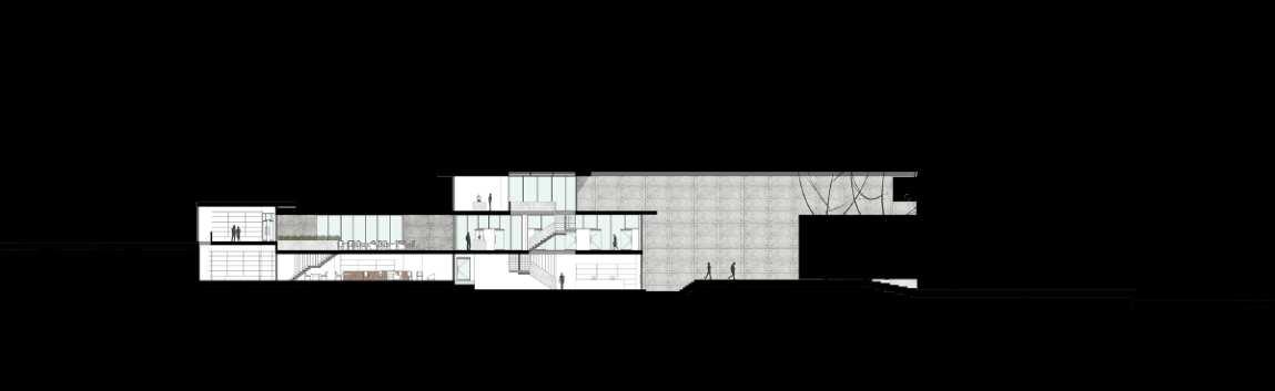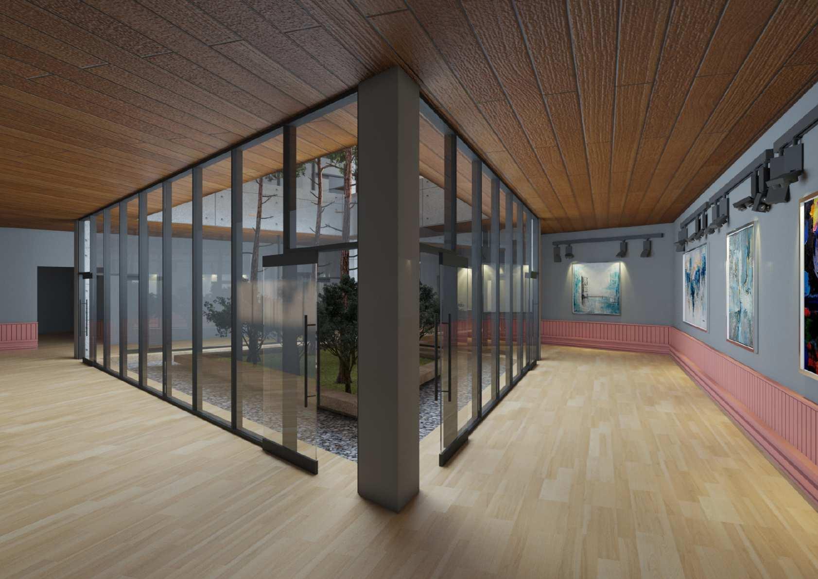 As stated before, the project is divided into two blocks. The entire southern block is dedicated to gallery area, as displaying art is the main purpose of the project. Also the main entrance leads to this block. The northern block consists of a courtyard - which also works as a performance area - with other functions such as the cafe and workshops surrounding it. This makes it possible for the visitors to have a view of the performance area from the other areas of the northern block, which helps integrate the art into every activity.