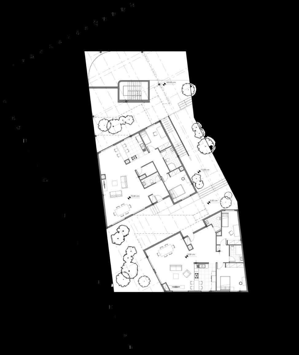 The outline of each apartment is shaped according to the site boundries. The way the blocks are now positioned creates balconies that add to the outdoor area.