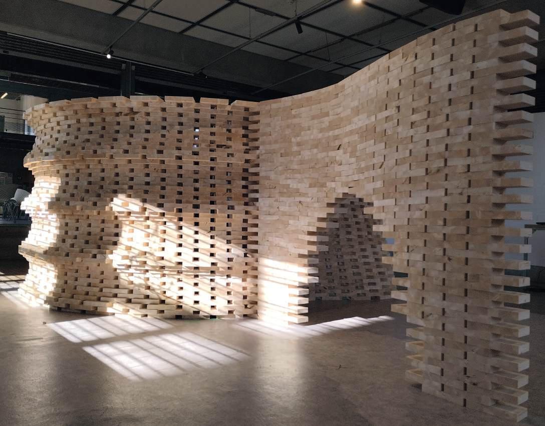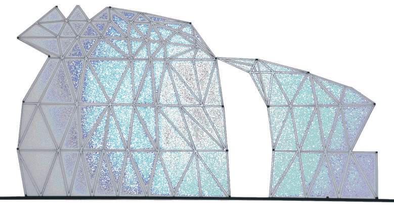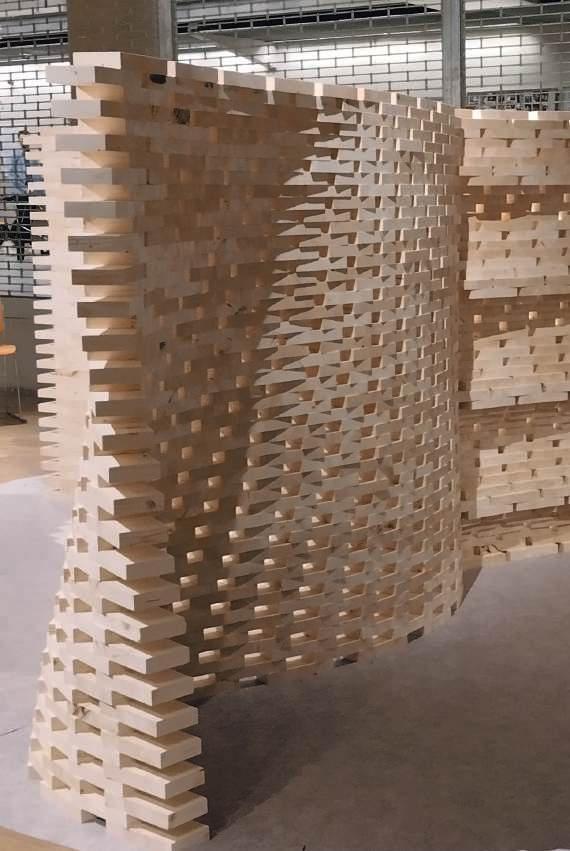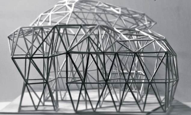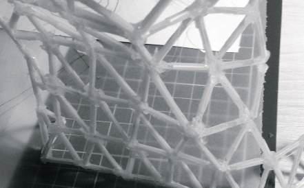 Ce projet qui s’est effectué sur deux semaines est un intensif qui a pour objectif de se questionner sur la charpente bois. À travers la référence des dômes géodésiques, le projet a rapidement évolué sur la création d’espaces uniques où la forme organique et courbe de la structure est en réalité composée seulement de section en bois droit. Ainsi structure et parois sont intimement liées ; il est possible de créer des espaces intérieurs, intérieurs- extérieurs et extérieurs dans une même unité. Les noeuds et les assemblages sont aussi uniques et irréguliers.