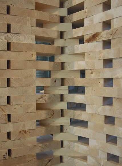 L’ascension physique du bâtiment est en écho avec l’ascension intellectuelle menant vers la connaissance. C’est pourquoi la bibliothèque s’élève vers le ciel. On retrouve cette verticalité avec la forêt qui se trouve être en arrière plan non loin du bâtiment. Tel un donjon, on vient percer la bibliothèque par des fentes de longueurs différentes et qui permettront de se rendre compte de la profondeur des murs.