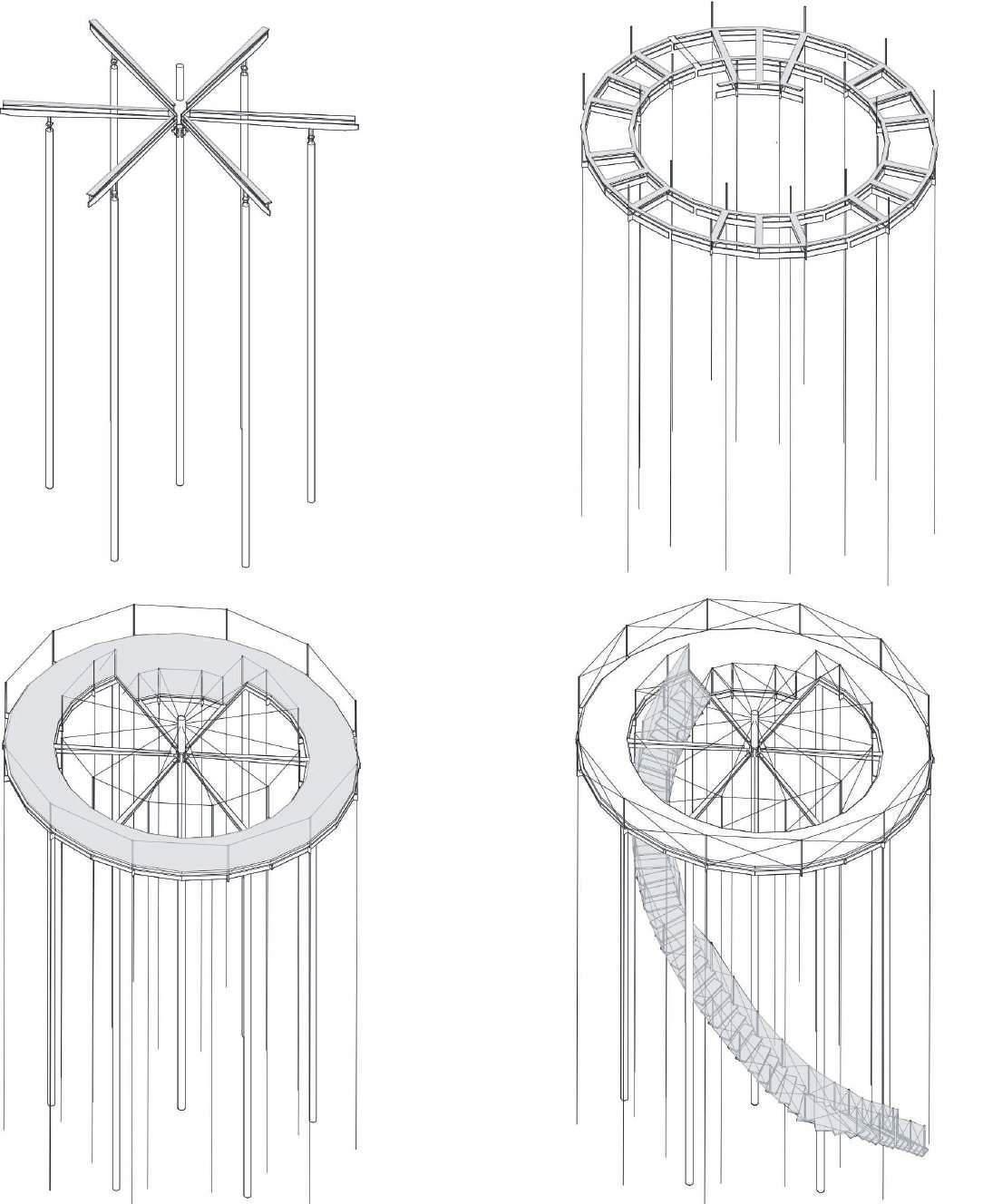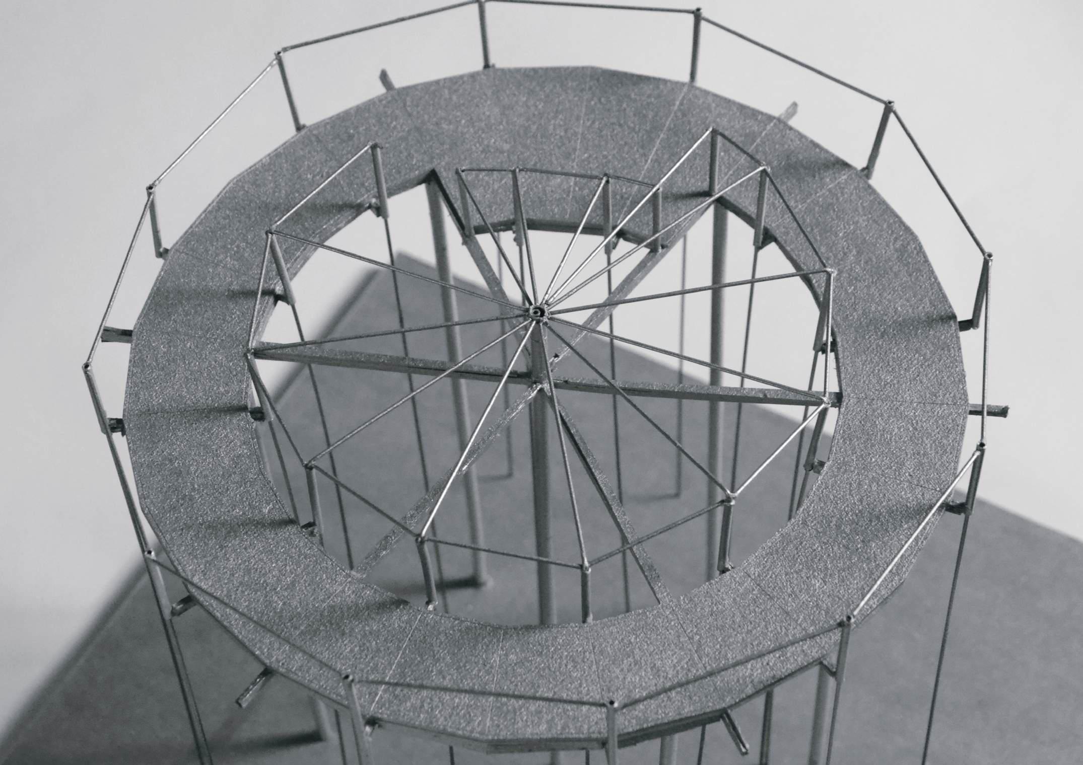 Le pavillon exprime cette verticalité dans la finesse de ces éléments constructifs afin de s’ajouter à ce tableau urbain et non pas de s’imposer. Il permet de prendre de la hauteur avec une plateforme à 10 mètres qui permet d’observer et d’élargir la perception de l’urbain environnant.