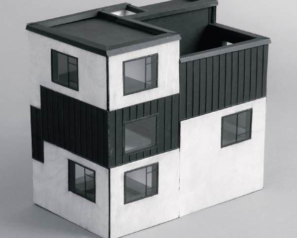 Cet exercice consiste à la reconstitution et reproduction d’une architecture existante. La maison de Kazuo Shinohara est construite dans les années 60 et il existe très peu de documents techniques qui permettent de reconstituer la maquette de la maison. La Umbrella House est connue pour sa charpente bois impressionnante. C’est aussi la plus petite maison jamais réalisée par l’architecte. En réussissant à trouver la maison sur Google map, il a pu être possible d’observer et de découvrir de nouveaux détails sur la façade principale et quelques vues, moins bonnes, des façades latérales.