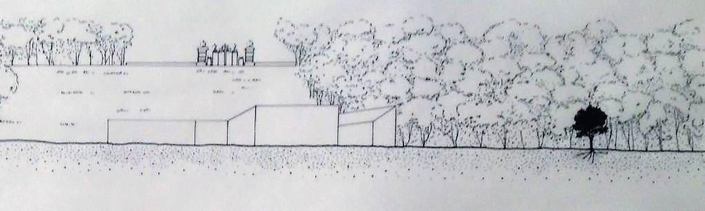 La piscine s’intègre donc dans le territoire selon les éléments caractéristiques du parc : elle est au coeur du parc, entre bois et eau. Elle s’insère dans la topographie qui mène plus haut à l’entrée du parc, et qui s’étend plus bas jusqu’à la Marne.