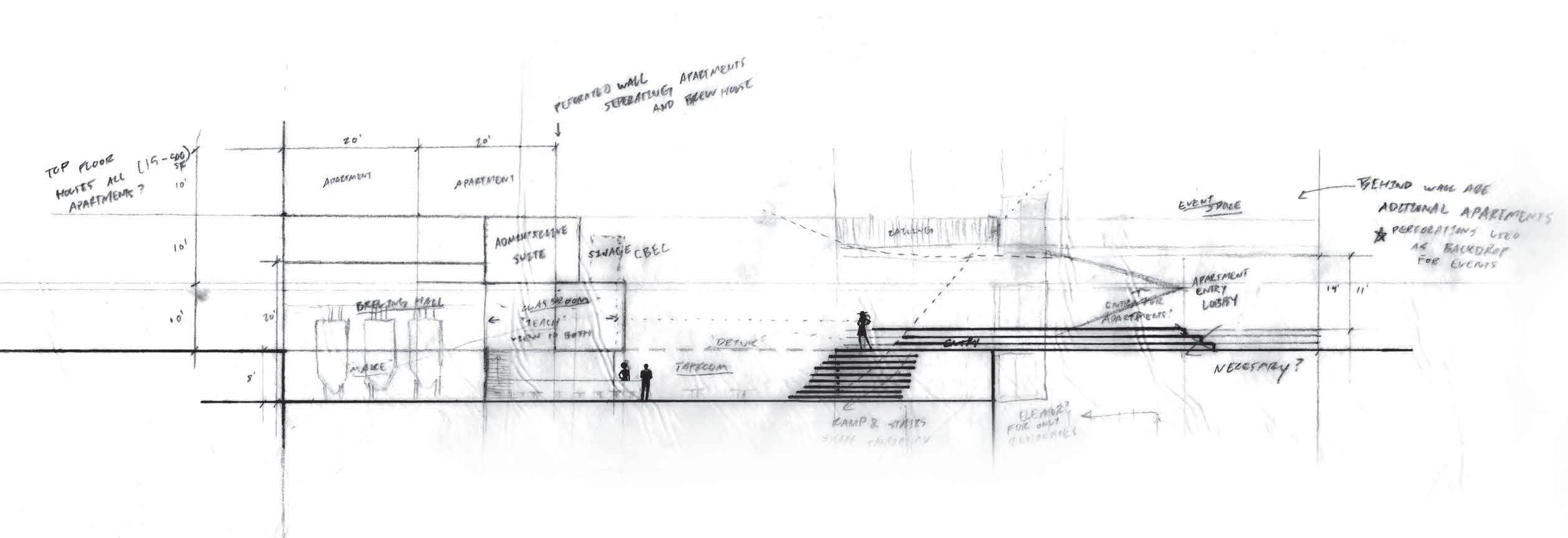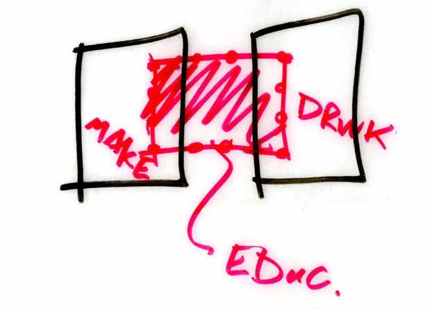 Goal is to create a visual and directional dialog between production space and consumption space through educational space - a space not associated with drinking alcohol.