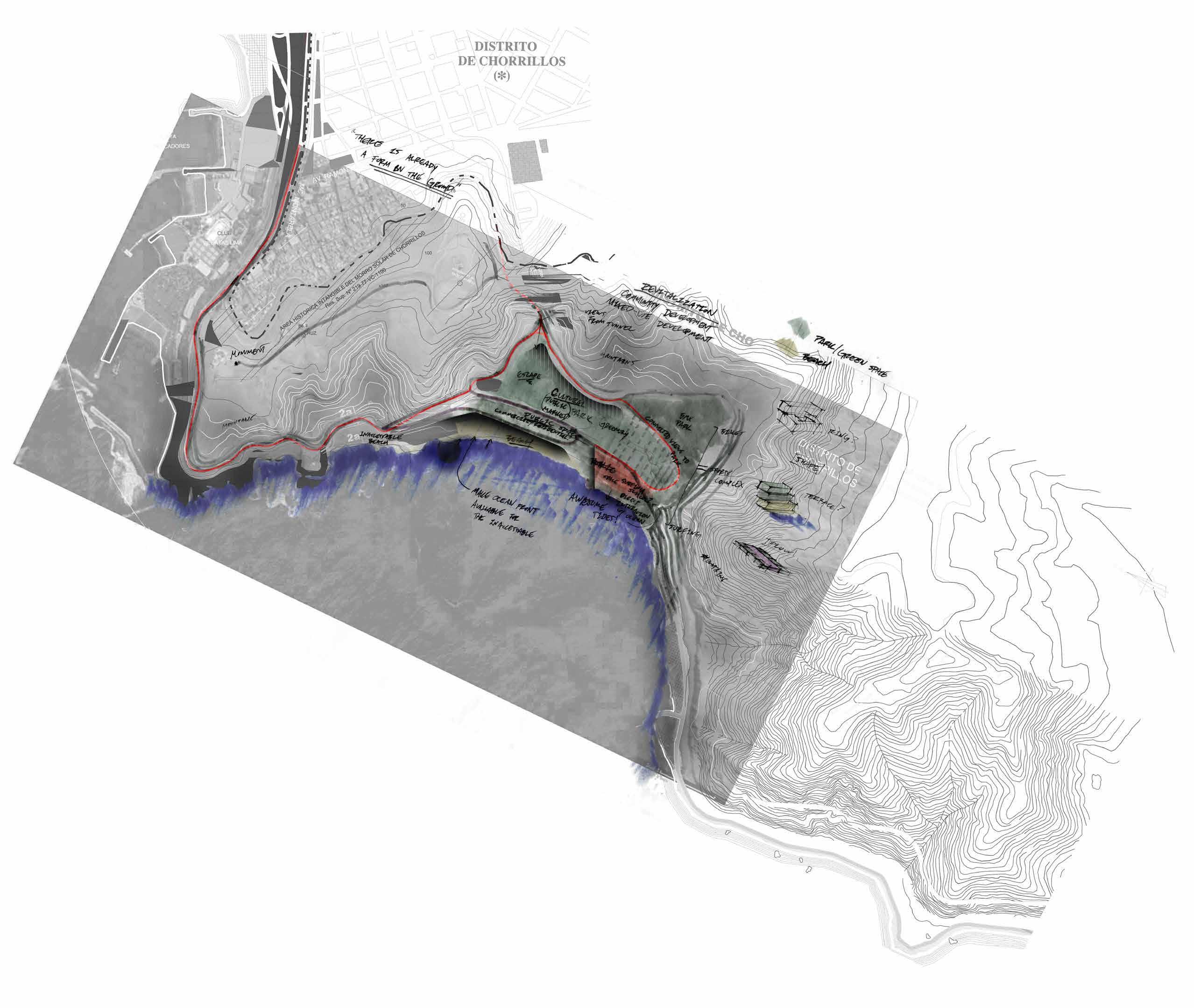 Initial development focused on entry, functionality and visual connections of program studied in elevation.
