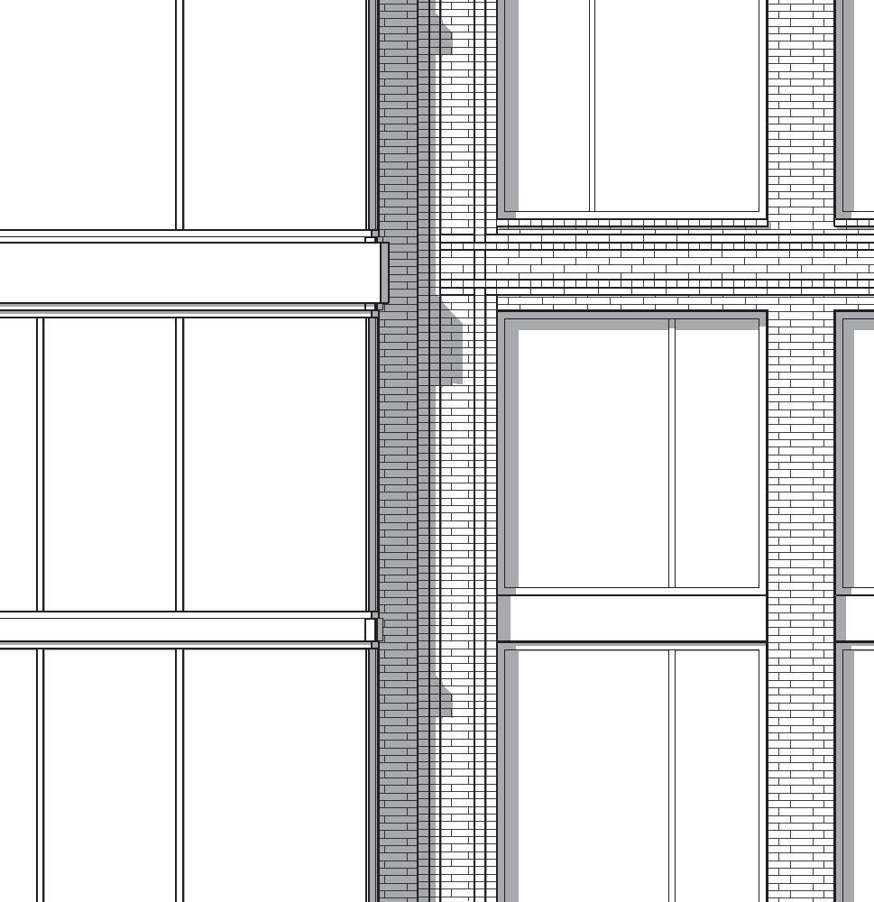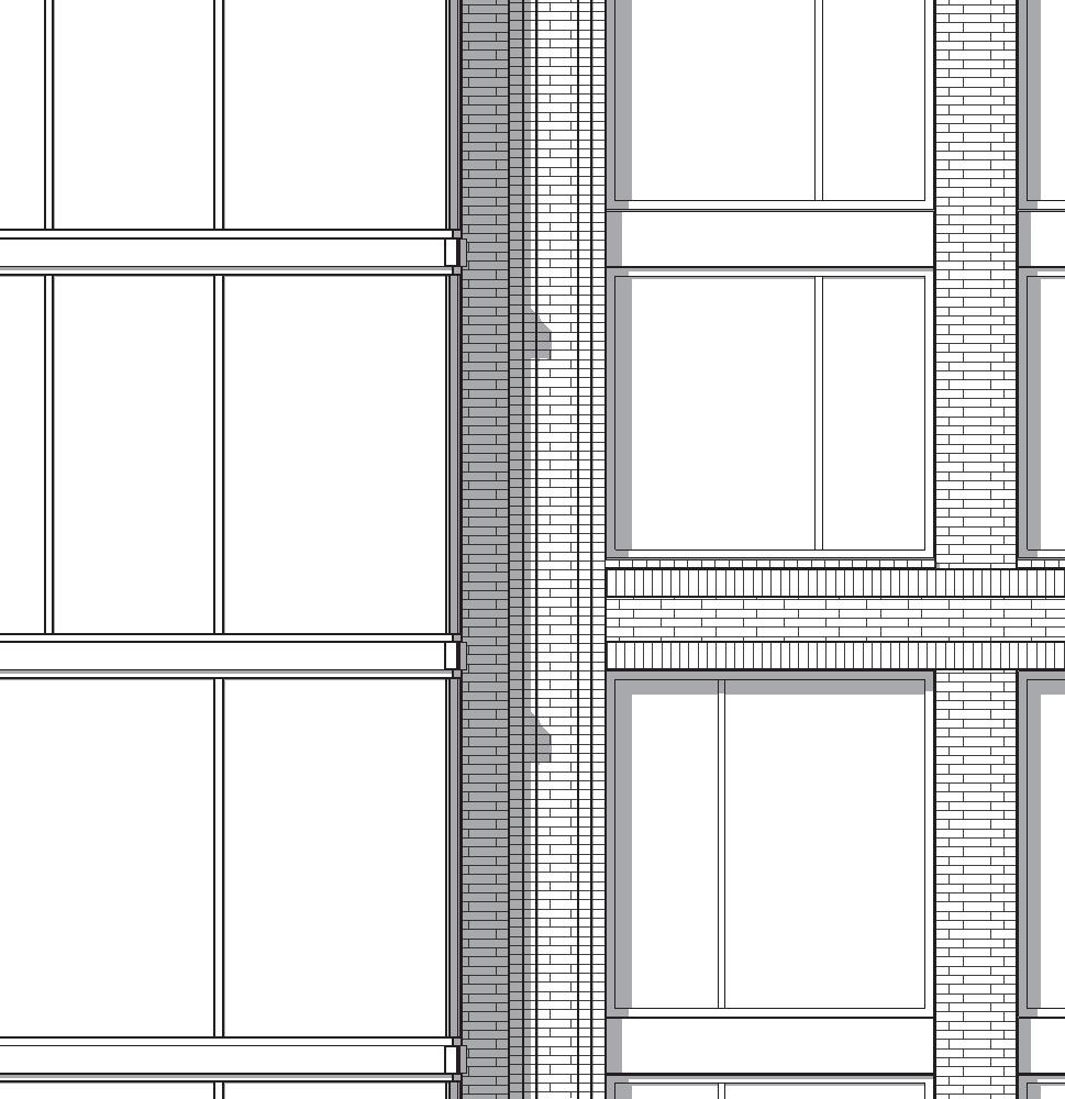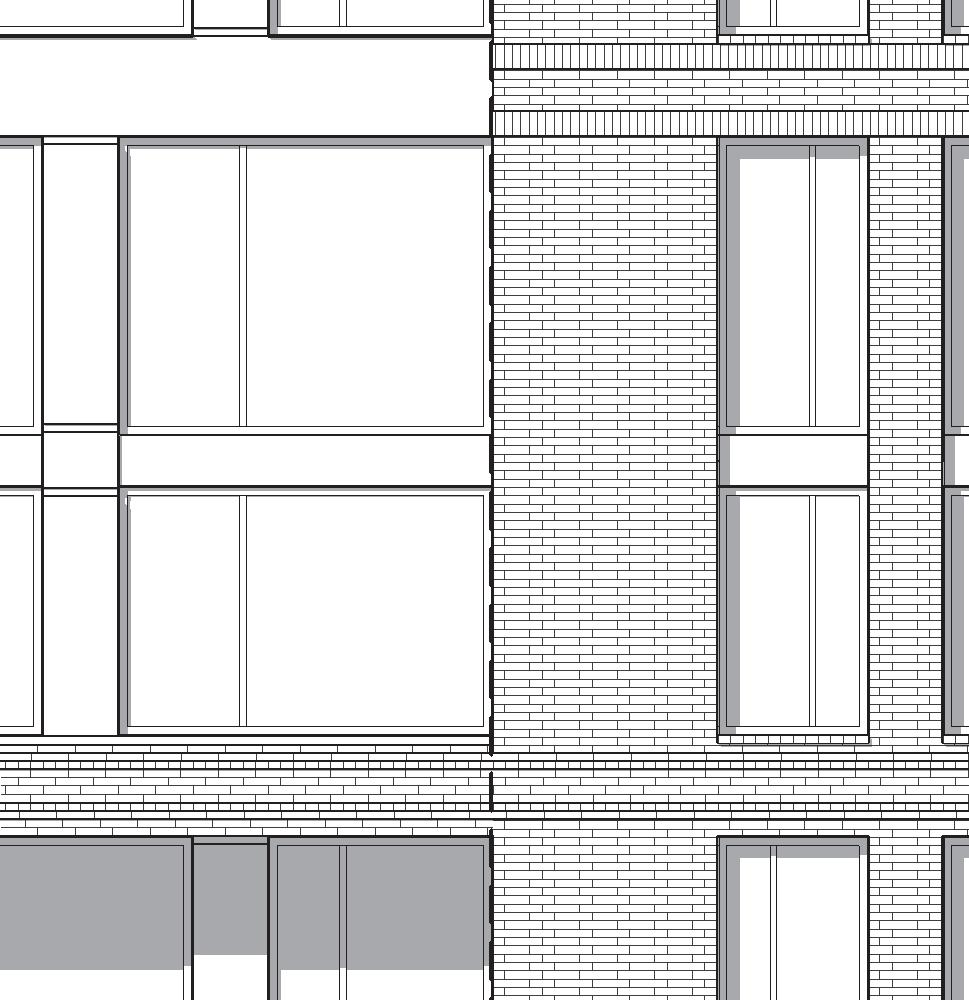 • Incorporate horizontal expression to contrast with massing and articulation of adjacent buildings
