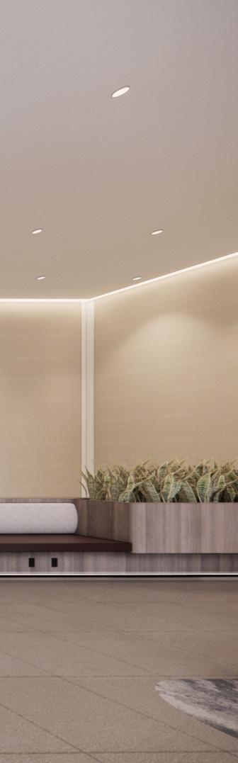 During my time with OTJ, I contributed to the redesign of the interior lobby for the 950 Building at L’Enfant Plaza, a renovation project encompassing approximately 10,000 square feet. The scope included upgrades to the front entry façade, main lobby, elevator lobby, corridors, and restrooms. The design vision pays homage to the building’s original Brutalist architecture, incorporating a neutral and sophisticated color palette for a refined, contemporary refresh. A key design strategy involved retaining the original brass finishes on the elevators and escalators, offering a costeffective solution that also enriched the new material palette. The brass elements were thoughtfully integrated to complement the updated aesthetic, aligning with the overall design intent.