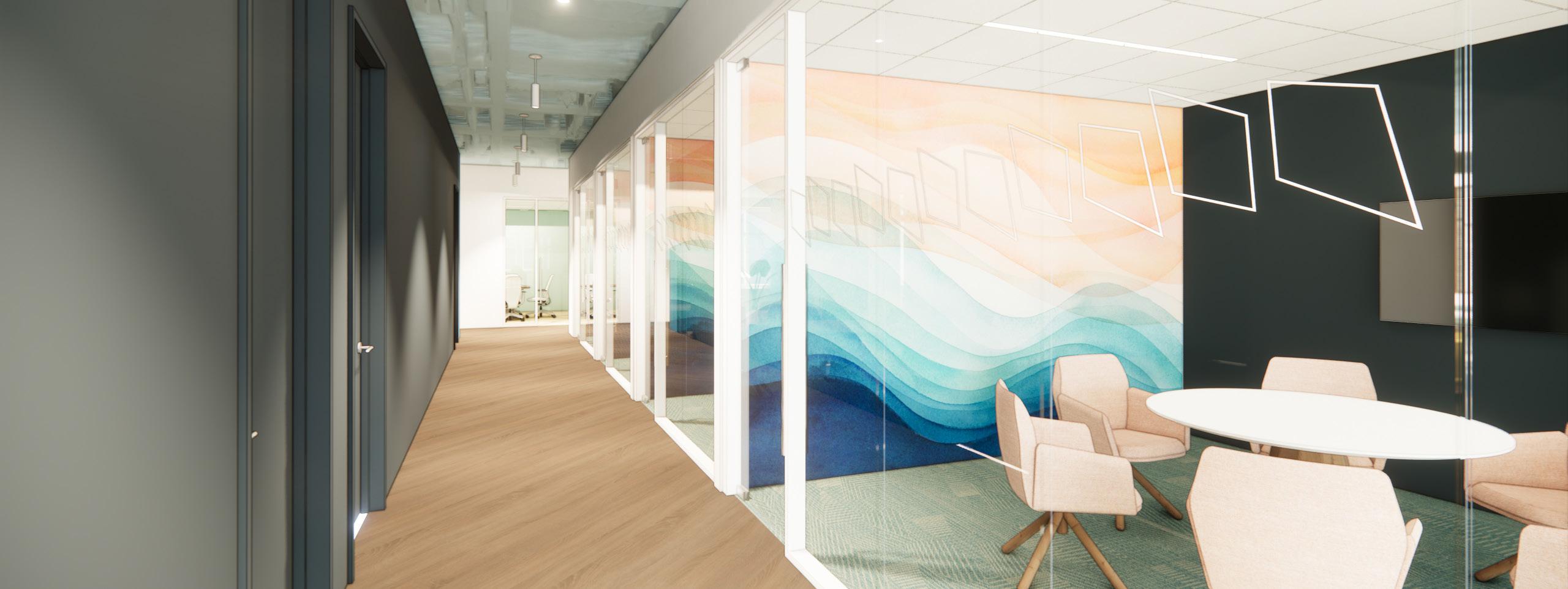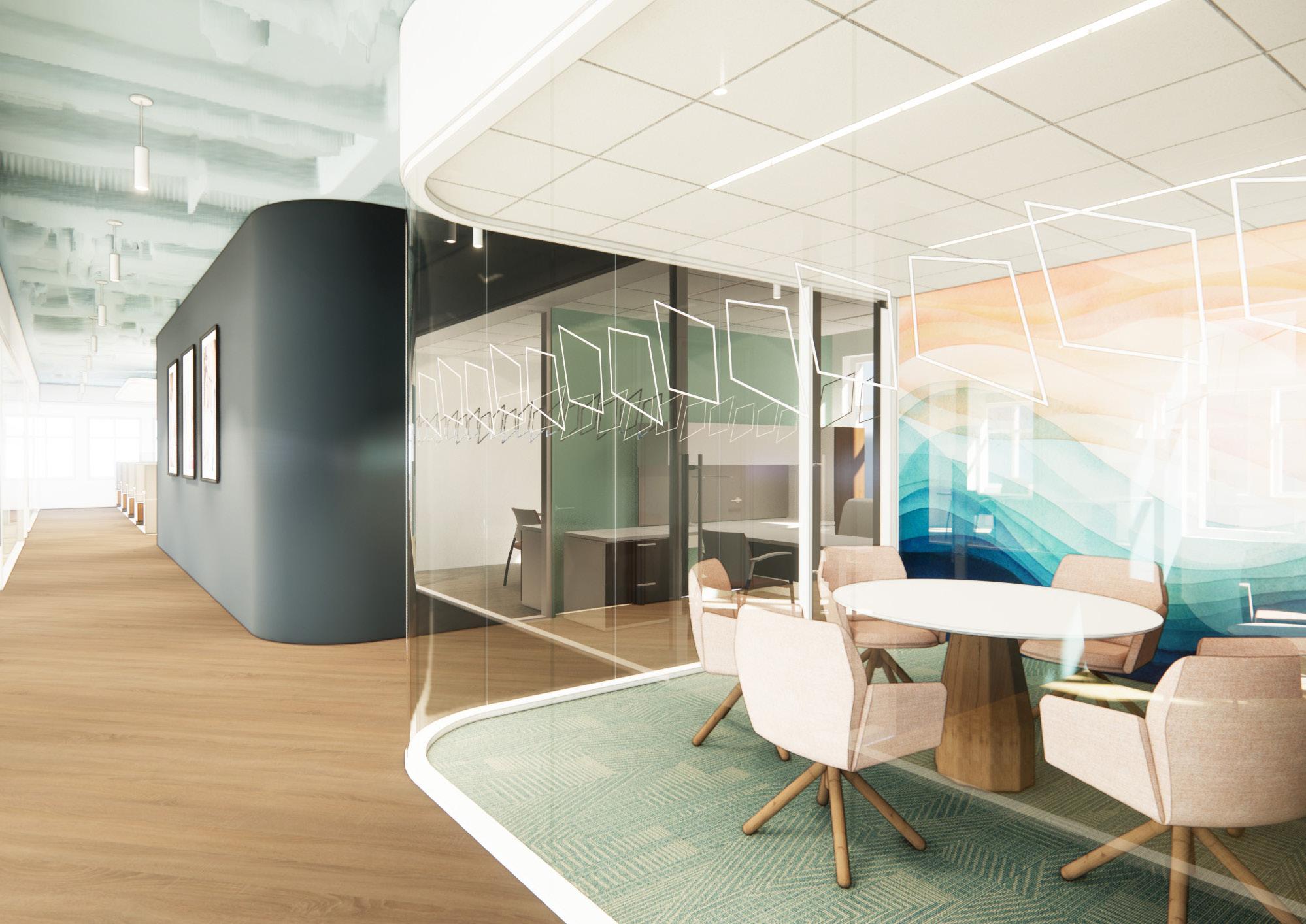 During my time with OTJ, I contributed to the interior renovation of the Children’s Hospital Association (CHA) office, a 9,800 SF workplace located just two blocks from the White House. The design concept embraces a playful and uplifting atmosphere, incorporating bright colors, flying birds, and kites to evoke a sense of movement throughout the space.