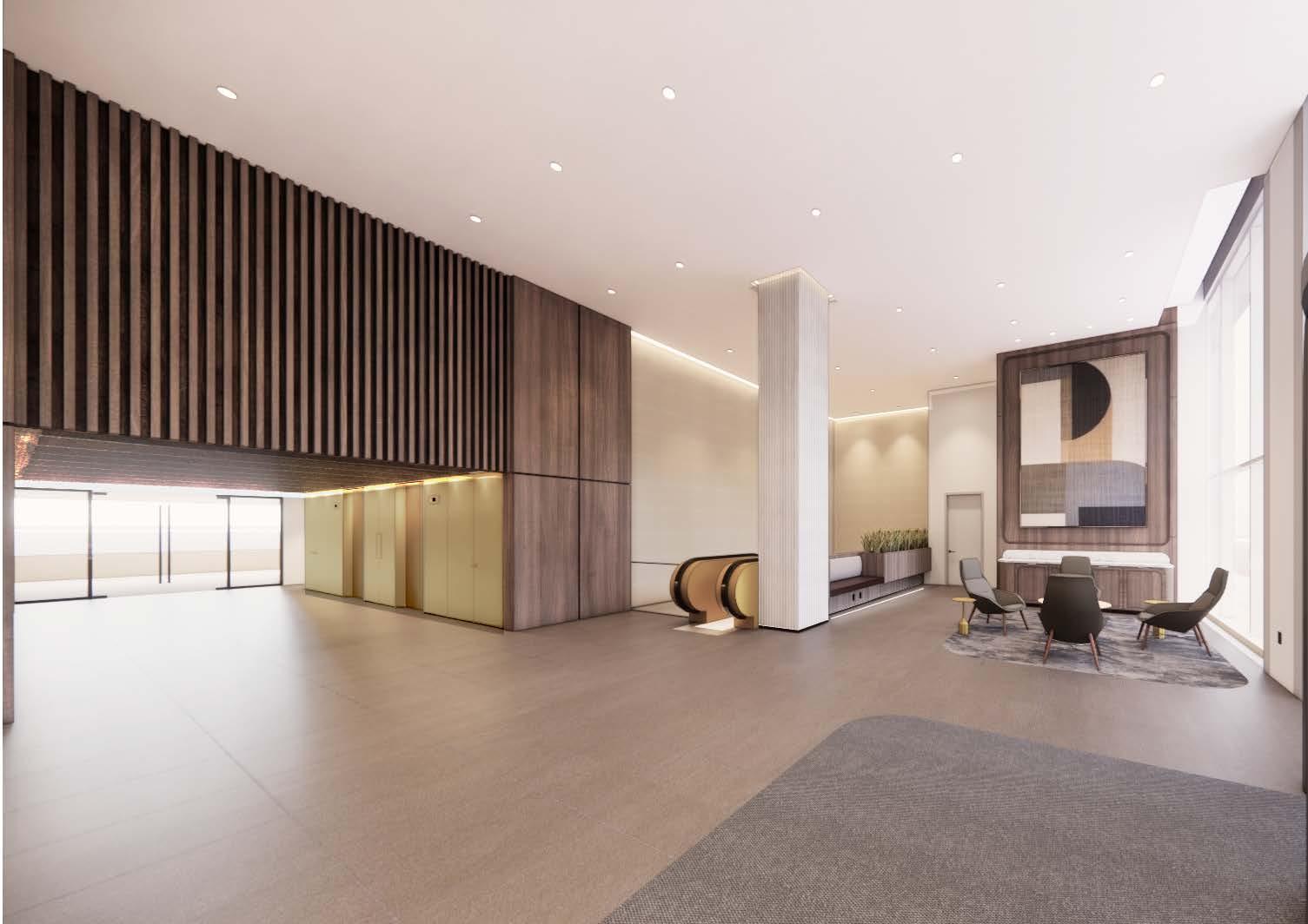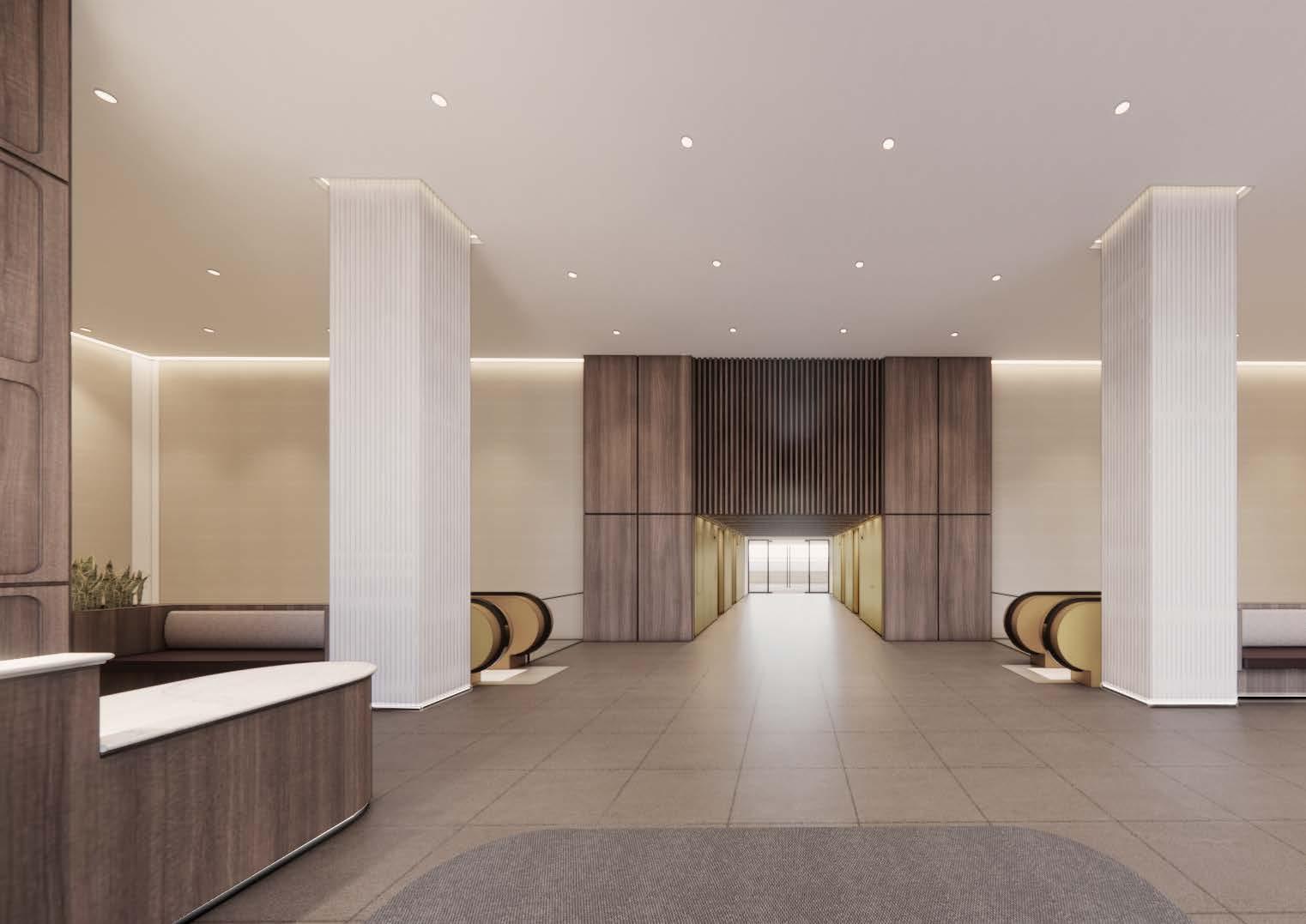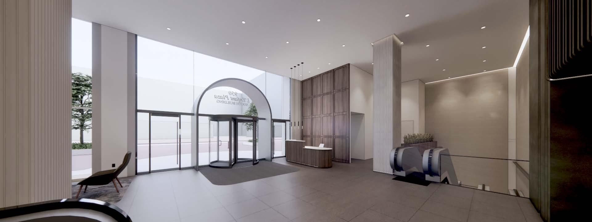 During my time with OTJ, I contributed to the redesign of the interior lobby for the 950 Building at L’Enfant Plaza, a renovation project encompassing approximately 10,000 square feet. The scope included upgrades to the front entry façade, main lobby, elevator lobby, corridors, and restrooms. The design vision pays homage to the building’s original Brutalist architecture, incorporating a neutral and sophisticated color palette for a refined, contemporary refresh. A key design strategy involved retaining the original brass finishes on the elevators and escalators, offering a costeffective solution that also enriched the new material palette. The brass elements were thoughtfully integrated to complement the updated aesthetic, aligning with the overall design intent.
