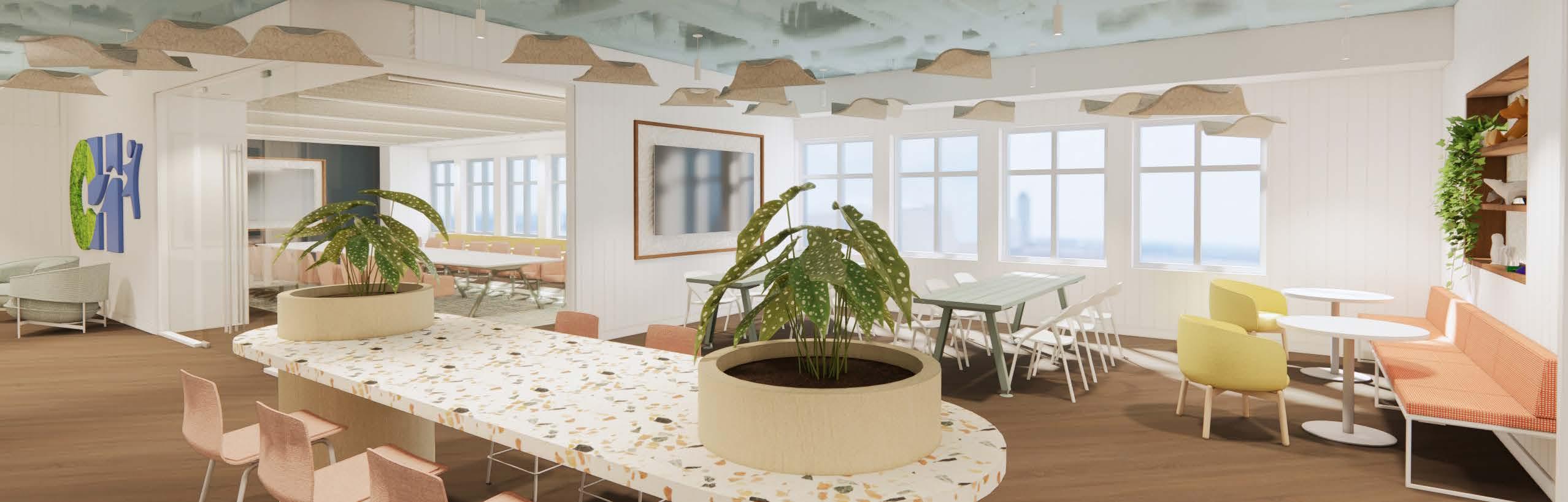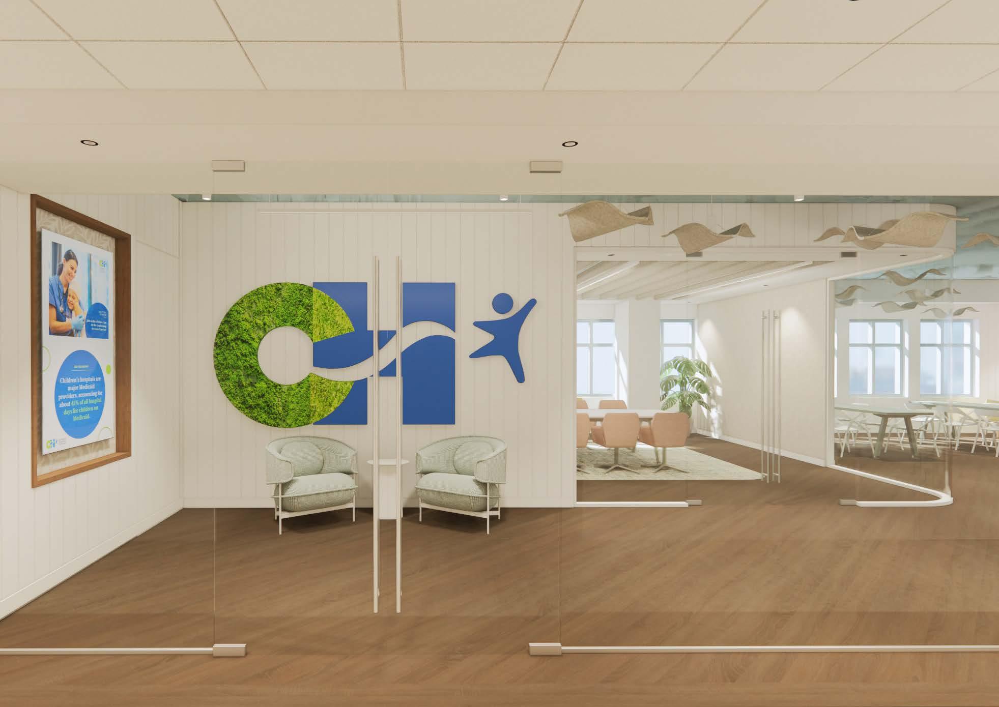 During my time with OTJ, I contributed to the interior renovation of the Children’s Hospital Association (CHA) office, a 9,800 SF workplace located just two blocks from the White House. The design concept embraces a playful and uplifting atmosphere, incorporating bright colors, flying birds, and kites to evoke a sense of movement throughout the space.