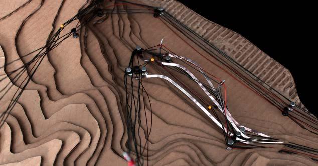 The topography of the site was indeed considered in the form making process, but not by framing specific views, rather suggesting movement through space. Topography lines towards the beachfront naturally descend towards the ocean and wrap around the edge of the mountains. This was an opportunity to work with the topography lines and continue movement of the coastline up and through the southern mountains; something that is currently avoided due to traffic being reversed up and towards the western mountains. Considering both the visual forces and the geometry of the topography, a form naturally presented itself that responded to both these elements. Because entry to the site is enforced by car, the form responded to both pedestrian and vehicle movement, while the endpoints of the form framed a view-port directly toward the specific landmarks of the site. This seemingly abstract illustration of this contextual study directed the form making of the building.