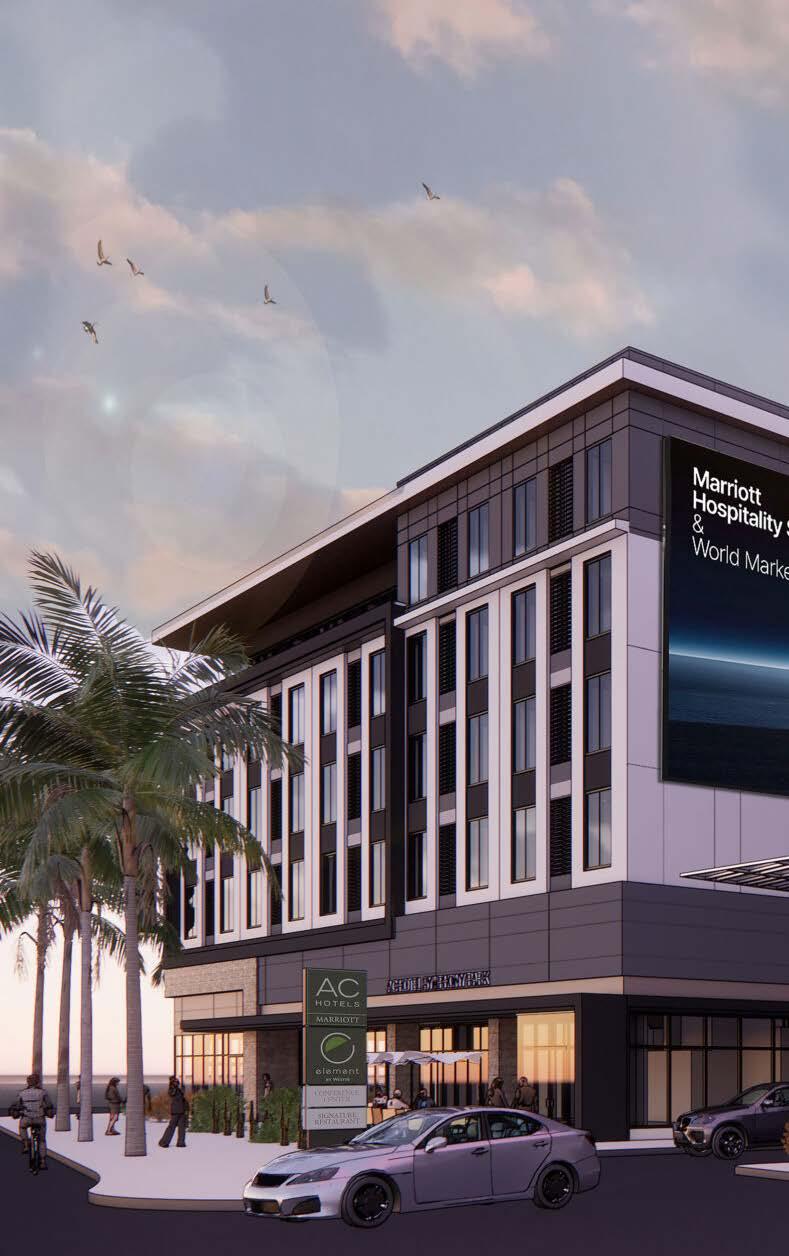 “A unique dual-branded hotel, part of the overall USAA campus and Norterra master-planned community in north Phoenix. The approximately 160,000-square-foot building will feature a 179-key AC by Marriott and a 95-key Element by Westin. The building features an oasis inspired central pool, a pickleball court and a variety of generous meeting spaces with an event lawn overlook.”