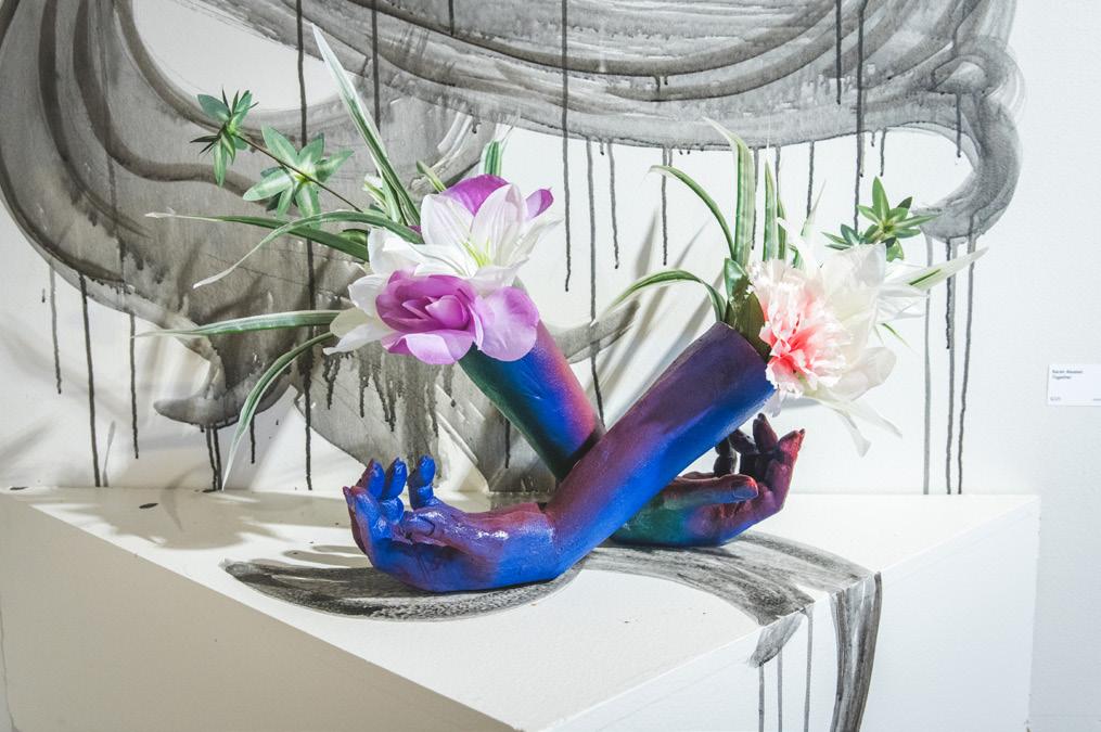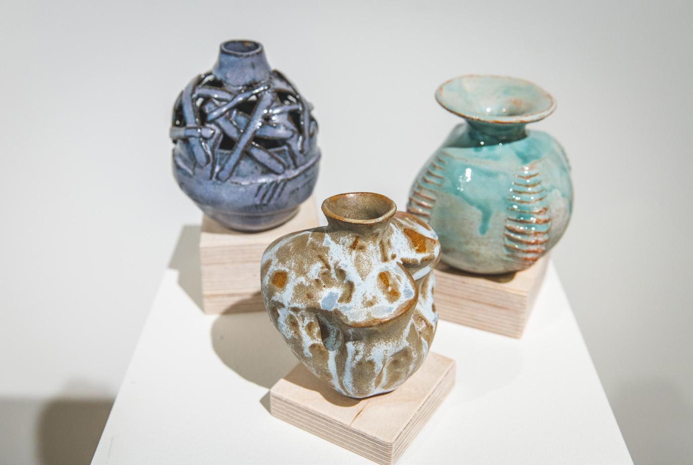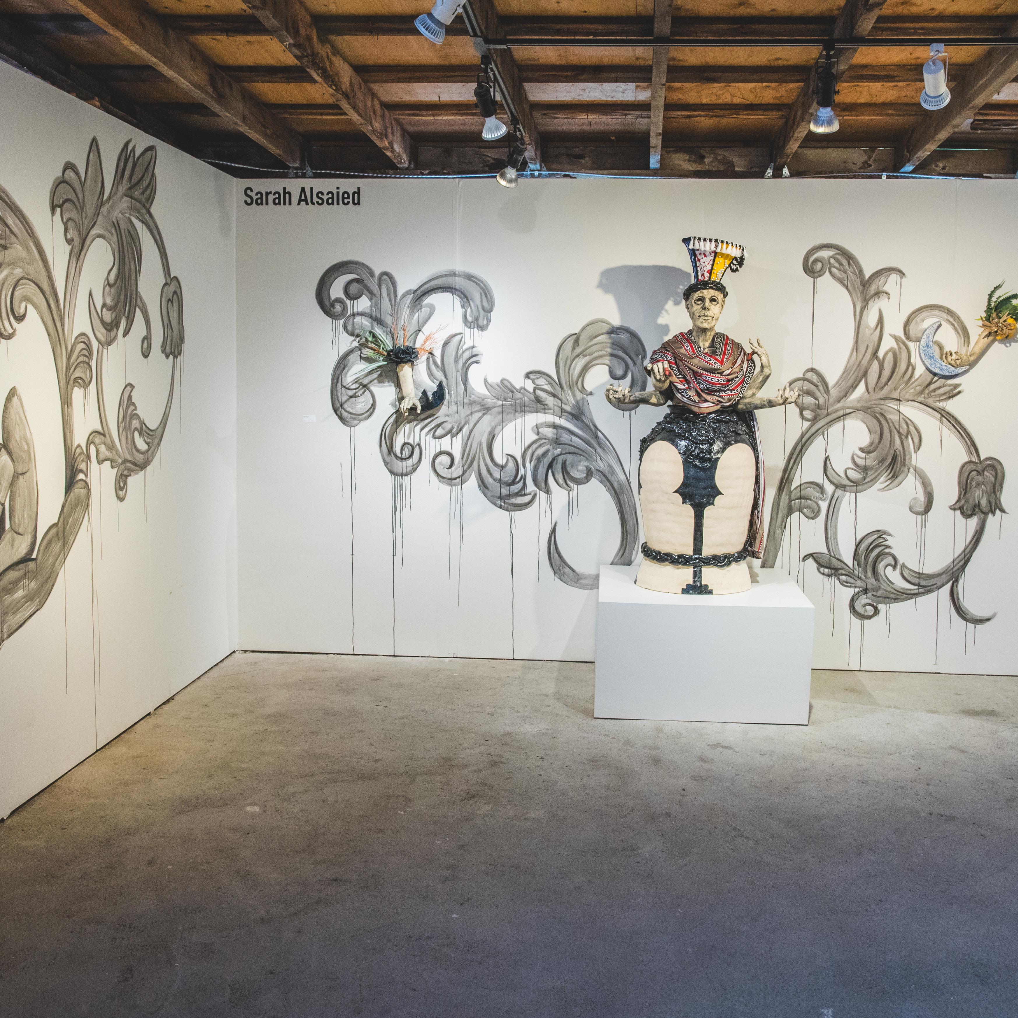 As a bicultural artist, Sarah Alsaied makes work that straddles Eastern and Western cultures, and the complex issues of identity and the collapse of social, cultural, racial, and gendered borders. Through the use of clay, fiber, and installation art, she expresses aspects of herself and challenges stereotypes of Arab women. Through the combination of malleable and permanent qualities of the materials, Sarah explores and expresses the complexities of identity.