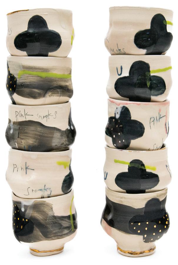 Cups, the most accessible and intimate vessel; we hold them in our hands, bring them to our lips, pass them communally, offer them to friends. A wellmade cup fosters a meditation of routine moments. A wall of cups can tell stories of where you’ve been and who you’ve toasted worldwide.