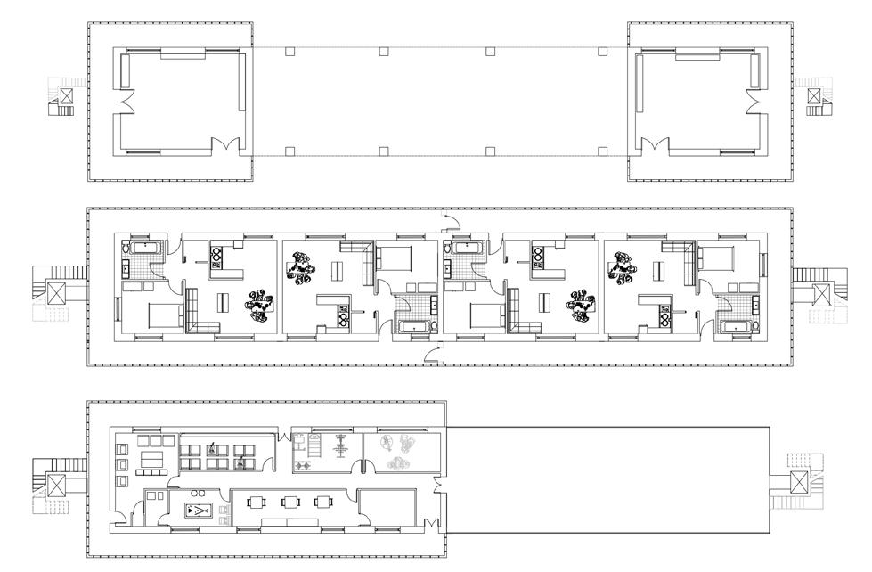 Figure 11- Ground, Main and Final Floor plans of 1 Bedroom Apartment Building