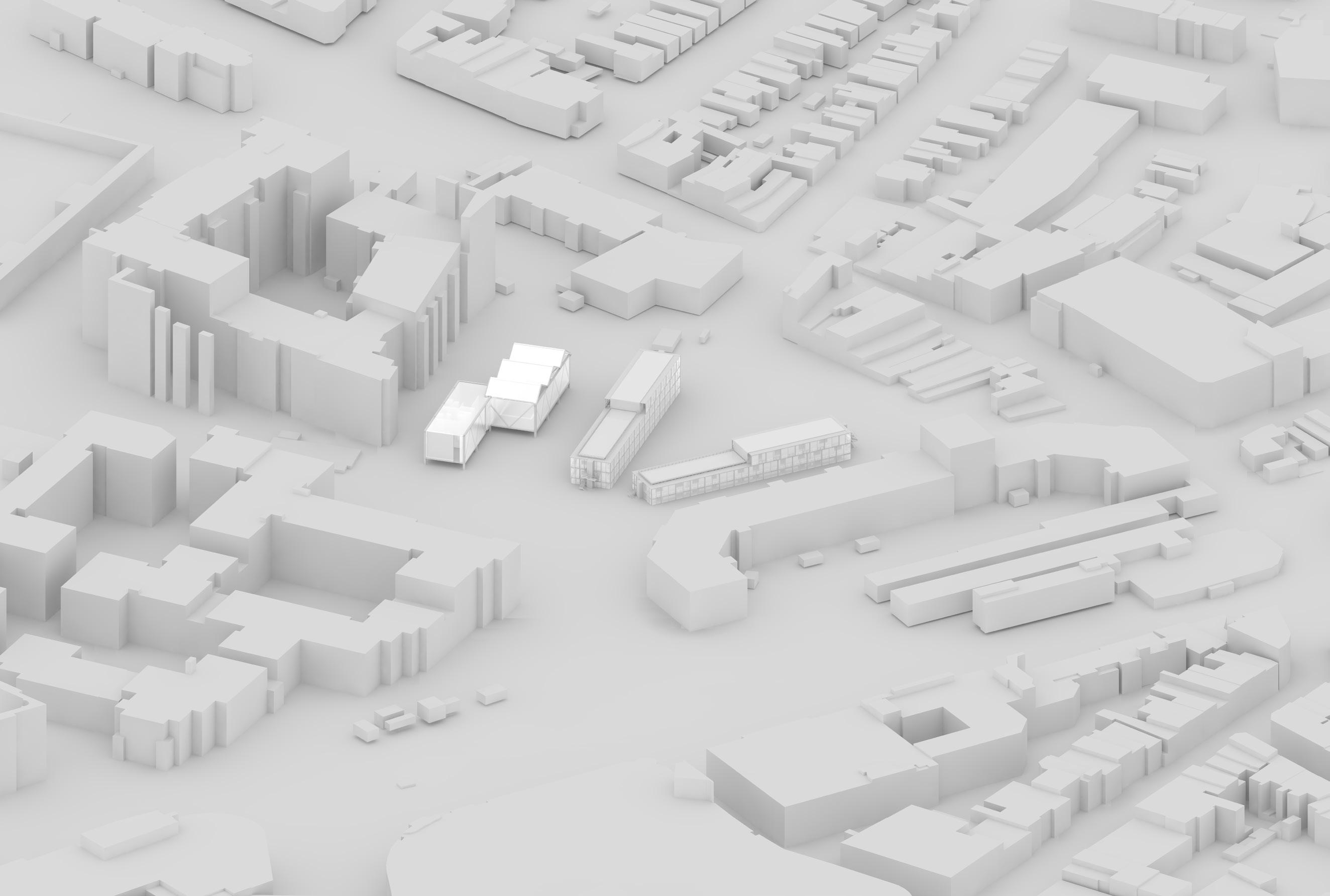 Figure 2 displays a project proposal I presented in my final year. It displays two residential buildings and a community centre located on Canbury Car Park. In order to comply to the studios brief and ensure character with functionality, I had a double skin facade for my residential buildings, one being 5 storeys high, and the other 4. Moreover, in accordance to the brief, my communal space was a multi sports centre.
