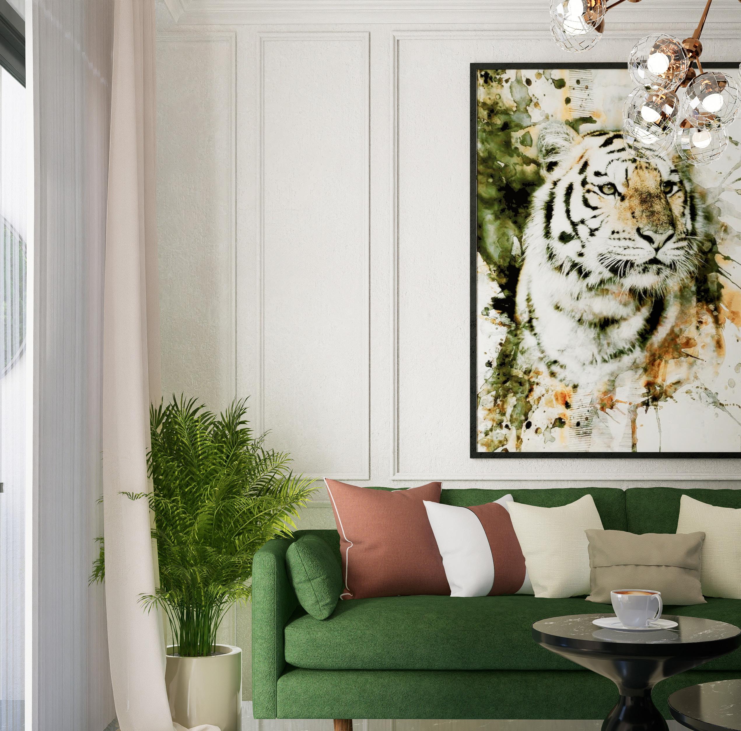 Pairing this with a white sofa would not only enhance the overall elegance of the space but also contribute to a sense of spaciousness and brightness. The white sofa would seamlessly blend with the marble backdrop, creating a cohesive and harmonious design scheme.